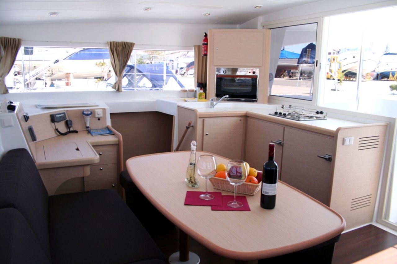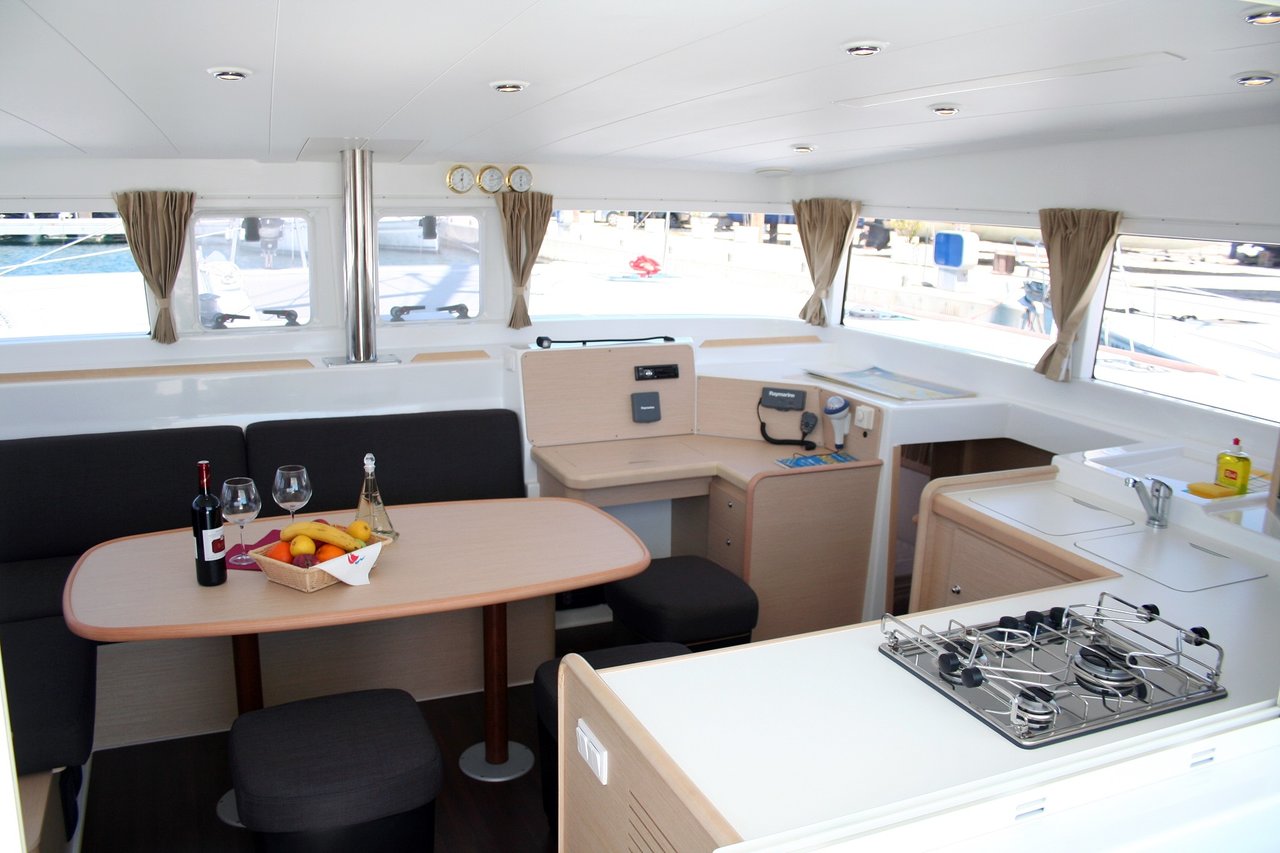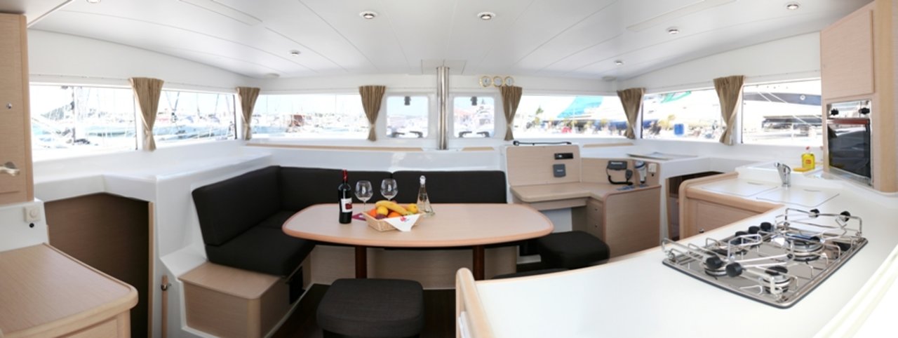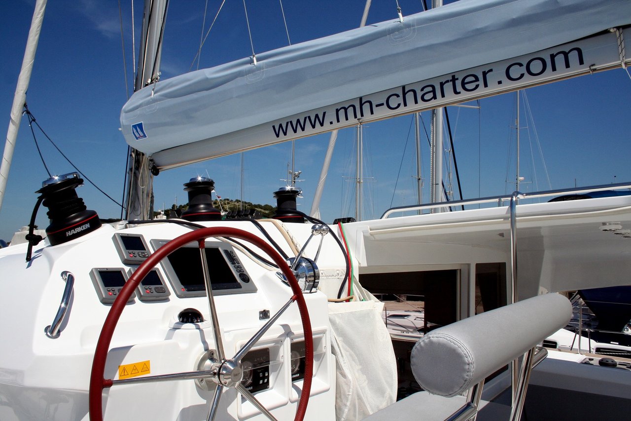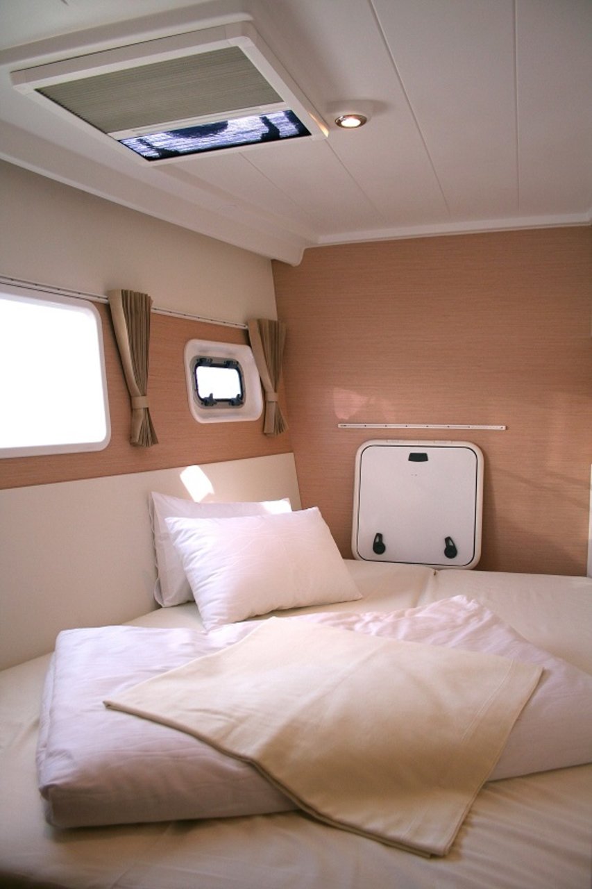 Outside 220 V-Landanschluss, Anker mit Kette, Badeleiter, Bootshaken, Cockpitdusche, Cockpitleuchte, Cockpitpolster, Cockpittisch, Deckbürste, Dieselkanister , elektr. Ankerwinsch, Fender, Festmacherleinen, Gangway, Hardtop, Kunststoff-Eimer (Pütz), Wasserschlauch, Winschen