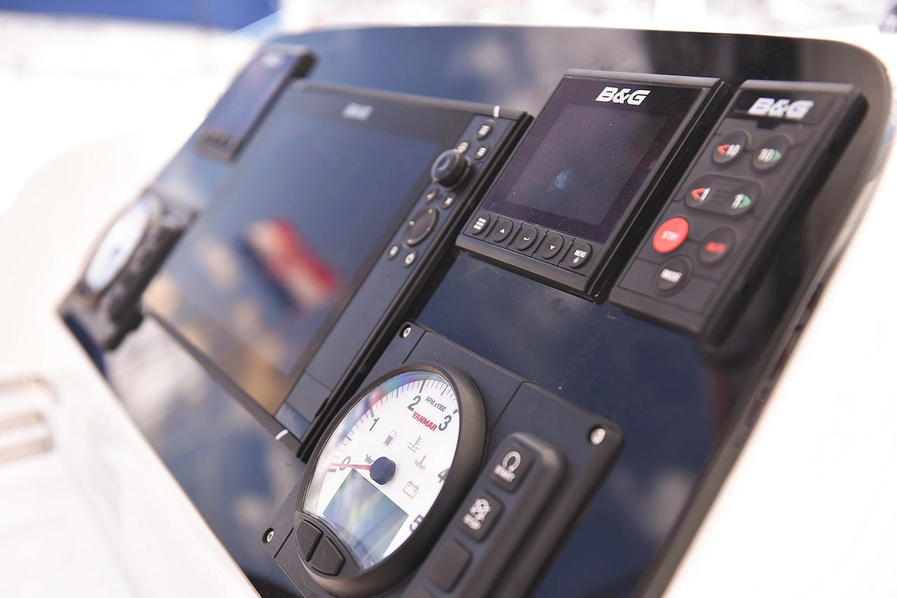 | Navigation | Barometer, Fernglas mit Peilkompass, GPS mit Kartenplotter im Cockpit, Hafenhandbücher, Navigationsbesteck, Seekarten, Tridata (Log, Echolot, Windm.) |