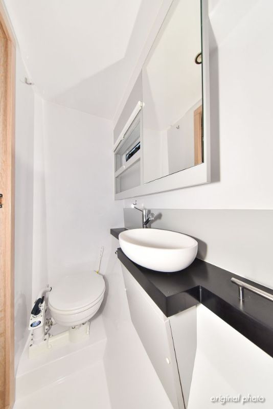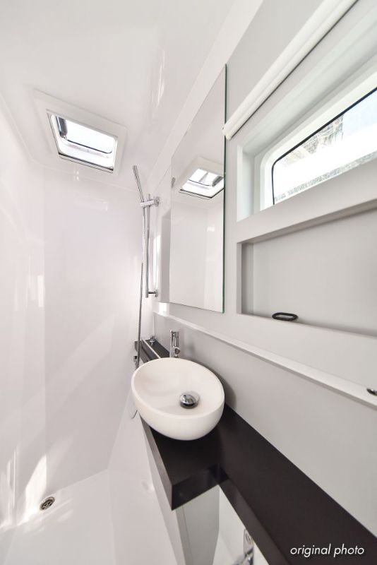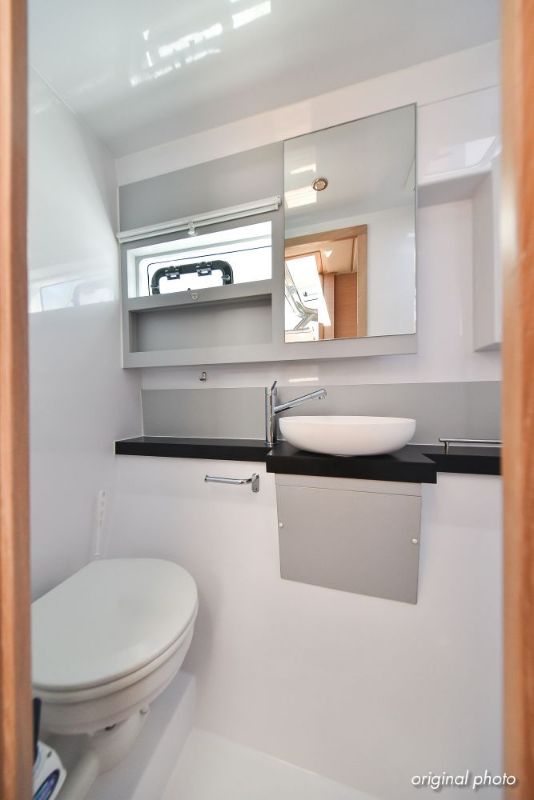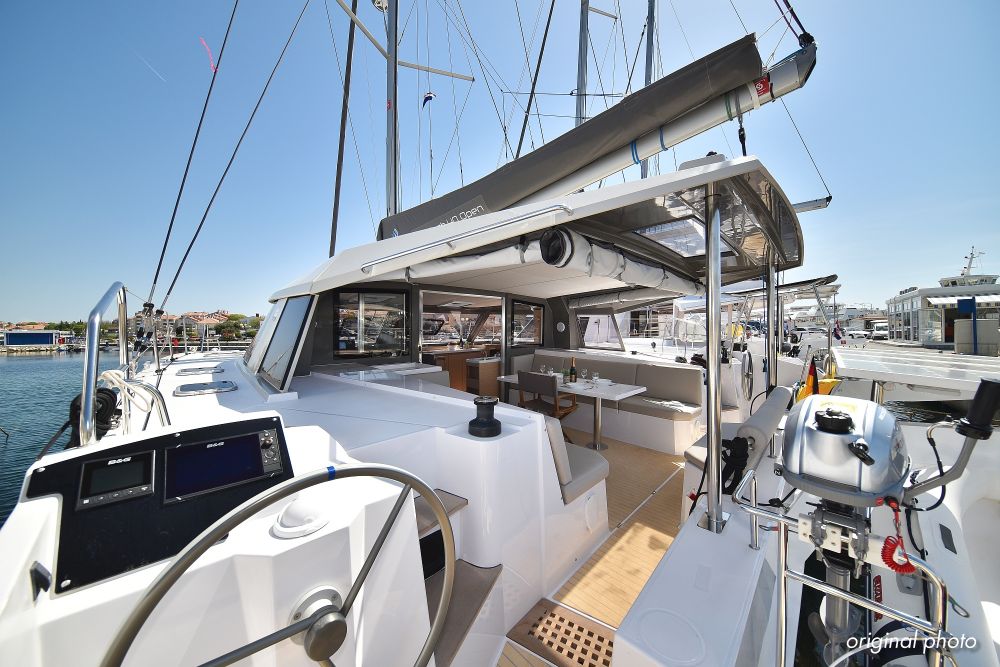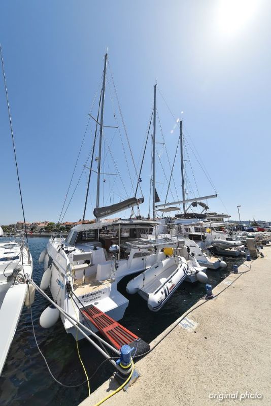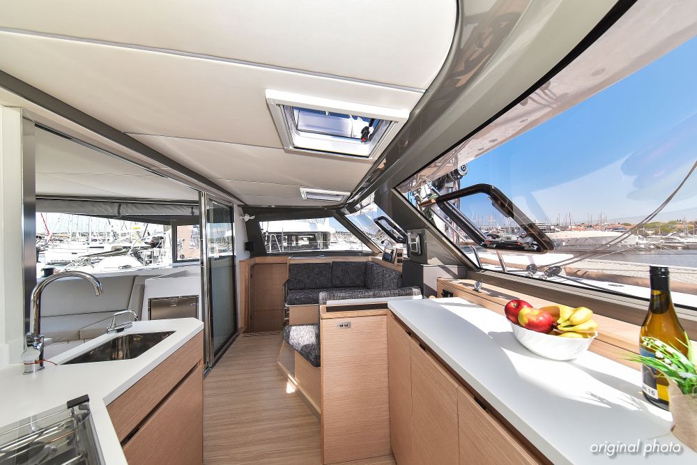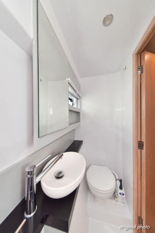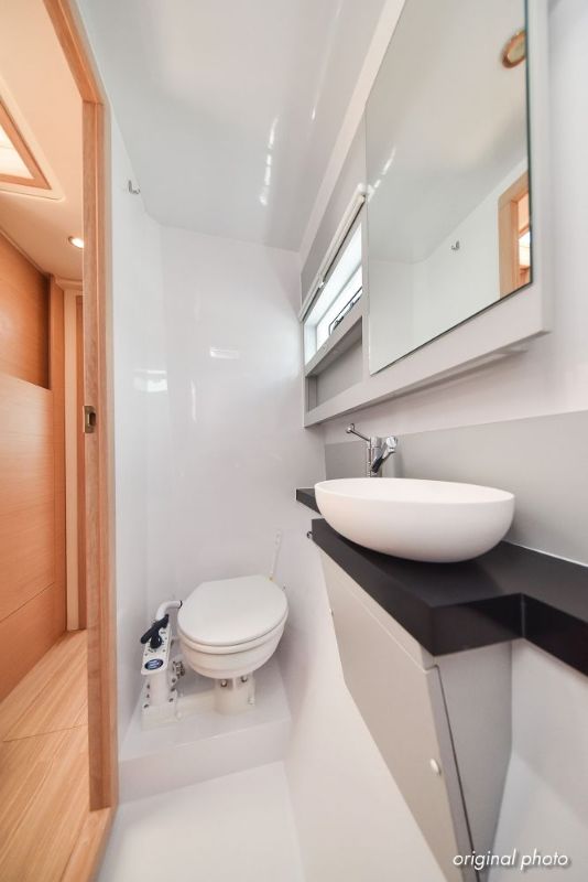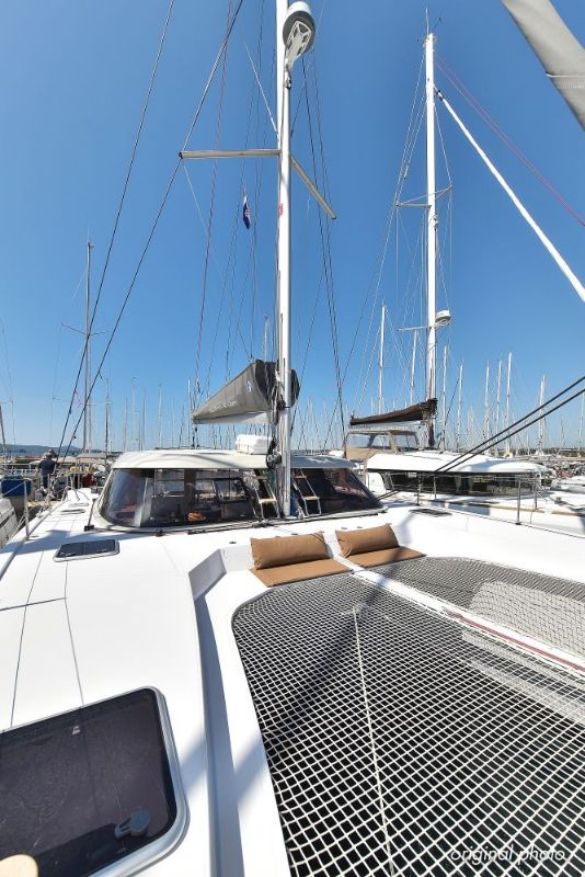 | Inside | Borduhr, Dusche, Eisbox, FUSION Sound System, Heizung, Inverter 12V/220V, Kühlschrank, Ladegerät, Luftpumpe für Beiboot, Pantryausstattung, Radio mit USB, Bluetooth und AUX-In, Ventilatoren in Kabinen, Warmwasser, WC (elektr.) |