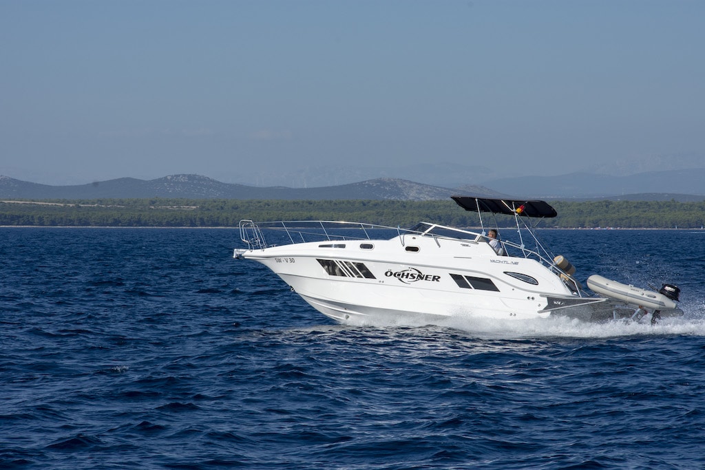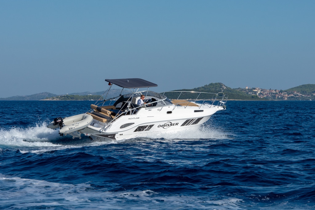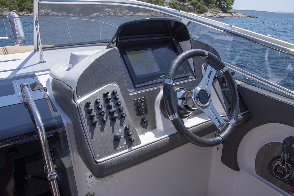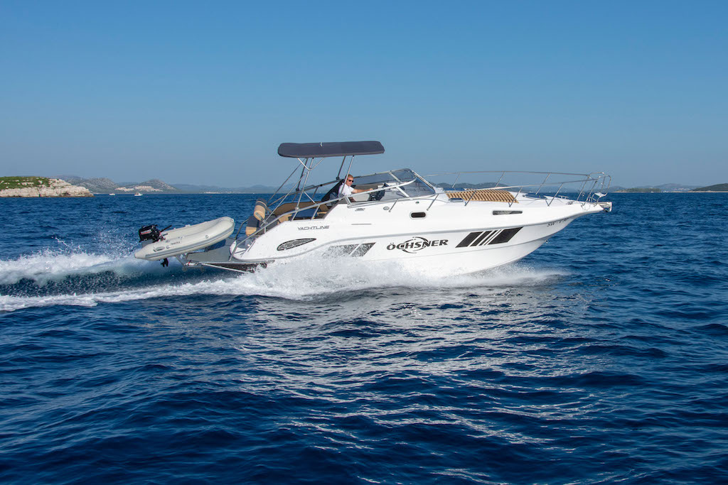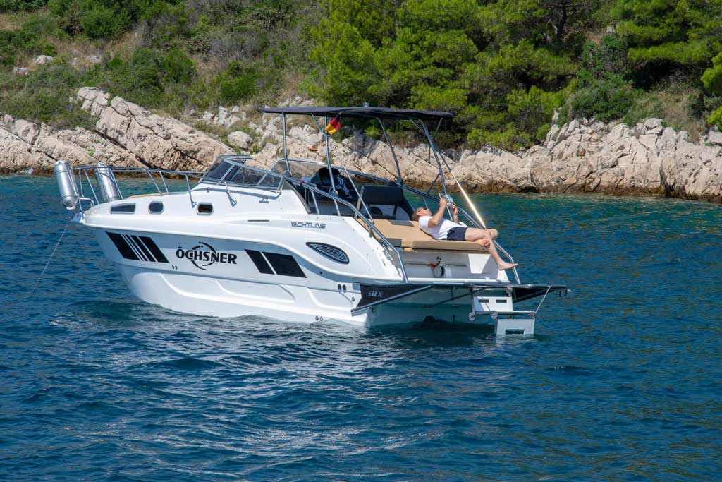 | Outside | 220 V-Landanschluss, Anker mit Kette, Biminitop, Bootshaken, Cockpitdusche, Cockpitlautsprecher, Cockpitpolster, Cockpittisch, Cockpitverdeck, Deckpolster, Dieselkanister , elektr. Ankerwinsch, Fender, Fernsteuerung für elektr. Ankerwinsch, Gangway, Grill, Kugelfender, Kunststoff-Eimer (Pütz), Sonnensegel, Unterwasserbeleuchtung, Wasserkanister , Wasserschlauch |