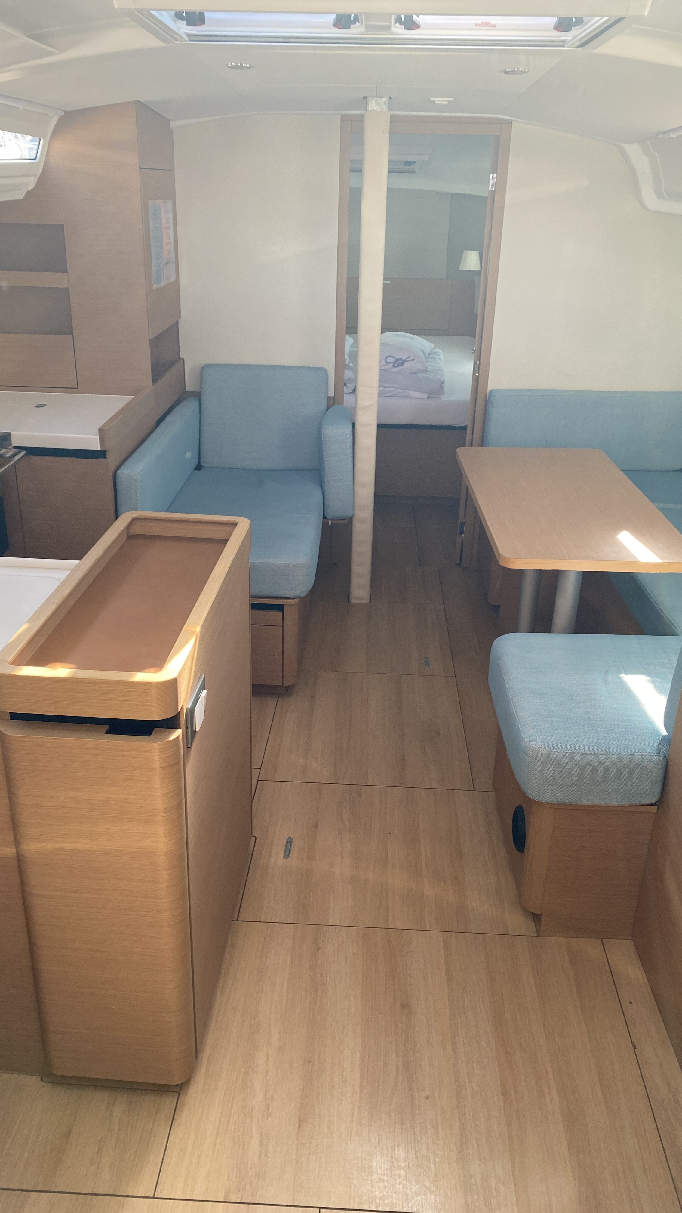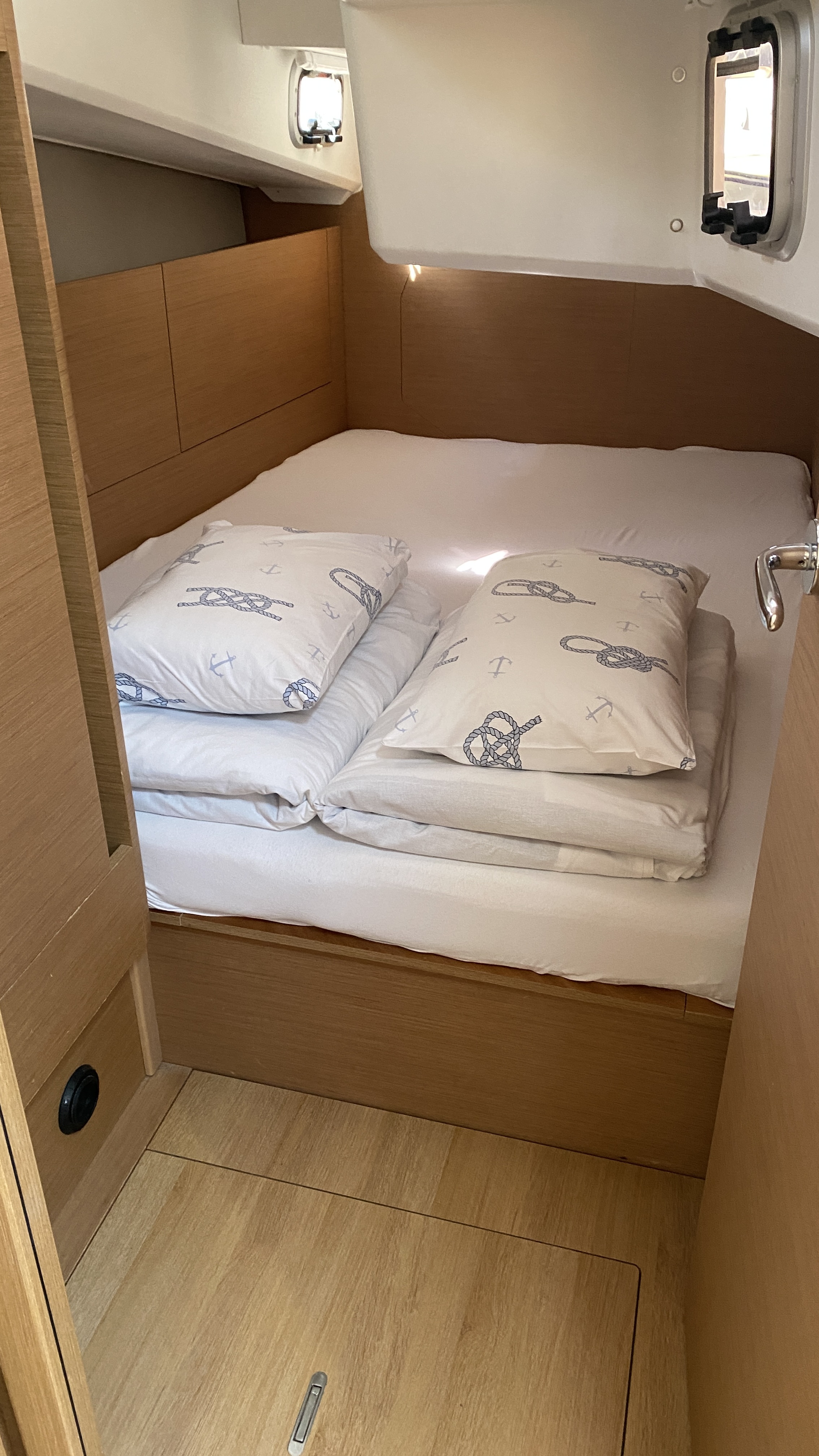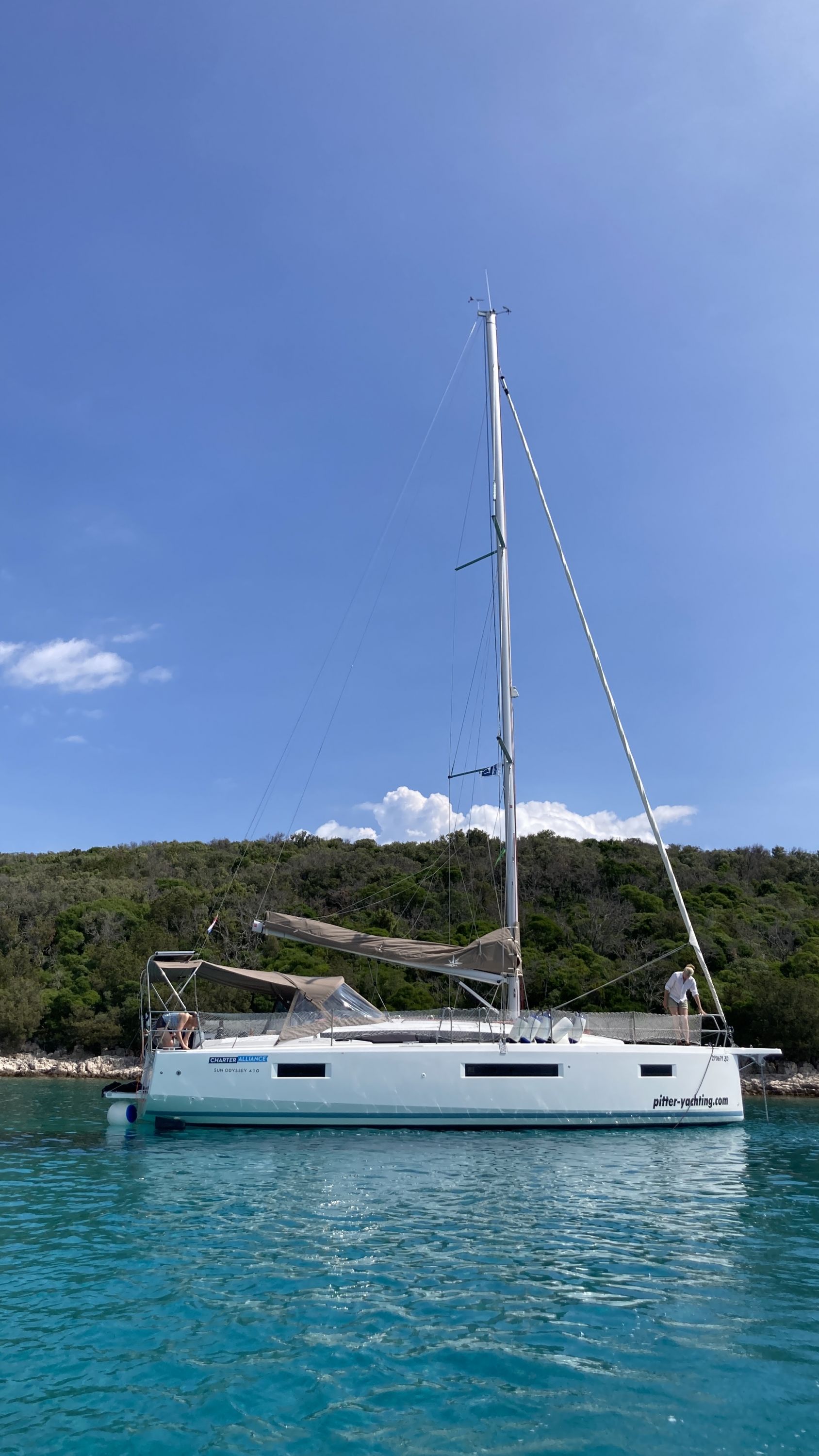 Wir hatten eine sehr frühen Early Check In und konnten bereits um 11:00 Uhr auf das Schiff👍. Wir mussten allerdings einige Staufächer reinigen, da hier noch Essensreste der Vorgänger drin waren. Auch der Backofen und der Kühlschrank war nicht fertig sauber gemacht. Das Schiff ist wirklich sehr liebevoll und gut ausgerüstet, der Pflegezustand hat aber nicht dem entsprochen, was ich von Pitter erwartet hätte. Die Segel waren in keinem guten Zustand und auch das Tauwerk machte teilweise einen verschlissenen Eindruck, was man auch bei der Segelleistung gemerkt hat. Wir mussten mit einer defekten Luke im Salon und einer Dingi mit einem Leck starten. Die Reparaturversuche der Pitter Crew waren erfolglos. In unserem einzigen Bad konnte der Duschkopf nicht befestigt werden, da der Halter defekt war. Das Lazy bag war auch defekt und konnte nicht geschlossen werden.