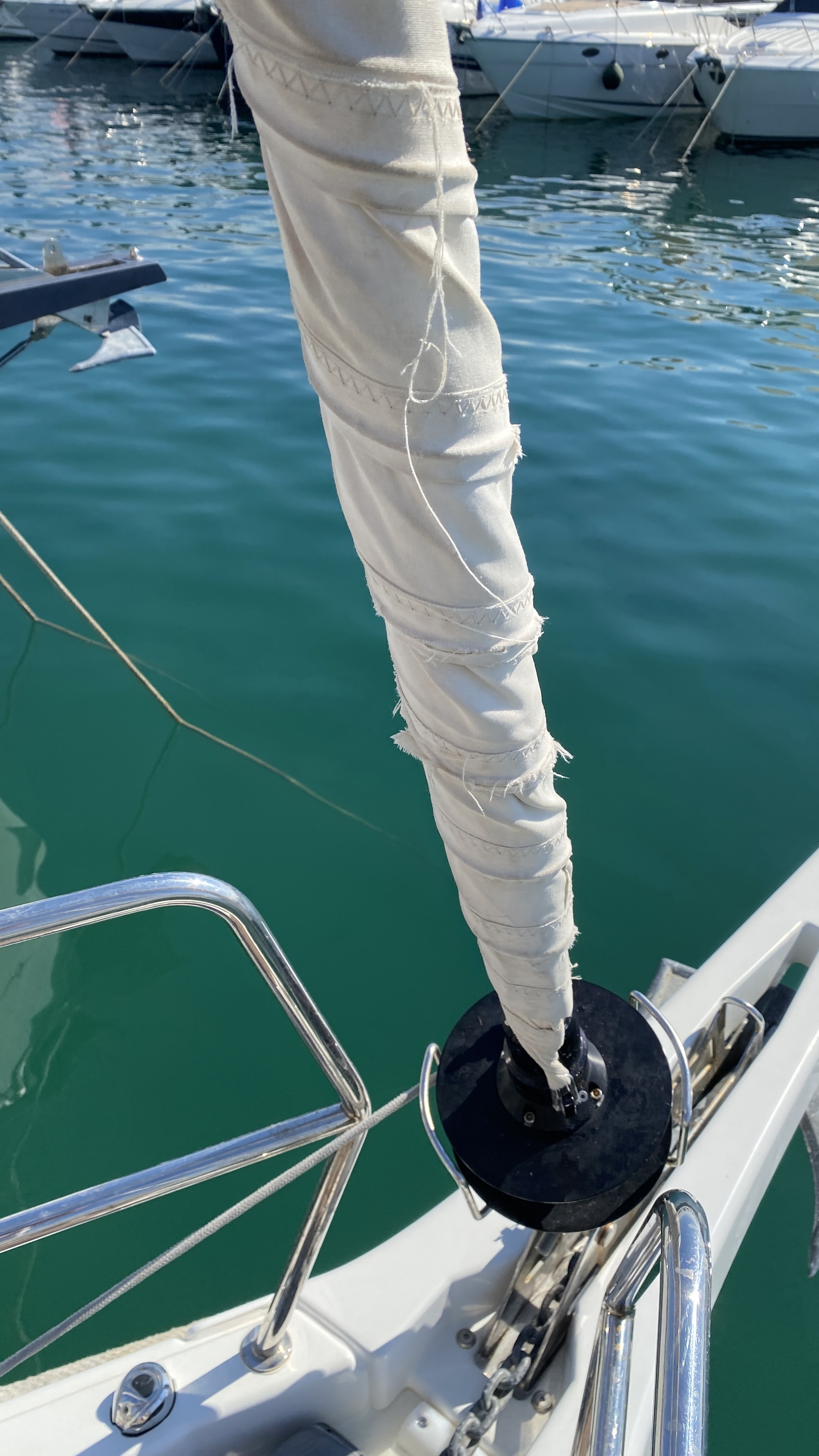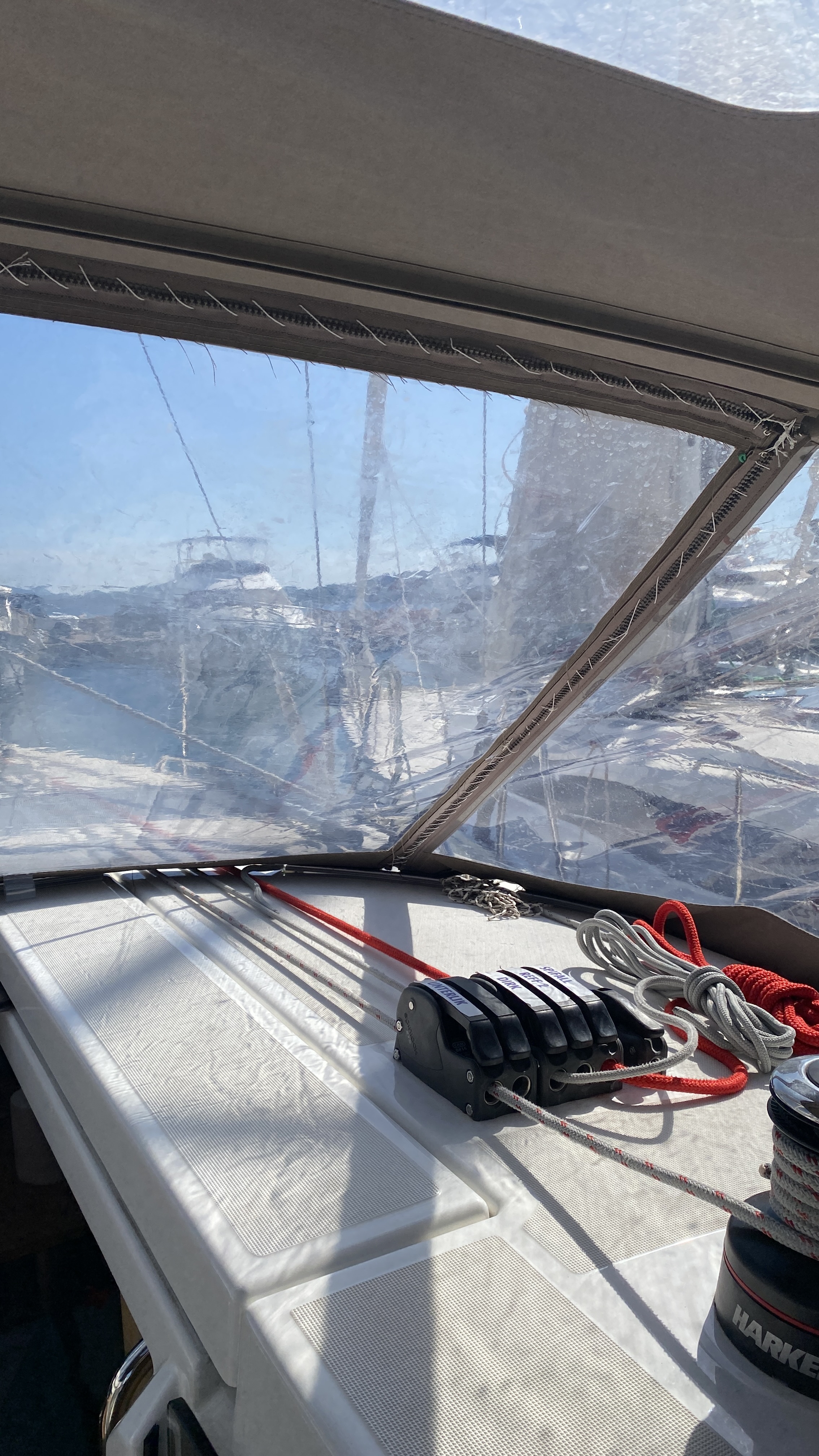 Außerdem konnten wir die Sprayhood nicht öffnen, da der Reißverschluss zugenäht war. Das Problem dabei war aber, das wir die Bimini nur in Verbindung mit der Sprayhood nutzen konnten (verbunden über ein Reißverschluss) und wir somit keine Sonnenschutz hatten da bei normalen Wetter die Sprayhood mit geschlossen werden musste.