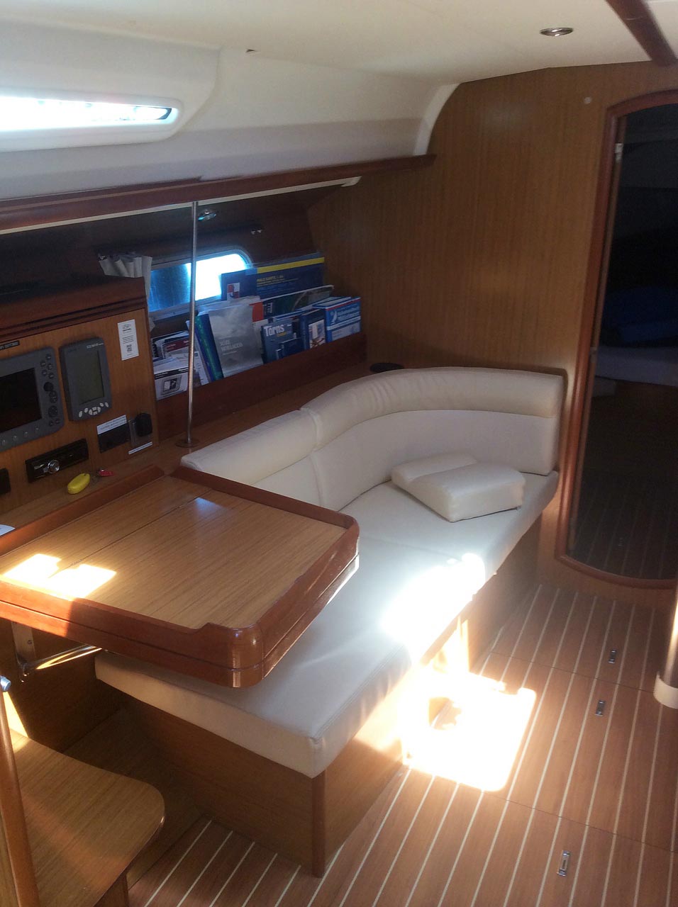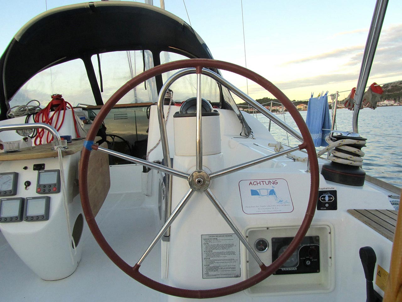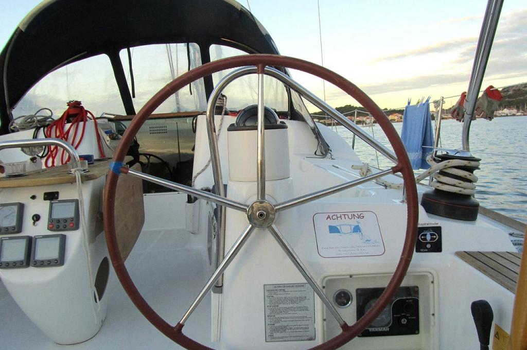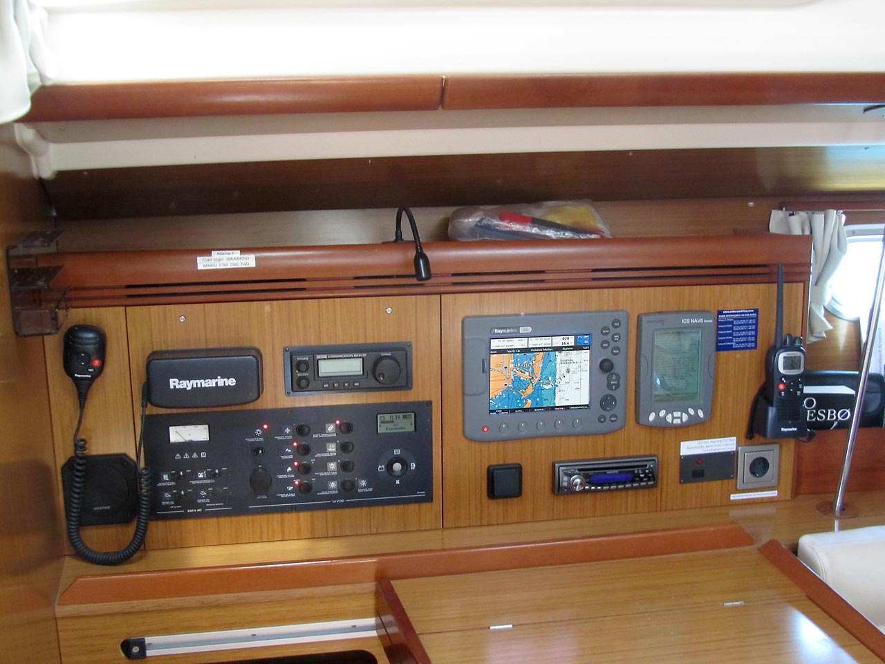 | Navigation | Barometer, Fernglas, GPS mit Kartenplotter, Hafenhandbücher, Handpeilkompass, Navigationsbesteck, Seekarten, Tridata (Log, Echolot, Windm.) |