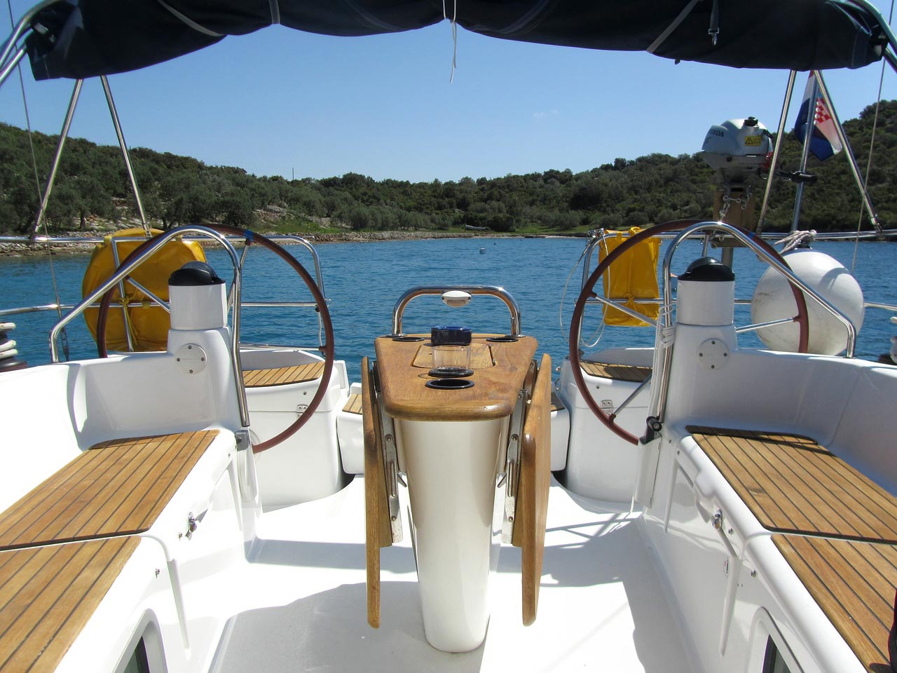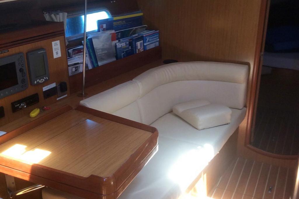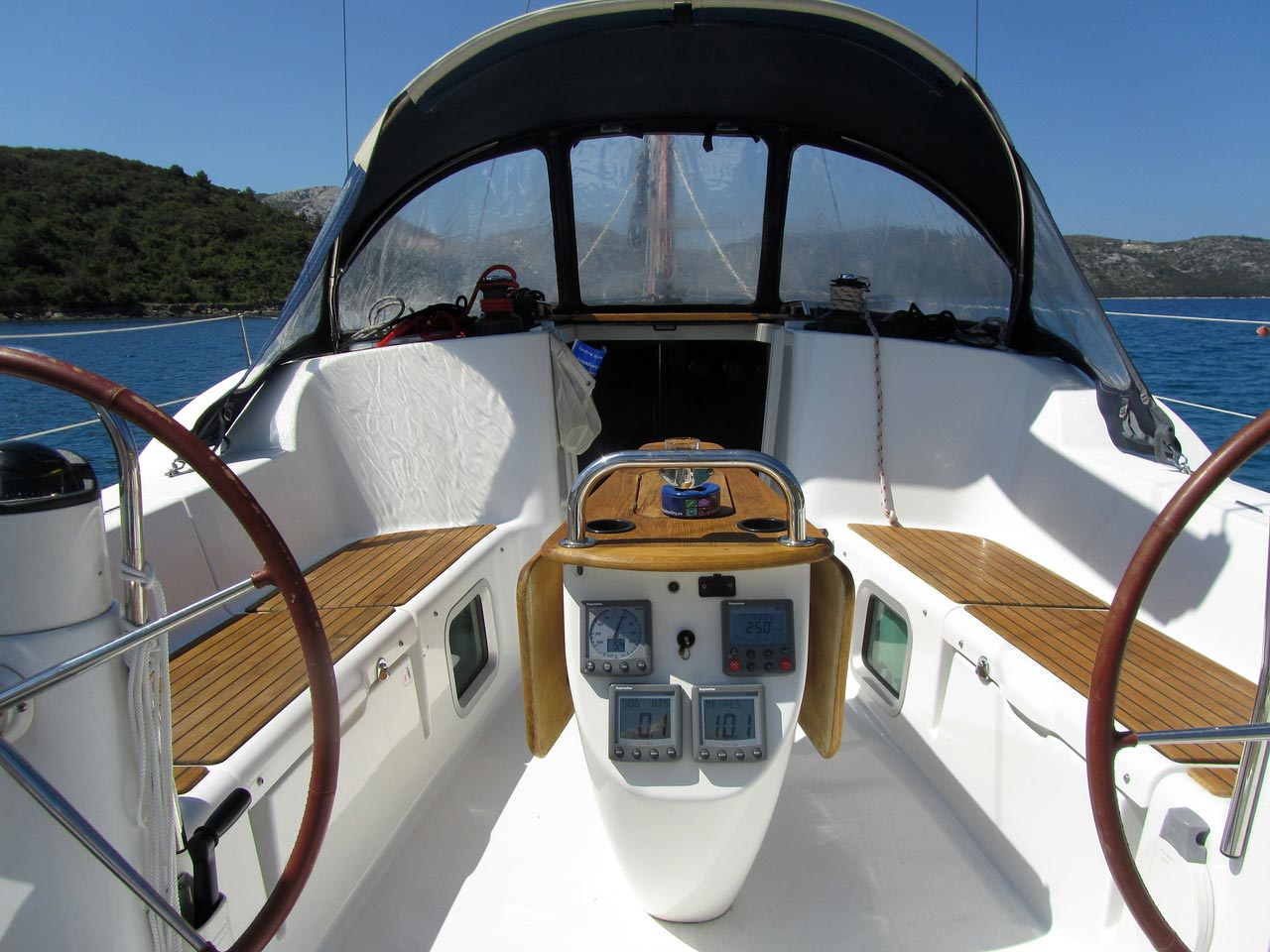 | Outside | 220 V-Landanschluss, Anker mit Kette, Ankerwinsch, Biminitop, Bootshaken, Cockpitdusche, Cockpitlautsprecher, Cockpitpolster, Cockpittisch, Dieselkanister , elektr. Ankerwinsch, Fender, Festmacherleinen, Gangway, Kugelfender, Kunststoff-Eimer (Pütz), Sprayhood, Wantenschneider, Wasserkanister , Wasserschlauch, Windex |