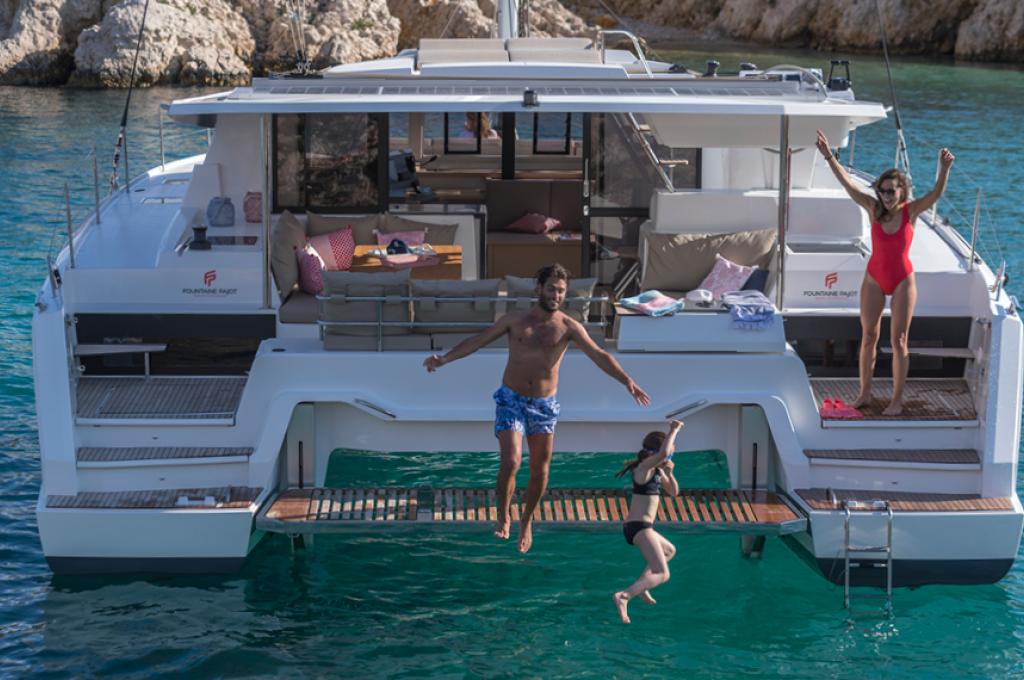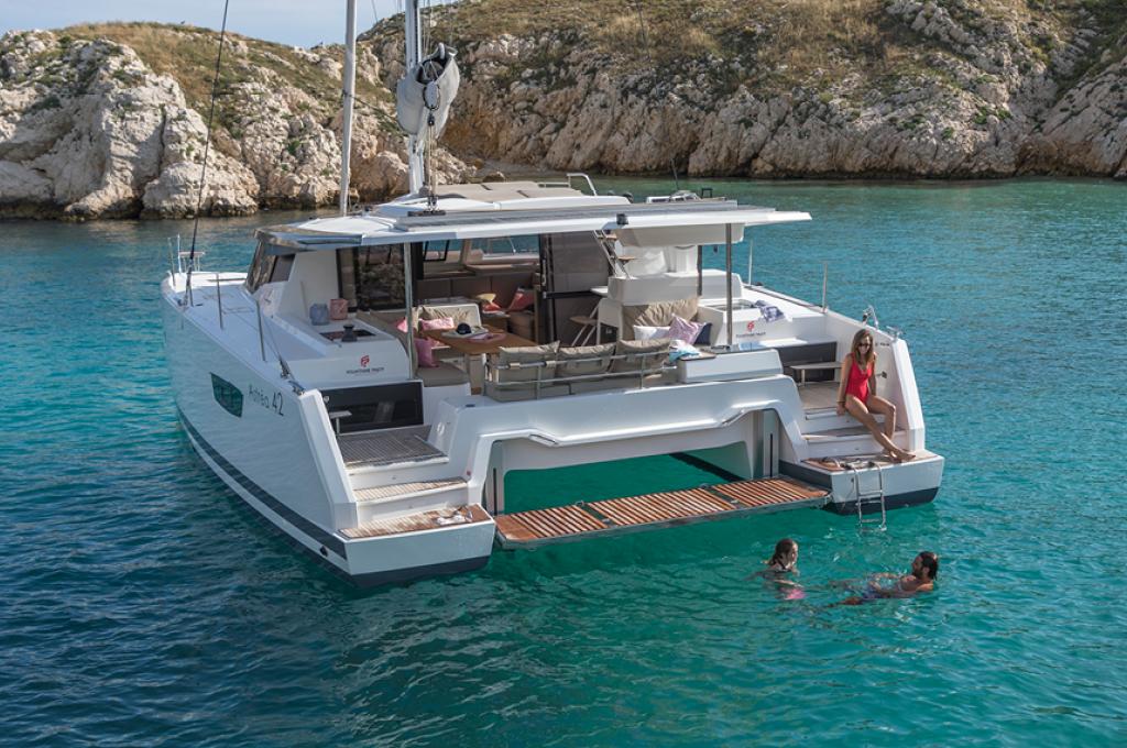 | Outside | 220 V-Landanschluss, Anker mit Kette, Badeleiter, Biminitop, Cockpitdusche, Cockpitkühlschrank, Cockpitlautsprecher, Cockpitpolster, Cockpittisch, elektr. Ankerwinsch, elektr. Winsch, Fender, Festmacherleinen, Gangway, Windex |