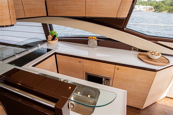| Inside | Gasherd, Gefrierschrank, Generator, Geschirrspüler, Klimaanlage (ohne Landstrombedarf), Kühlschrank, Ladegerät, LCD Fernseher, Mikrowelle, Waschmaschine, Watermaker |