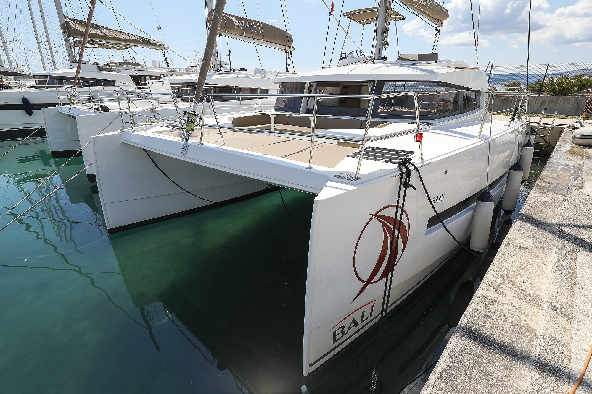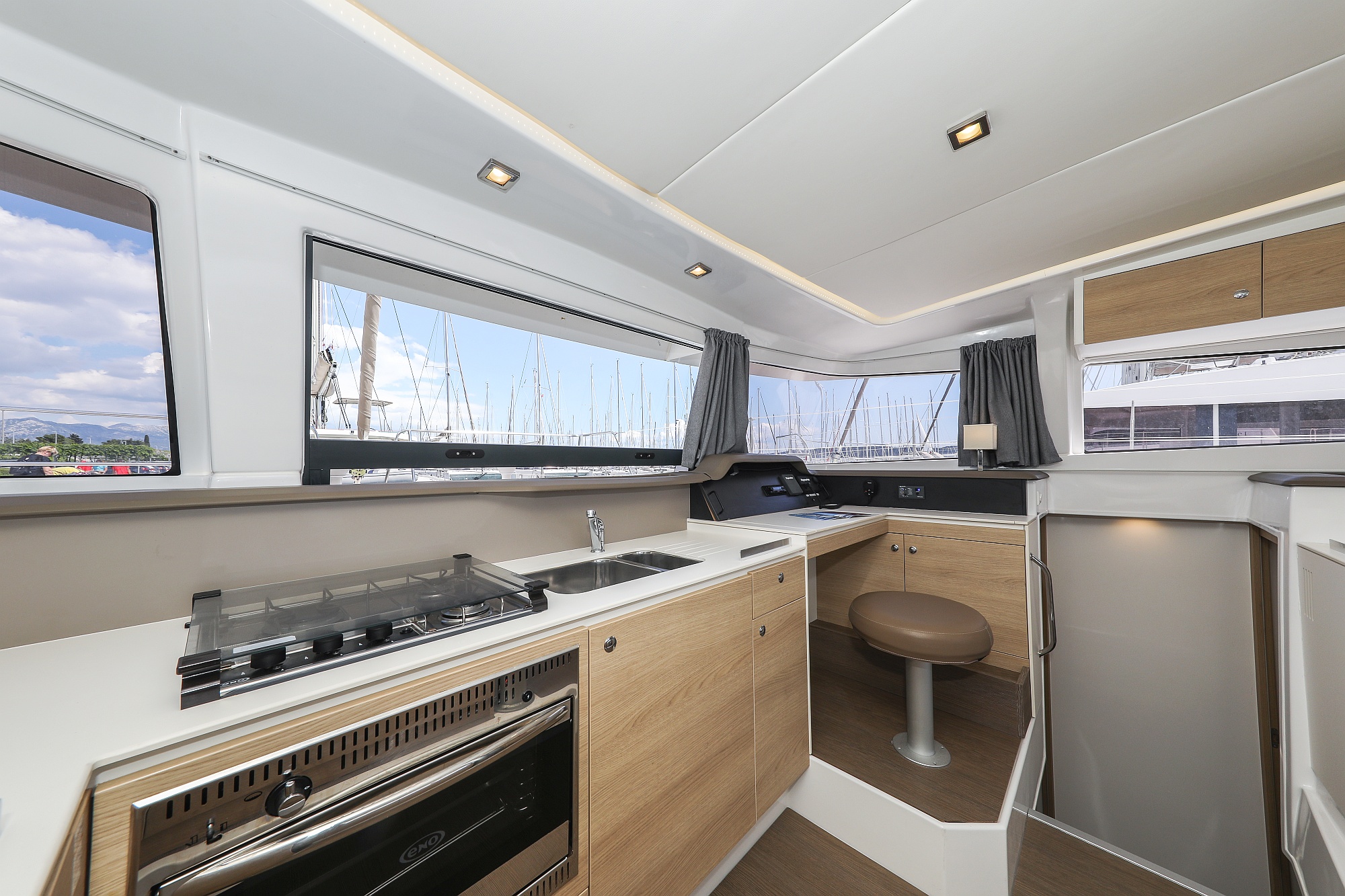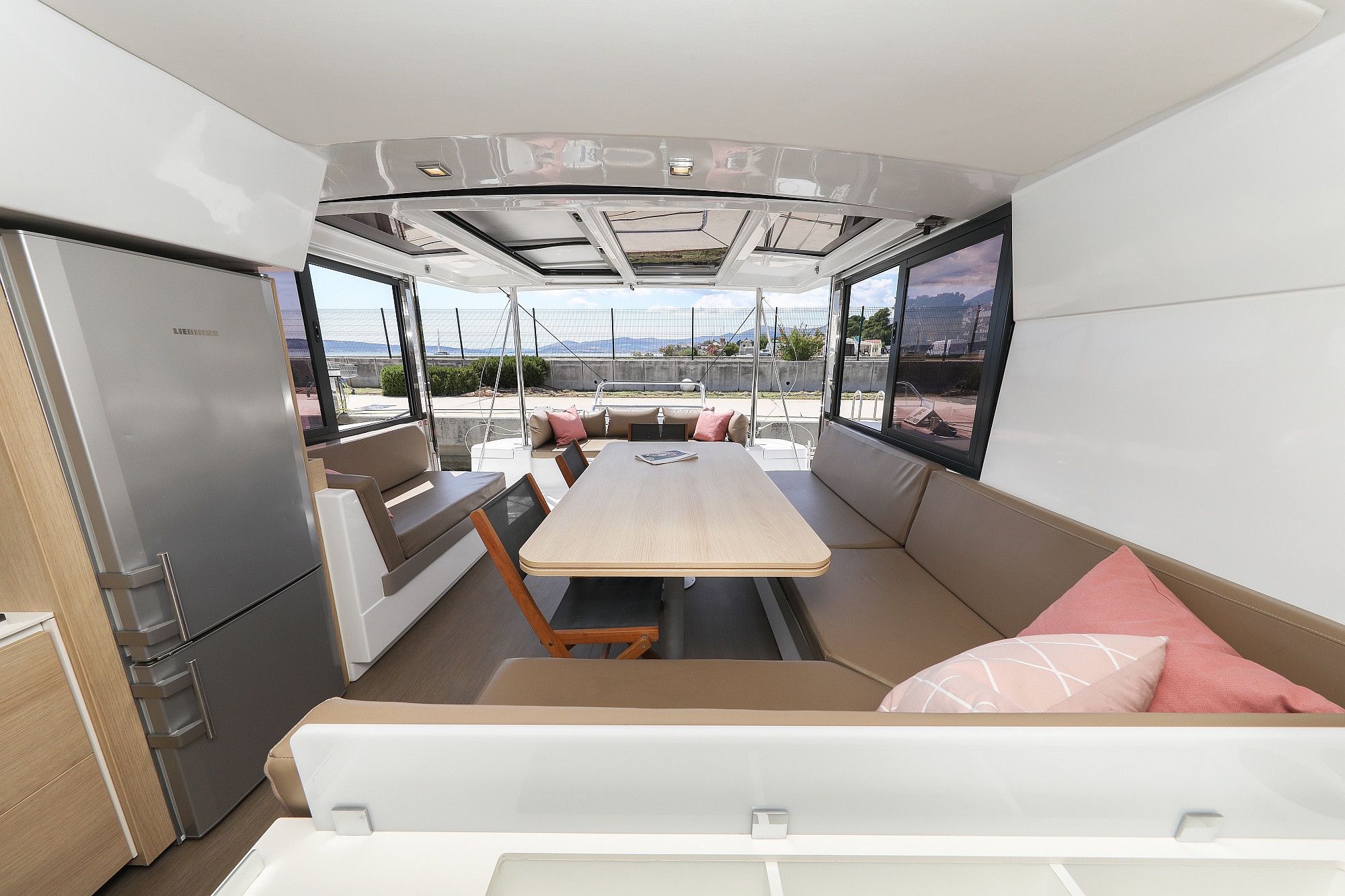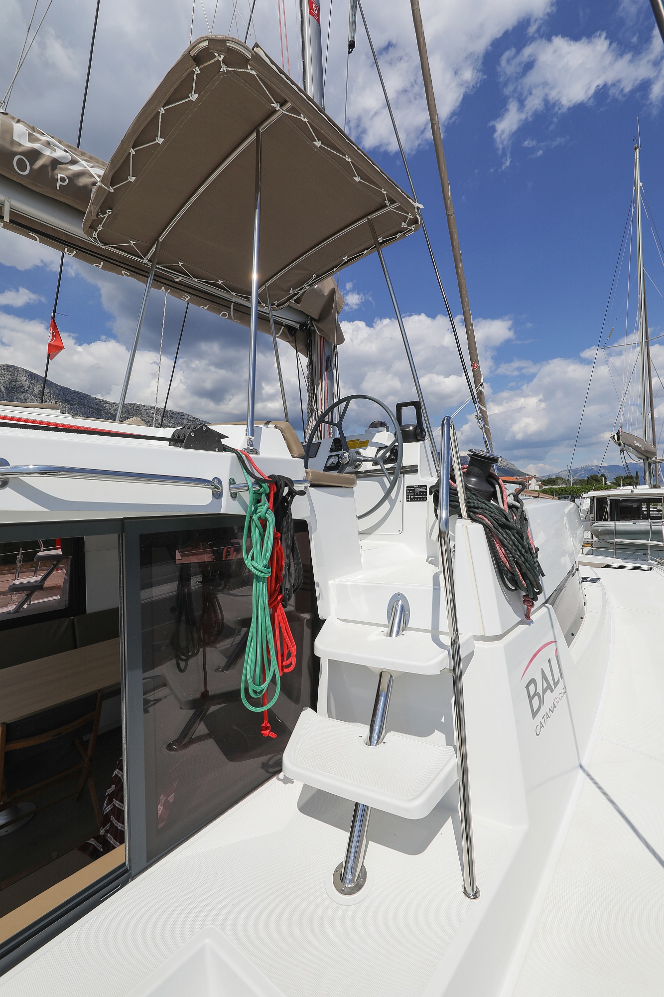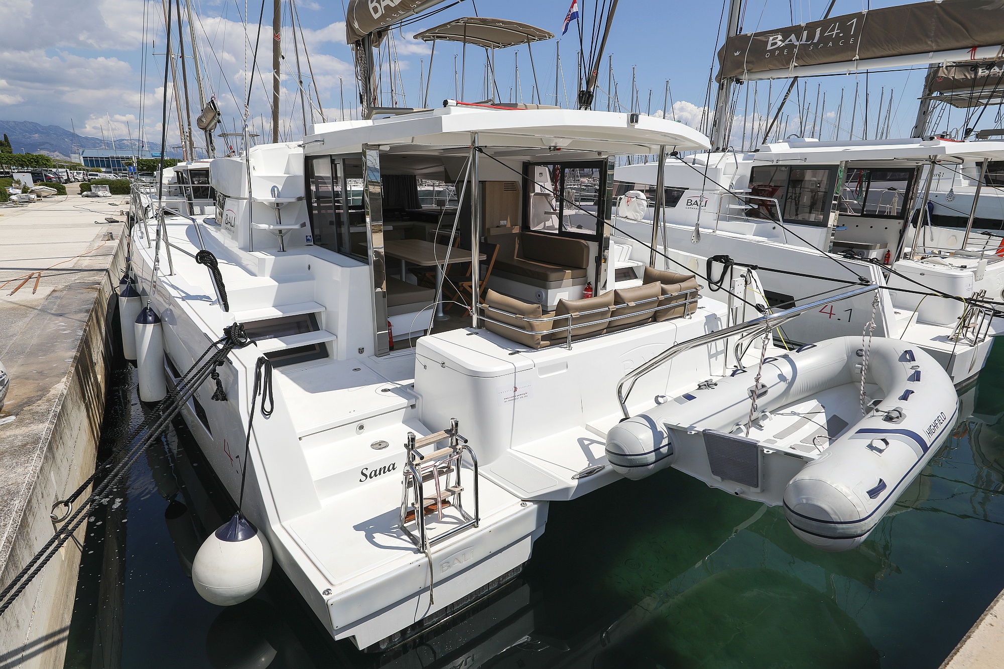 | Outside | Badeplattform, Biminitop, Cockpitdusche, Cockpitlautsprecher, Cockpitpolster, Cockpittisch, Deckpolster, elektr. Ankerwinsch, Flybridge |