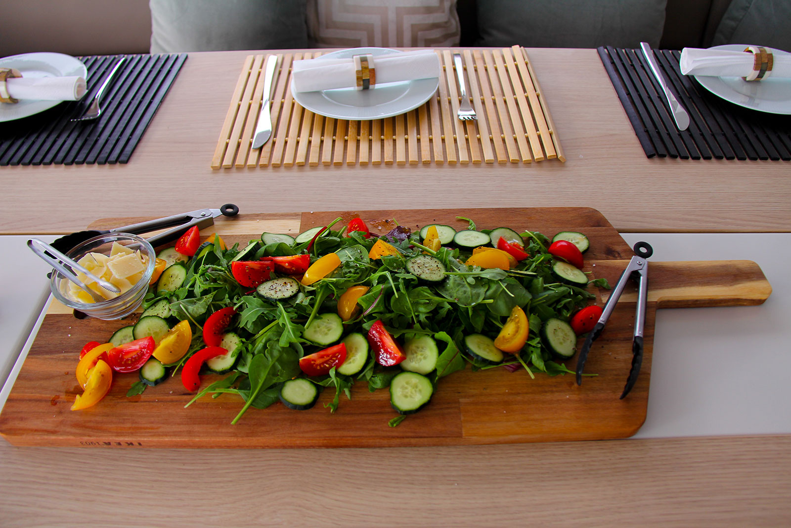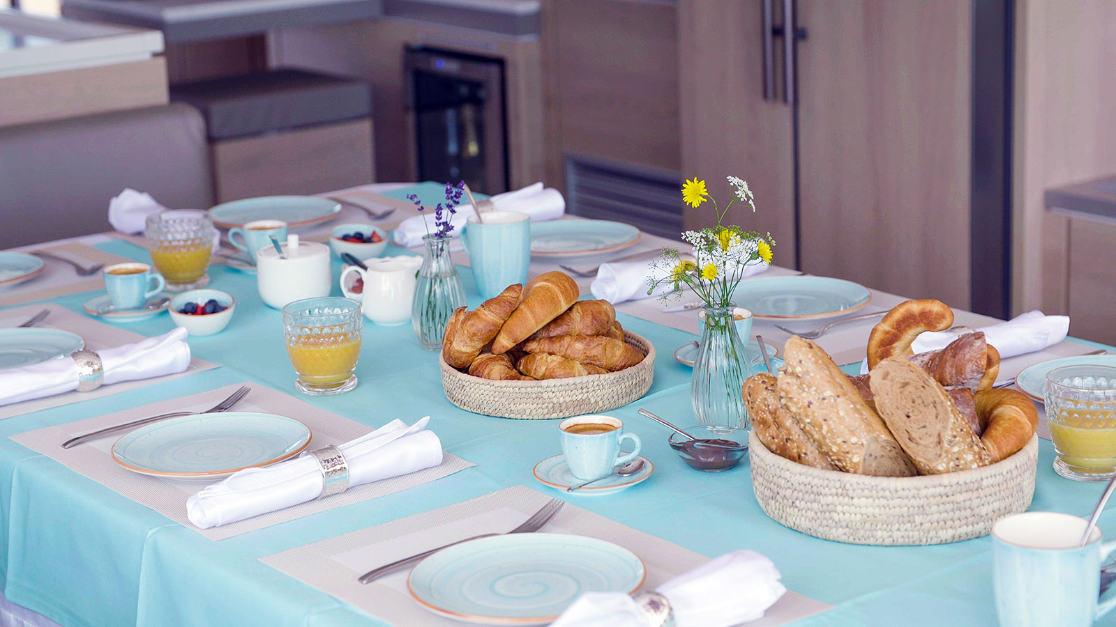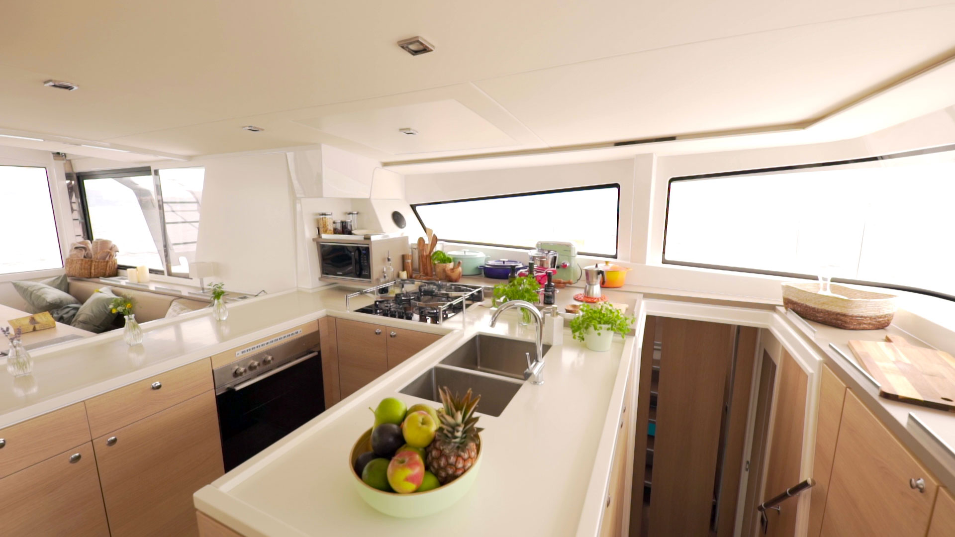 | Inside | 12V Steckdose, 220V Steckdosen, Backofen, Bluetooth Player, Bügeleisen, Eiswürfelmaschine, Fön, Gasherd mit Backofen, Gefrierschrank, Generator, Geschirrspüler, Inverter 12V/220V, Kaffeemaschine, Klimaanlage (ohne Landstrombedarf), Kühlschrank mit Gefrierfach, Ladegerät, Landstromkabel, Mikrowelle, Pantryausstattung, Spülmaschine, Trockner, TV, Ventilator, Waschmaschine, Wasserkocher, Watermaker, WC (elektr.), Weinkühlschrank |