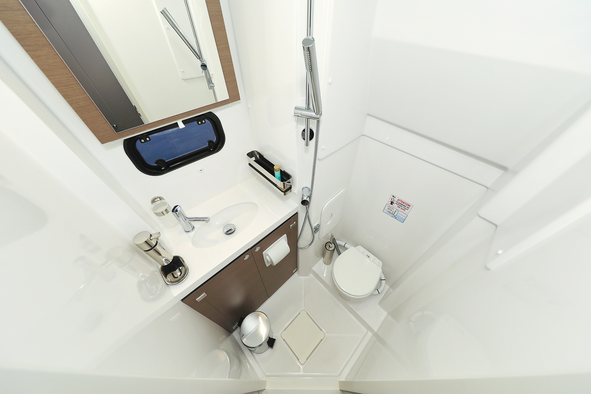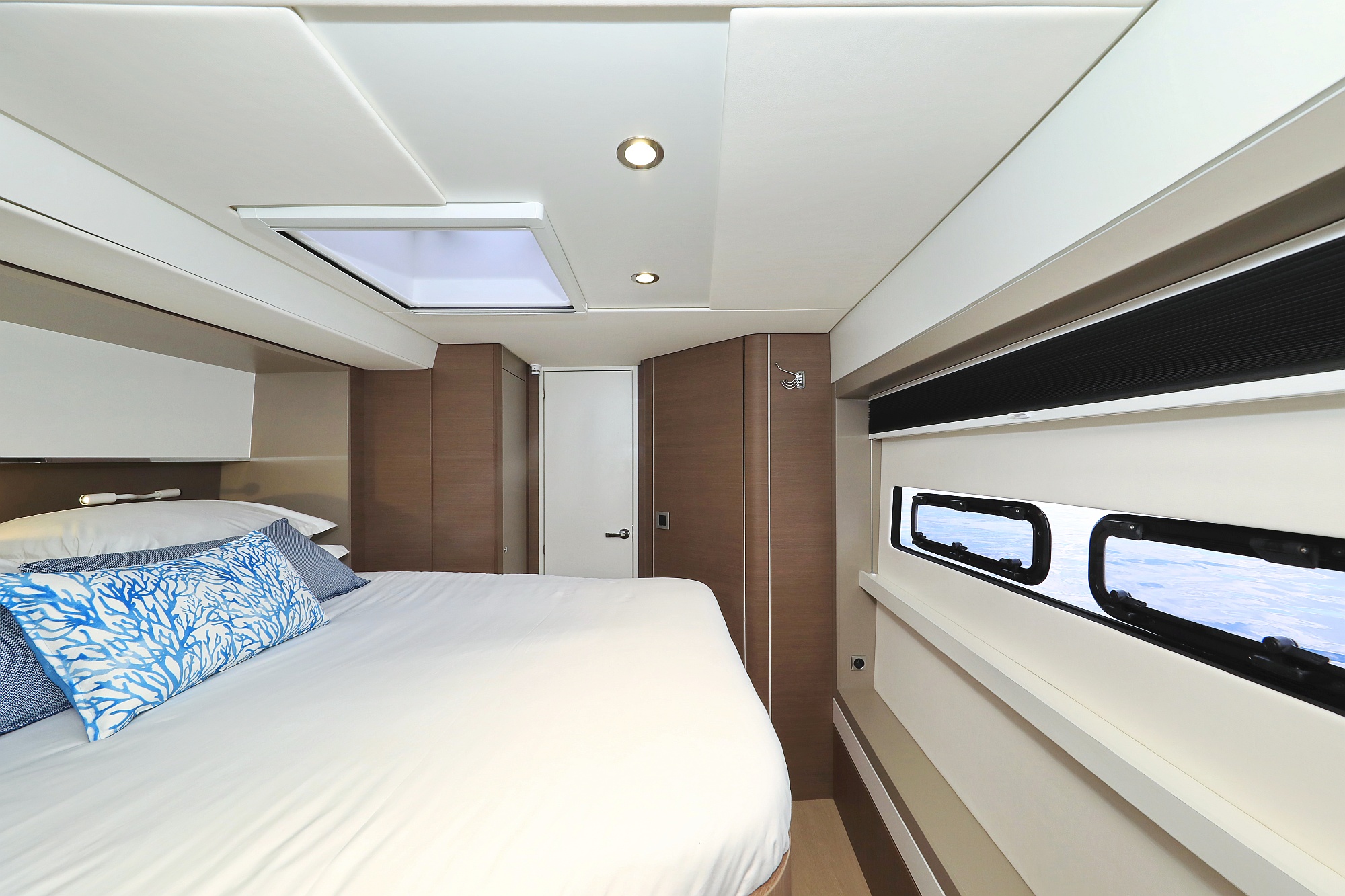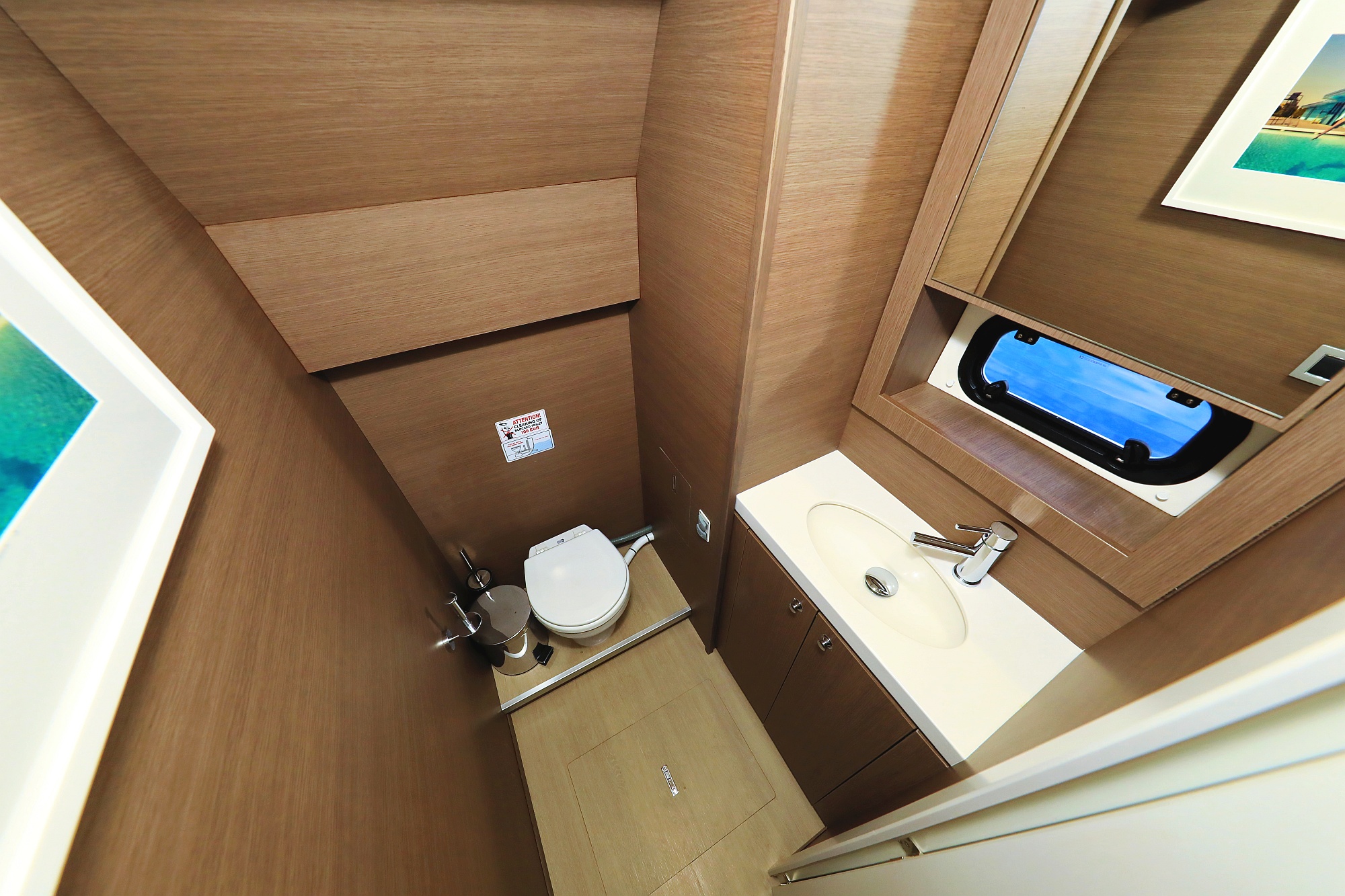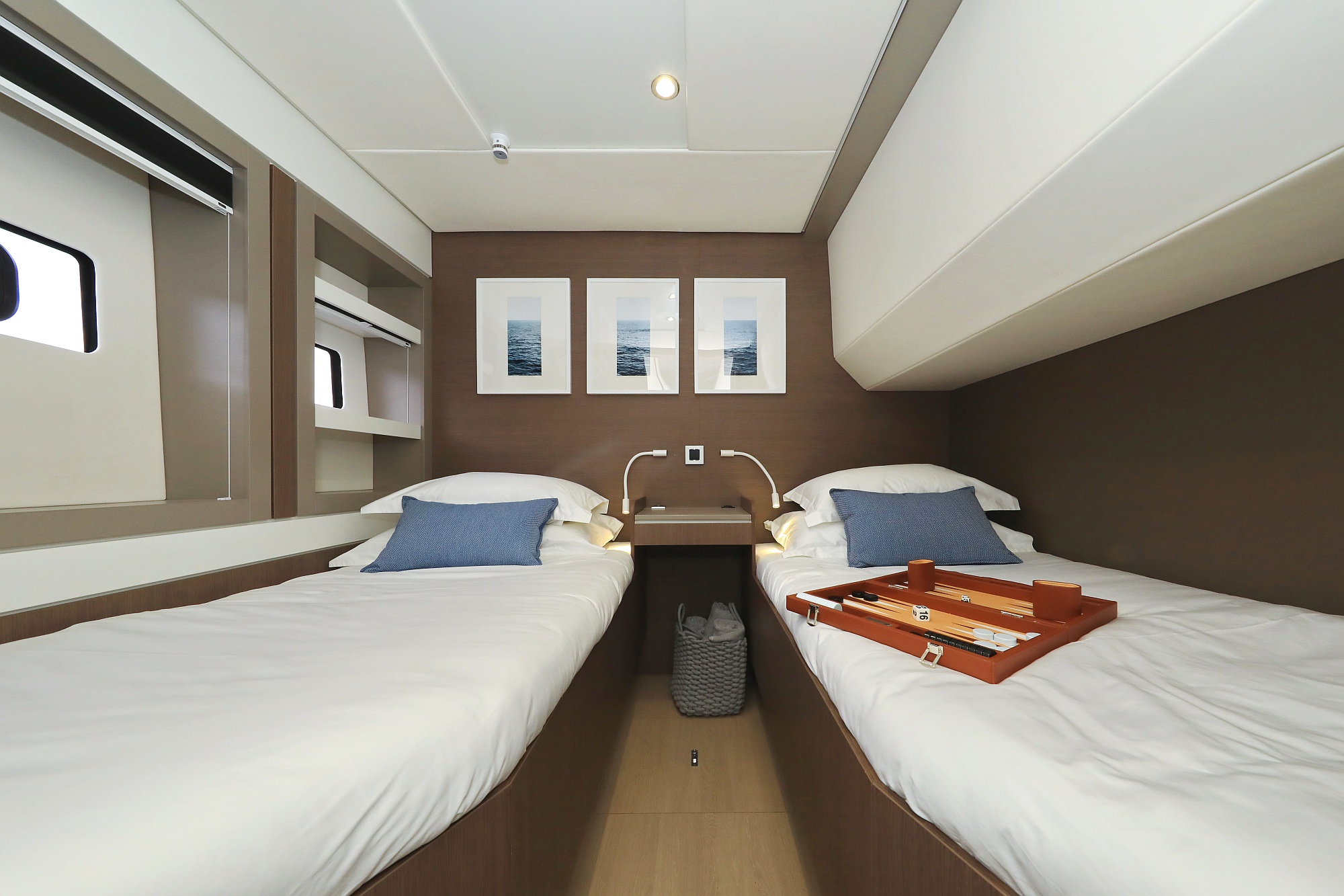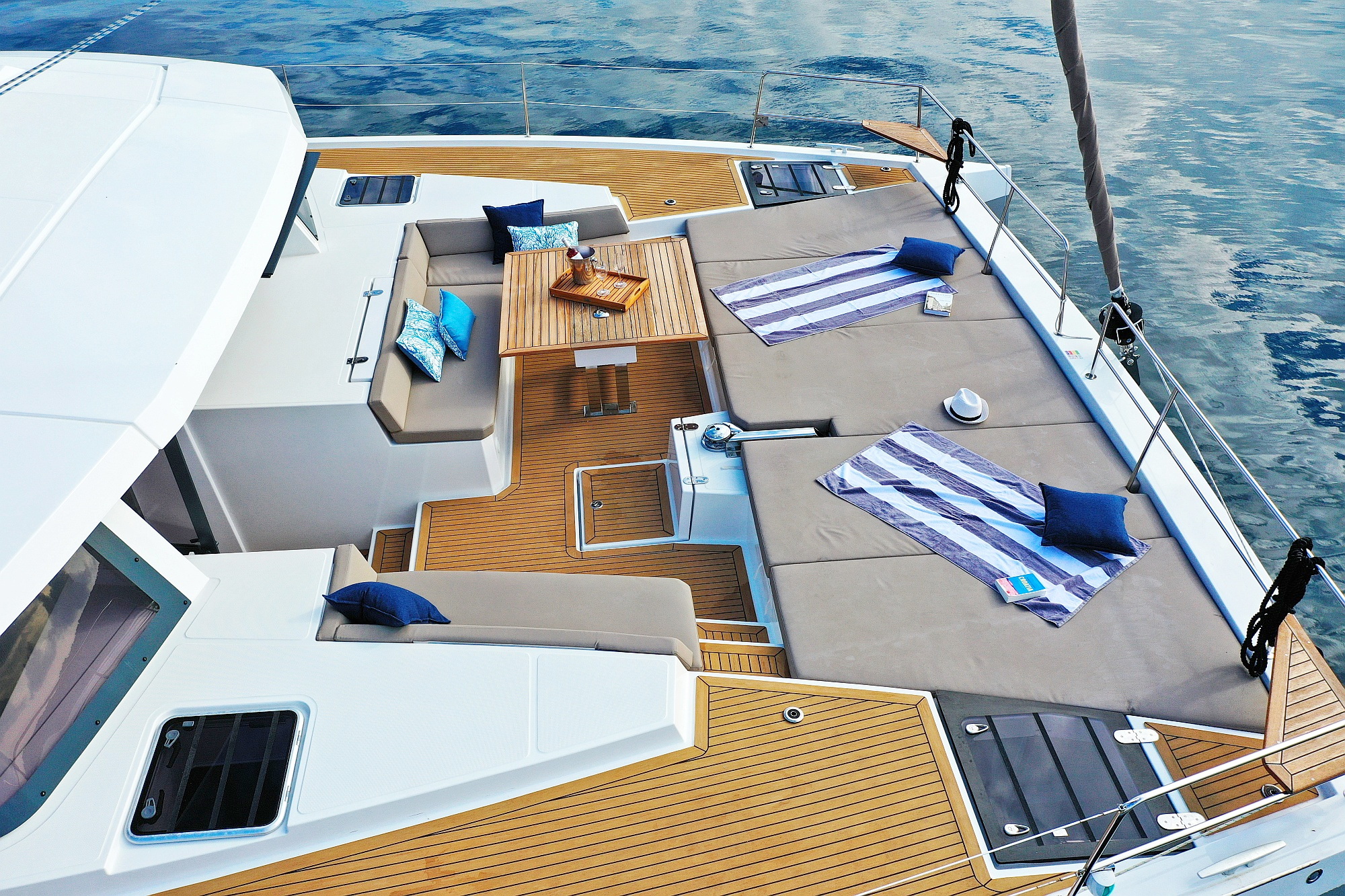 | Inside | Eiswürfelmaschine, Gasherd mit Backofen, Generator, Geschirrspüler, Heizung, Inverter 12V/220V, Klimaanlage (ohne Landstrombedarf), Kühlschrank mit Gefrierfach, LCD Fernseher, Mikrowelle, Nespresso-Maschine, Pantryausstattung, Radio mit CD, MP3, USB und Bluetooth, Trockner, USB Steckdosen in Salon und Kabinen, Ventilatoren in Kabinen, Waschmaschine, Watermaker |
