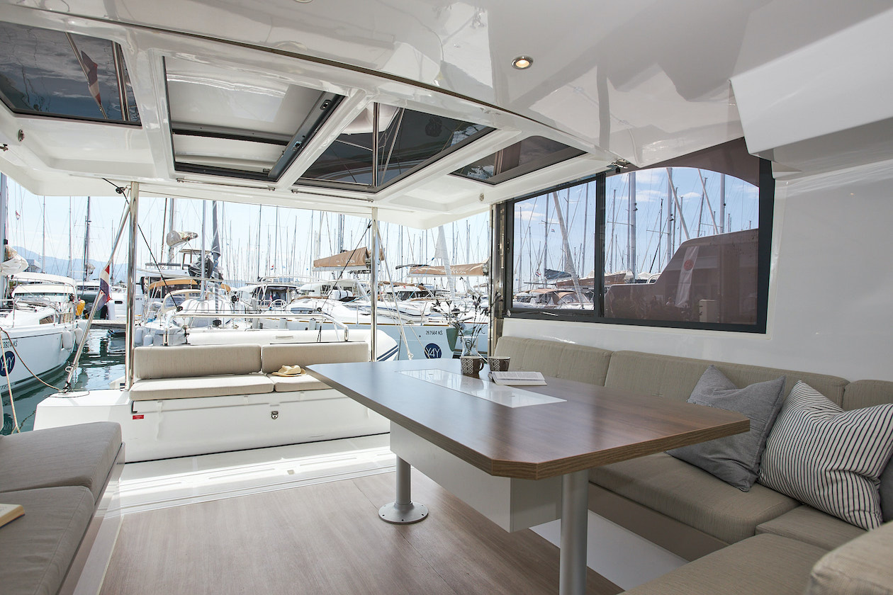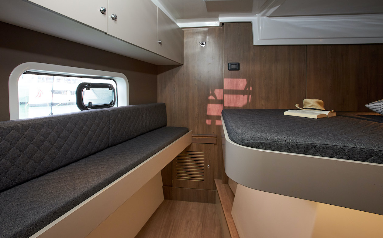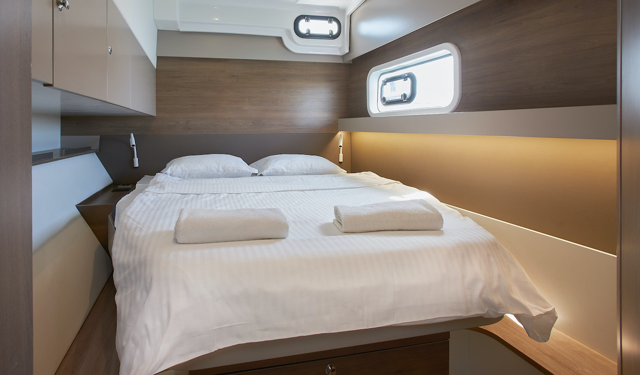 Outside 220 V-Landanschluss, Anker mit Kette, Biminitop, Cockpitdusche, Cockpitpolster, Deckpolster, elektr. Ankerwinsch, Grill, Solaranlage, Unterwasserbeleuchtung