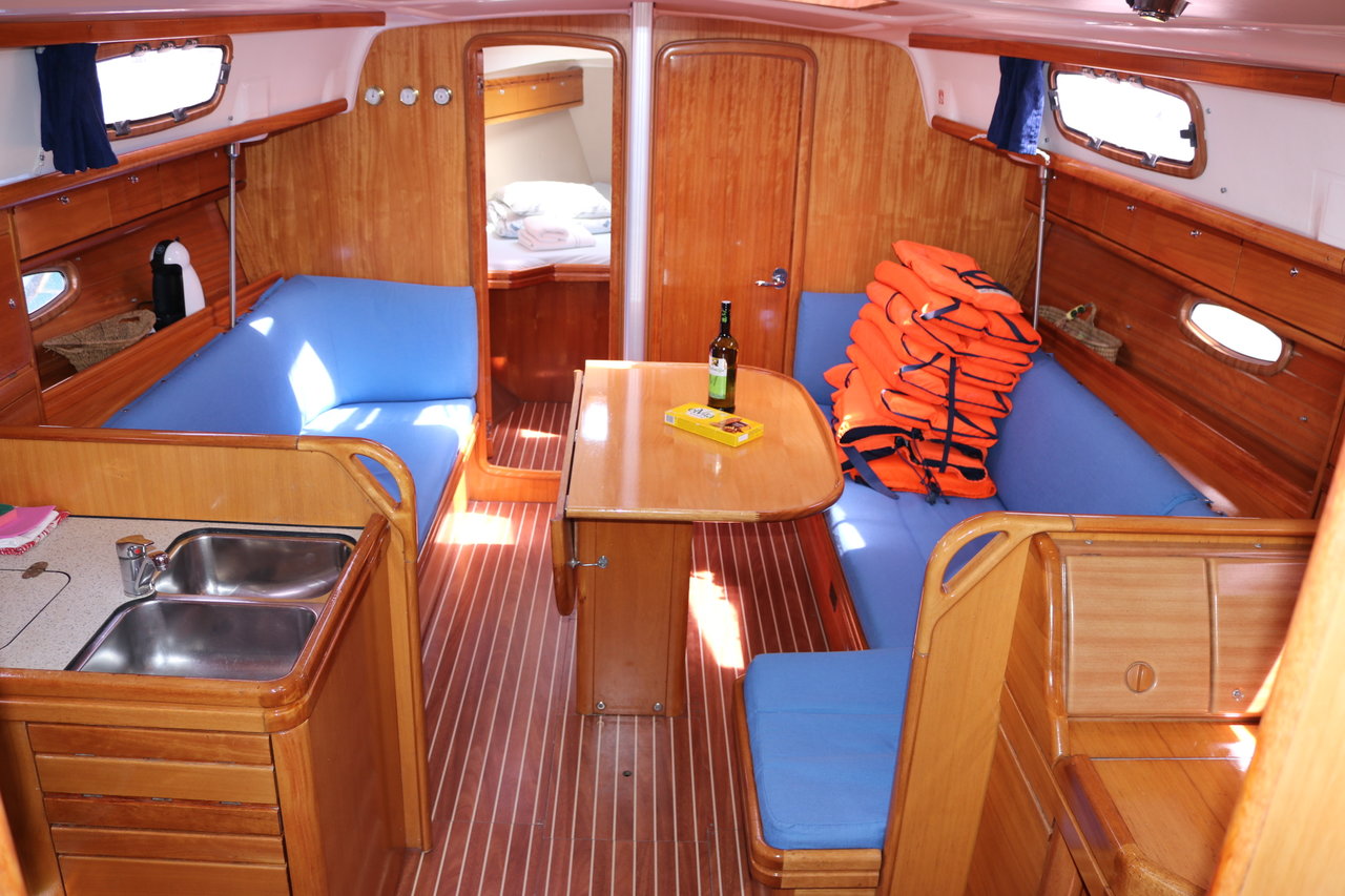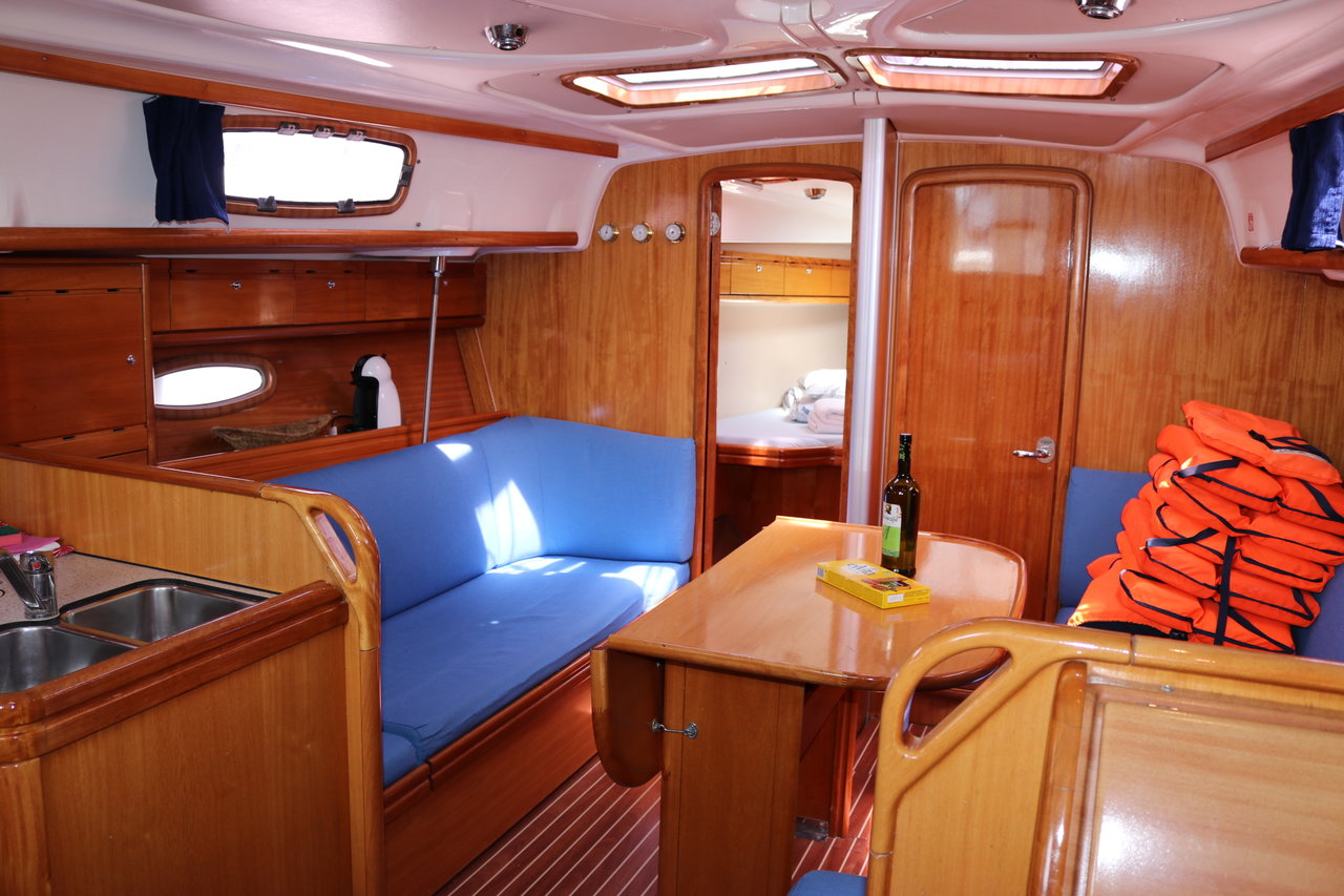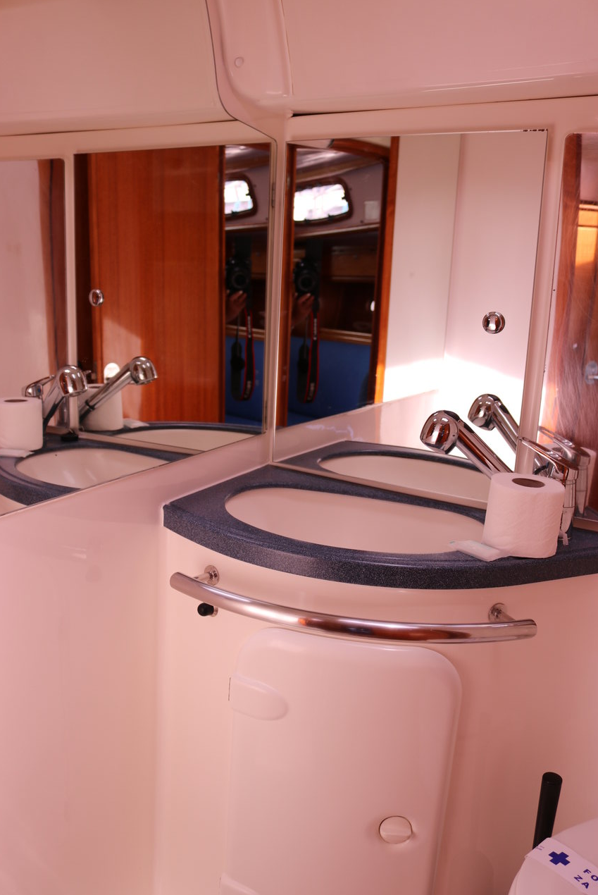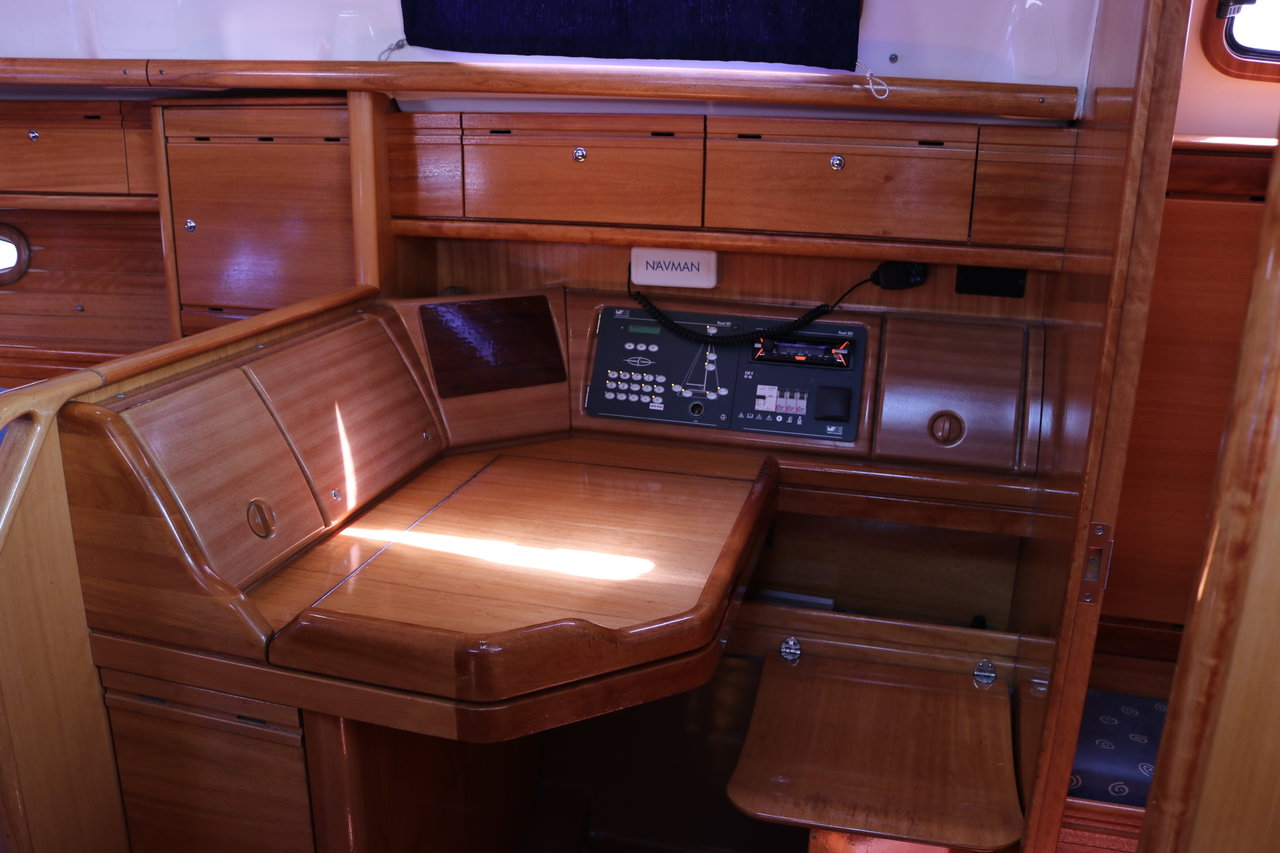 | Navigation | Echolot, Fernglas, GPS mit Kartenplotter im Cockpit, Hafenhandbücher, Handpeilkompass, Kompass, Seekarten, Sumlog, Windmesser |