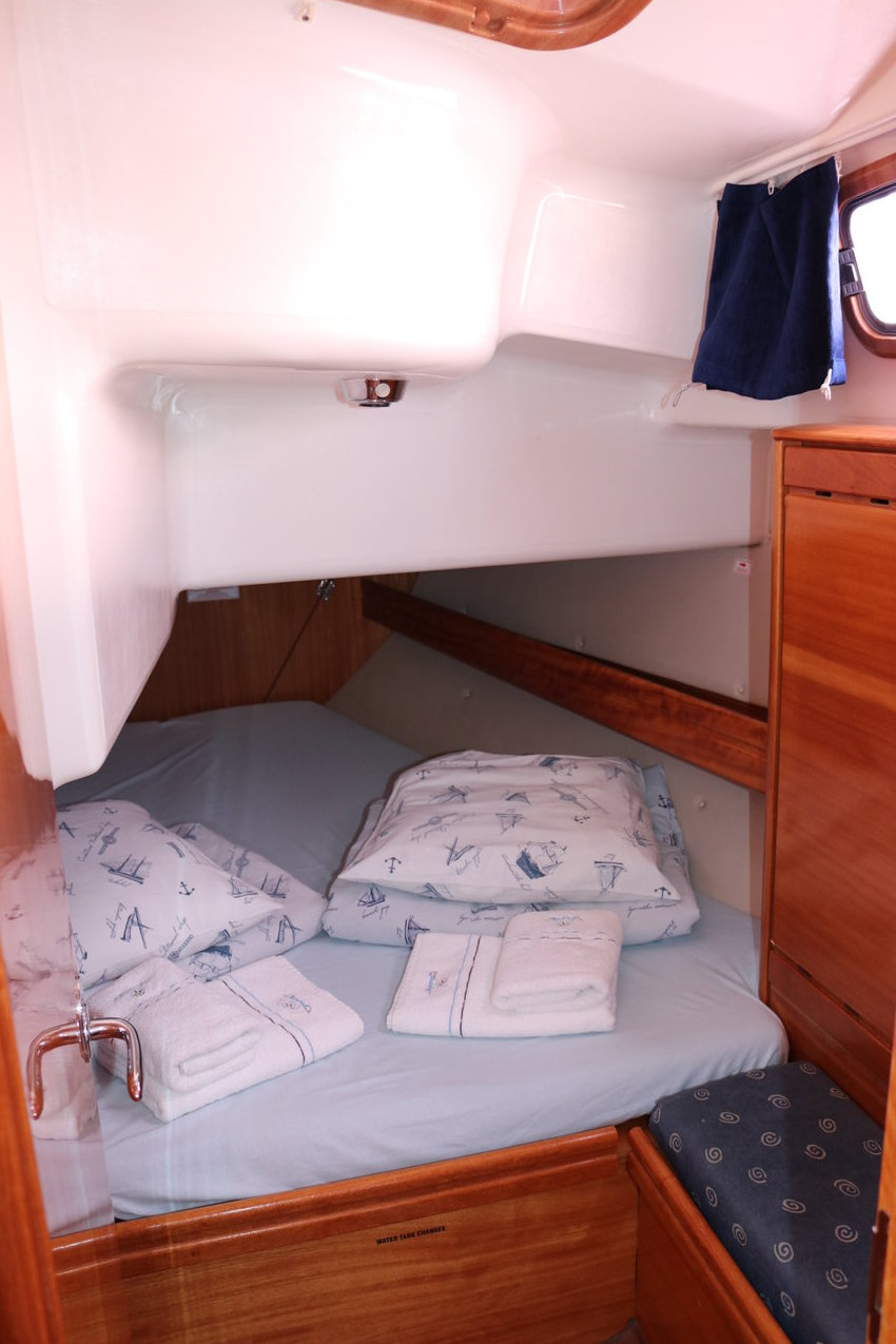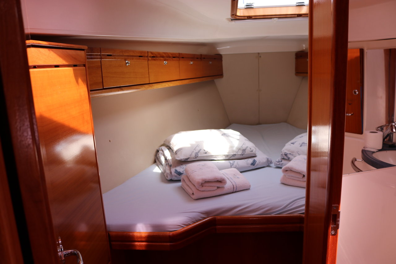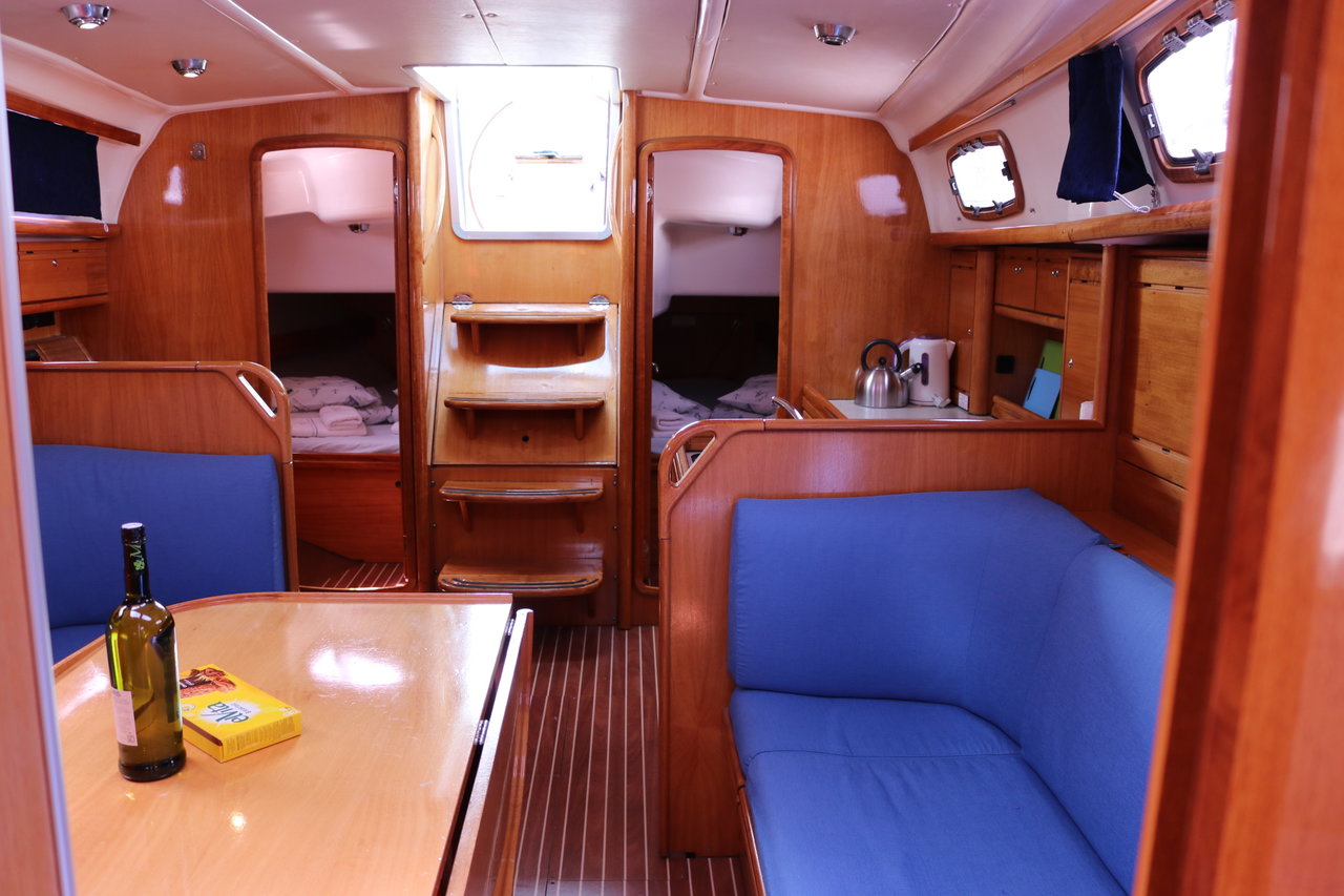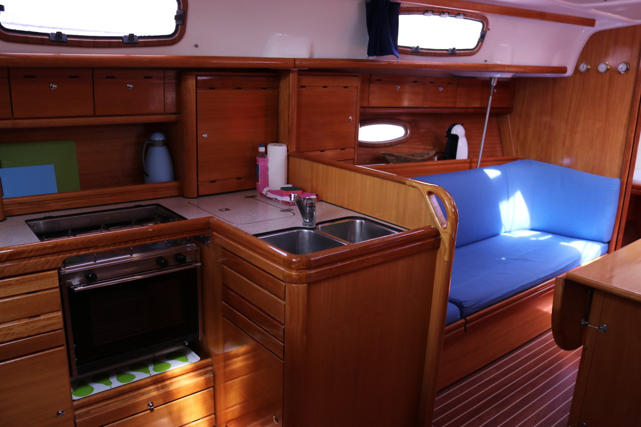 | Navigation | Echolot, Fernglas, GPS mit Kartenplotter im Cockpit, Hafenhandbücher, Handpeilkompass, Kompass, Seekarten, Sumlog, Windmesser |