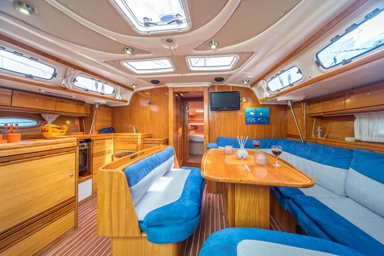 | Outside | Badeleiter, Biminitop, Cockpitdusche, Cockpitlautsprecher, Cockpittisch, elektr. Ankerwinsch, Fender, Solaranlage, Sprayhood |