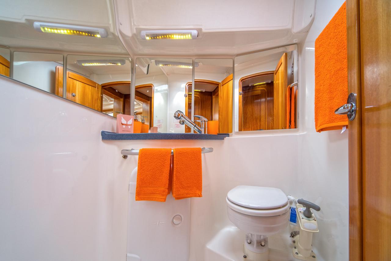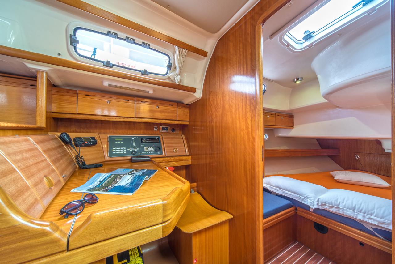 | Safety | Autopilot, Bordapotheke, Bugstrahlruder, elektr. Bilgepumpe, Feuerlöscher, Handbilgepumpe, Lifebelts, Nebelhorn, Notsignale, Radarreflektor, Rettungswesten, UKW-Funk |