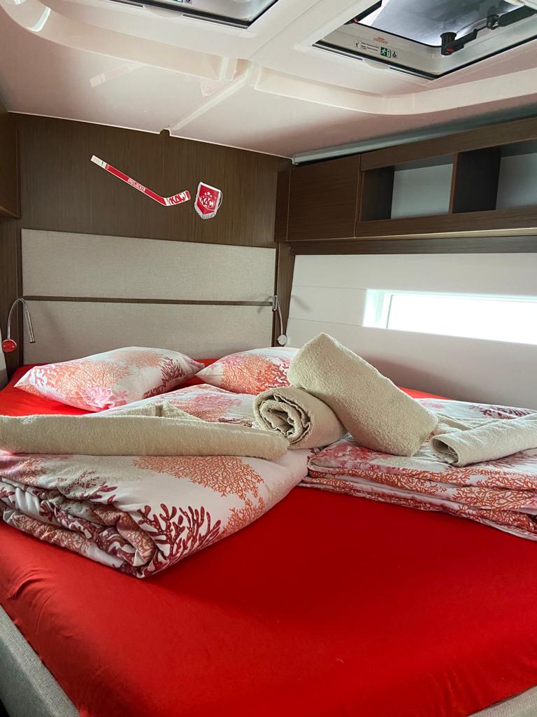 | Inside | 12V Steckdose, 220V Steckdosen, Fäkalientank, Gasherd mit Backofen, Gefrierschrank, LED-Innenleuchten, Warmwasser, WC (elektr.) |