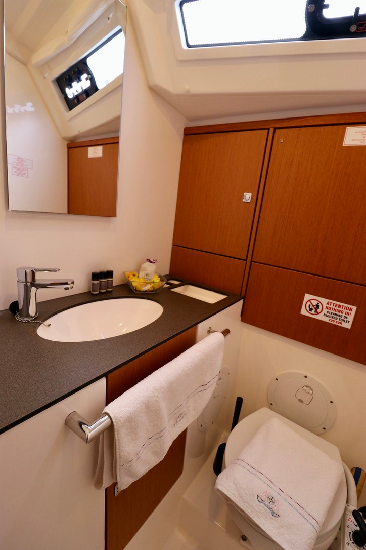 | Outside | 220 V-Landanschluss, Anker mit Kette, Badeplattform, Benzinkanister, Biminitop, Cockpitdusche, Cockpitlautsprecher, Cockpitpolster, Cockpittisch, elektr. Winsch, Fender, Festmacherleinen, Gangway, Grill, Sprayhood, Teak im Cockpit, Tendergarage |