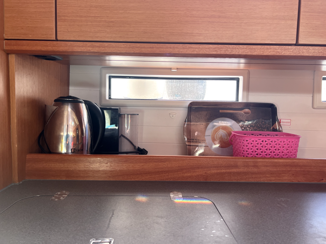| Inside | Backofen, Fäkalientank, Inverter 12V/220V, Kaffeemaschine, Klimaanlage (Landstrom), Kühlschrank, Ladegerät, Lautsprecher im Salon, Pantryausstattung, Radio mit Bluetooth, Spülbecken, Warmwasser |