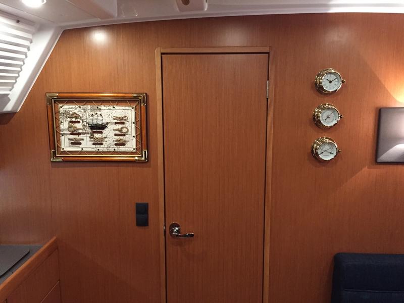 | Navigation | Echolot, Fernglas, GPS mit Kartenplotter im Cockpit, Hafenhandbücher, Handpeilkompass, Kompass, Seekarten, Sumlog, Windmesser |