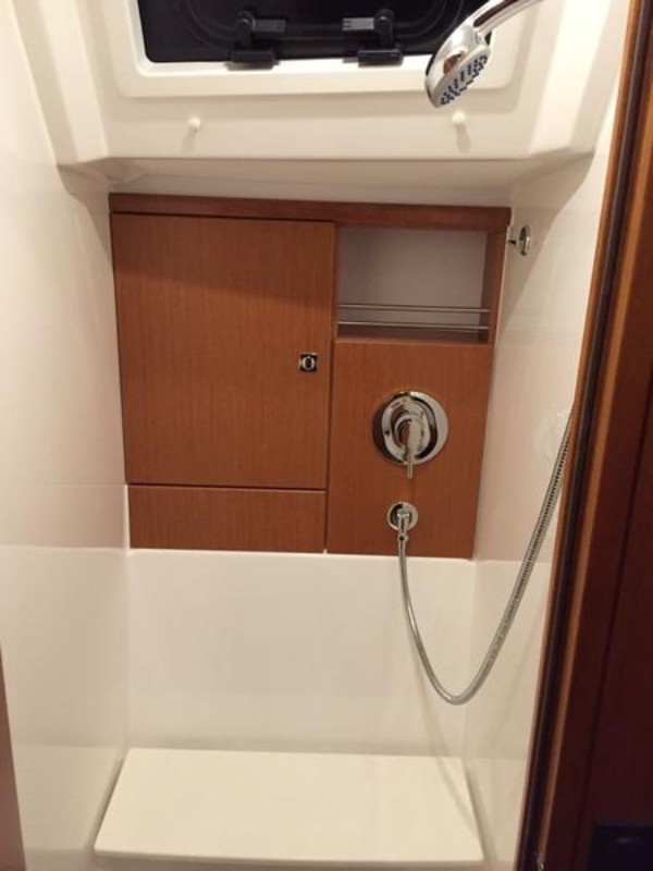 | Outside | 12 V-Anschluss, 220 V-Landanschluss, Anker mit Kette, Badeplattform, Benzinkanister, Biminitop, Cockpitdusche, Cockpitlautsprecher, Cockpitpolster, Cockpittisch, Fender, Festmacherleinen, Gangway, Sprayhood, Wantenschneider, Windex |