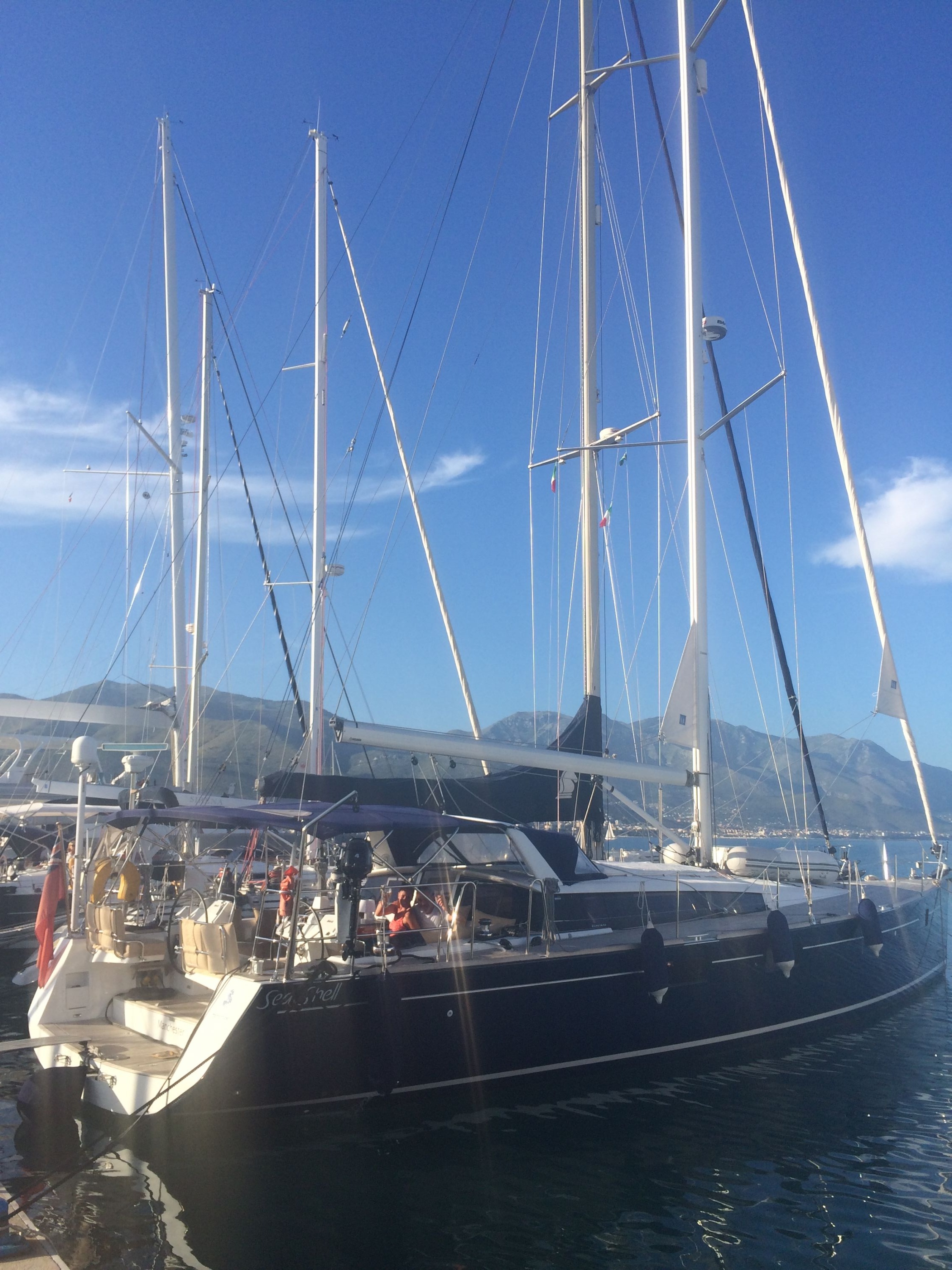 | Navigation | GPS mit Kartenplotter im Cockpit, Kompass, Motorstundenzähler, Radar, Tridata (Log, Echolot, Windm.), Windmesser |