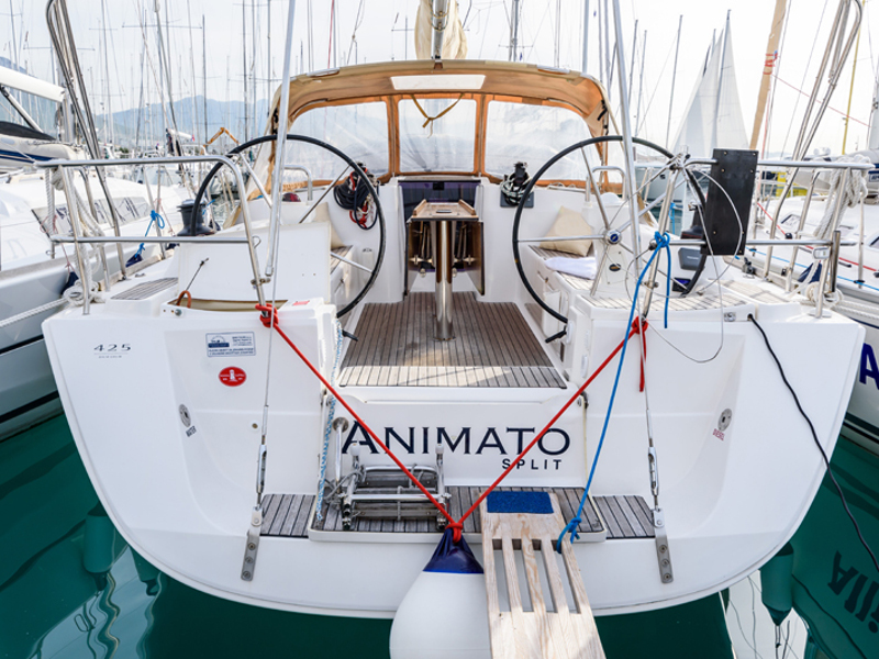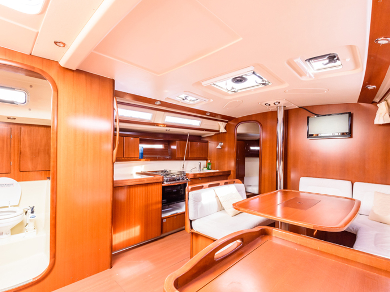 Outside 220 V-Landanschluss, Anker mit Kette, Biminitop, Cockpitdusche, Cockpitlautsprecher, Cockpitpolster, Cockpittisch, elektr. Ankerwinsch, Sprayhood, Teak im Cockpit