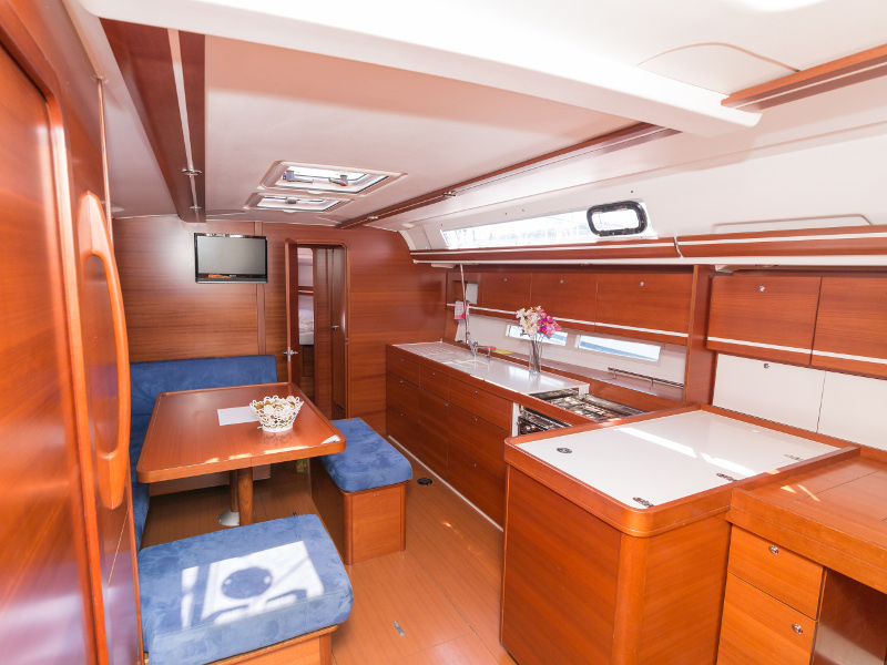 | Inside | Fäkalientank, Gefrierschrank, Heizung, Inverter 12V/220V, Kühlschrank, Lautsprecher im Salon, Radio mit MP3/USB/Aux-In, Salontisch absenkbar, Ventilatoren in Kabinen, Warmwasser |