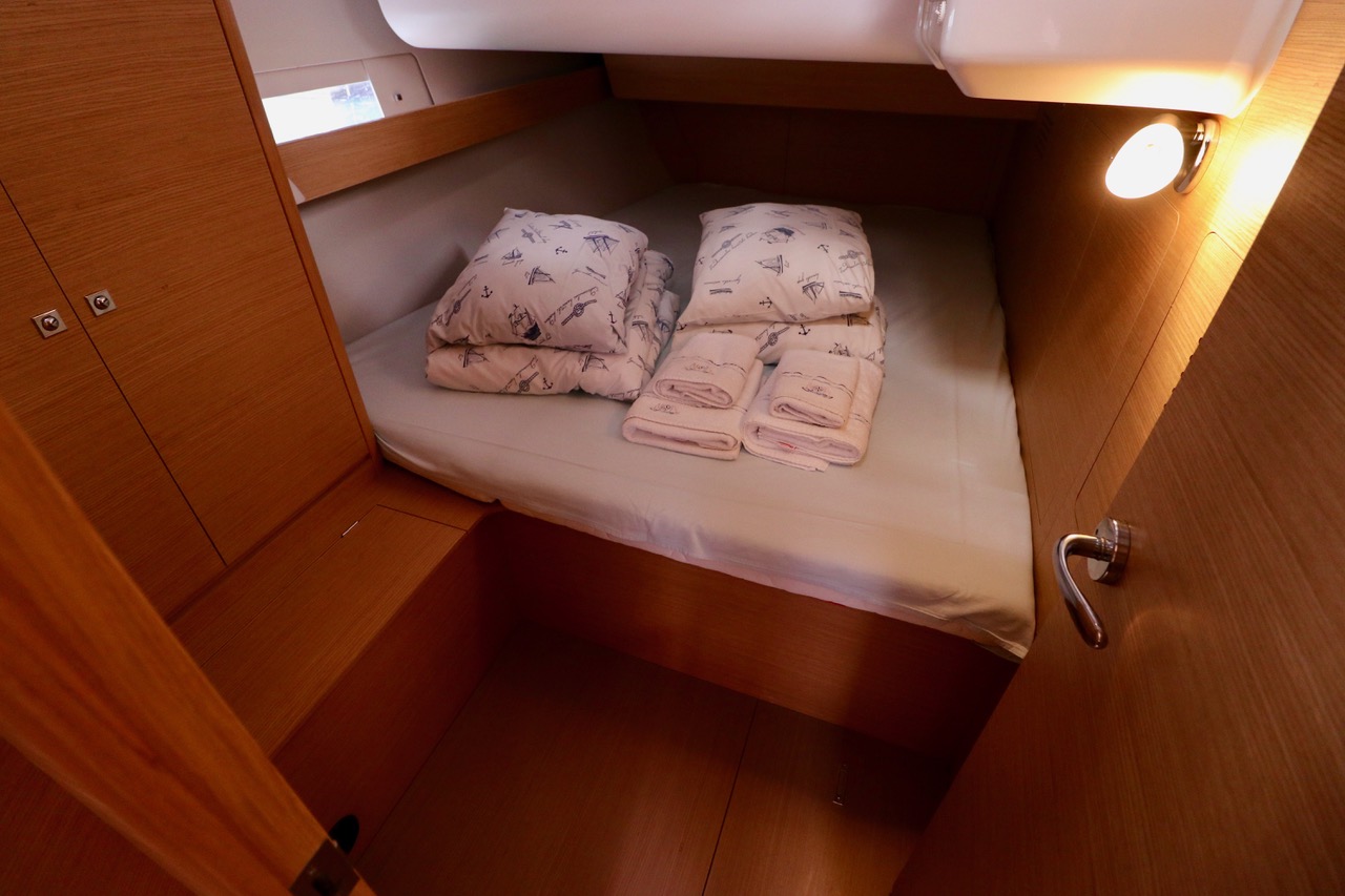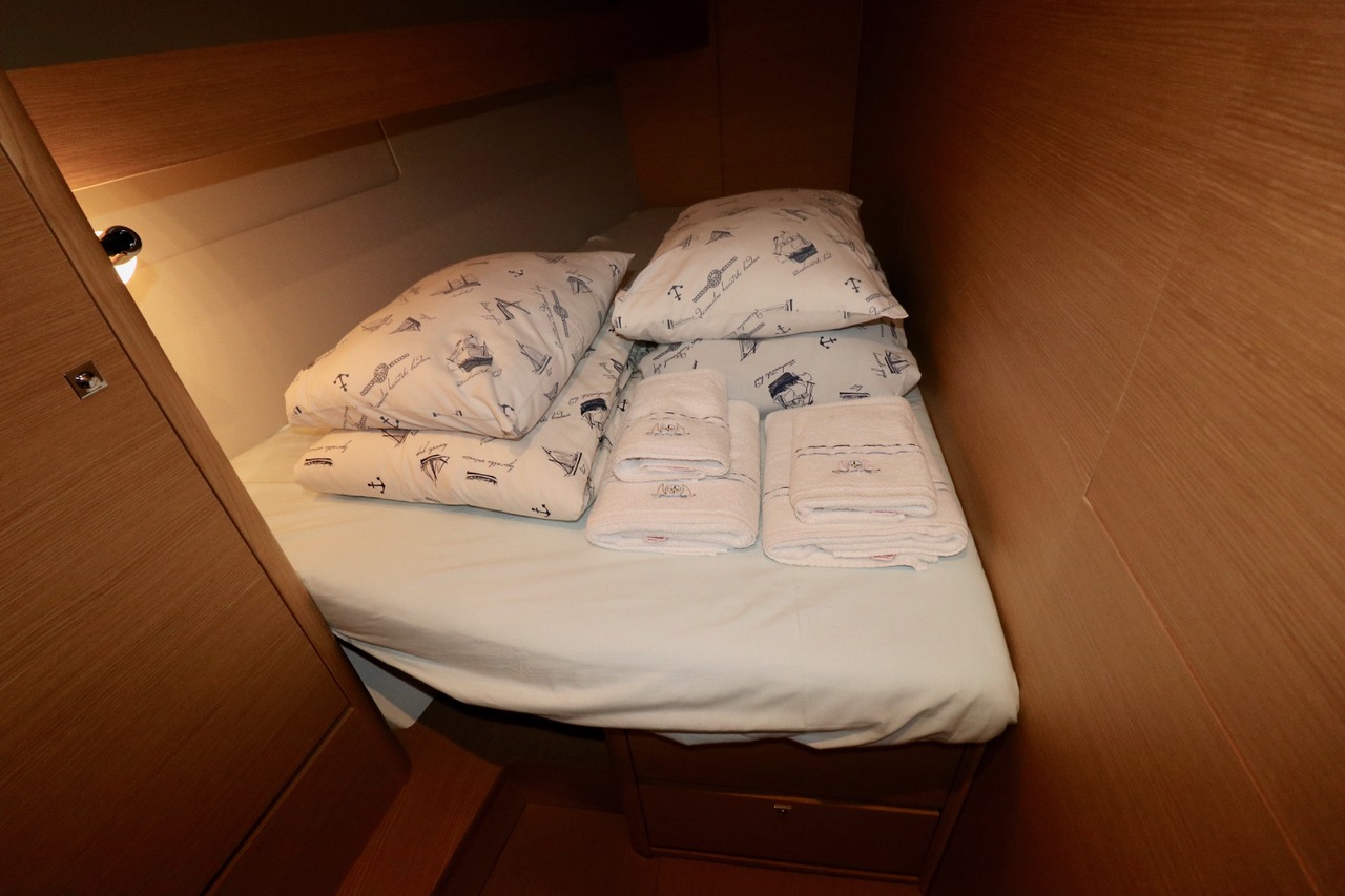 | Safety | Autopilot, Bootsmannstuhl, Bordapotheke, Bordwerkzeug, Bugstrahlruder, Feststoffschwimmwesten, Handbilgepumpe, Leuchtboje, Lifebelts, Notpinne, Notsignale, Radarreflektor, Rettungskragen, Taschenlampe, UKW-Funk, Zweitanker |