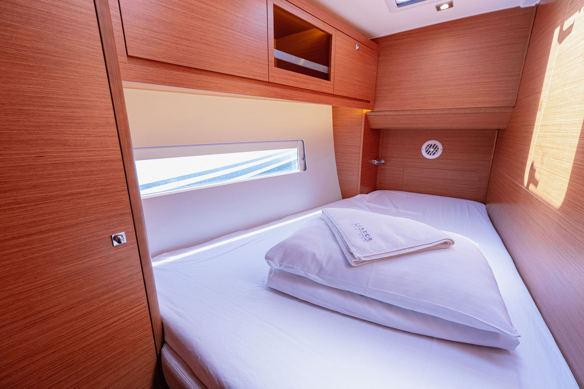 | Safety | AIS Empfänger, Autopilot, Bootsmannstuhl, Bordapotheke, Bordwerkzeug, Bugstrahlruder, Feststoffschwimmwesten, Feuerlöscher, Notpinne, Notsignale, Rettungsinsel, Rettungsring, Schwimmleine, Sicherheitsgurt, Taschenlampe, Zweitanker |