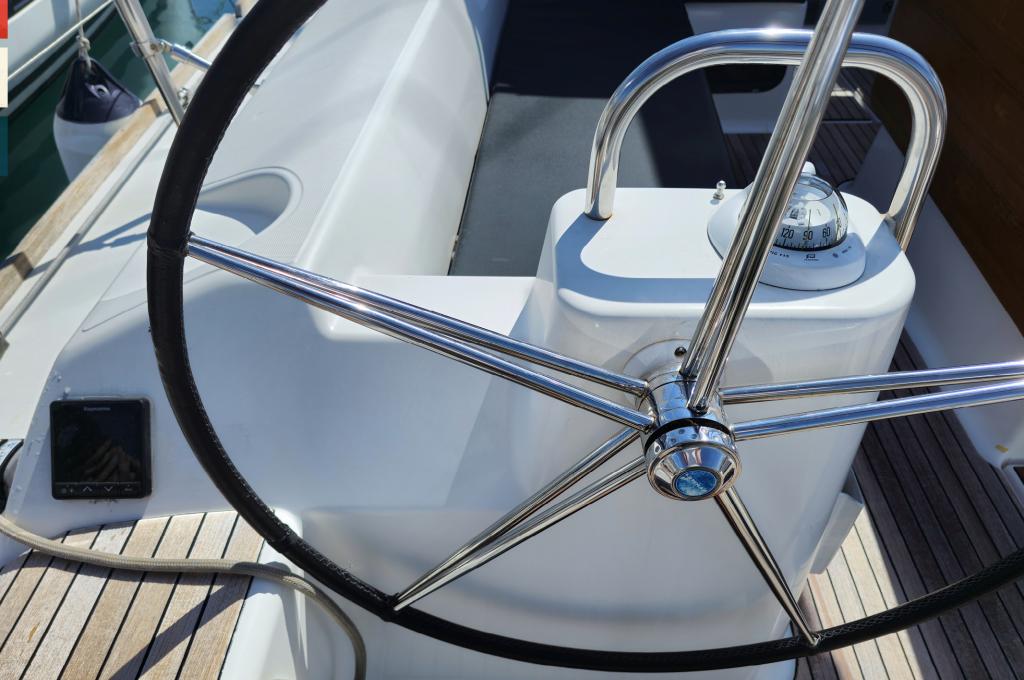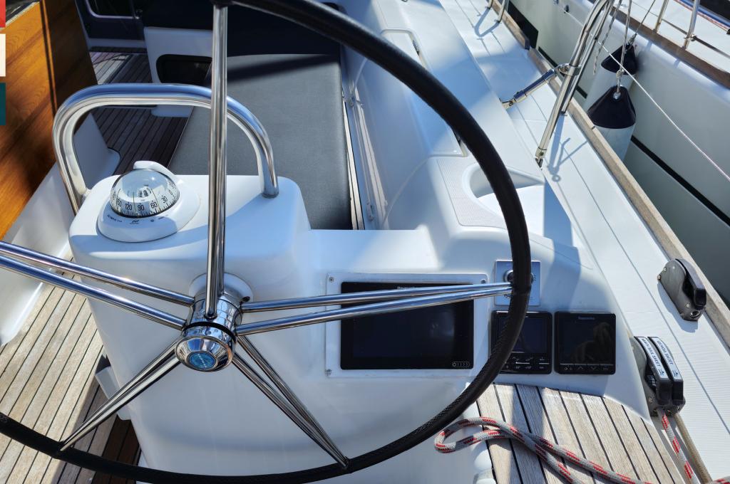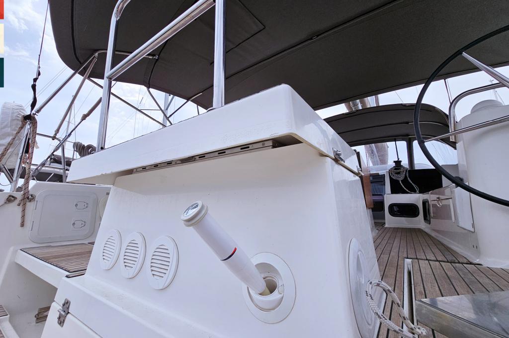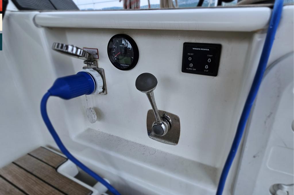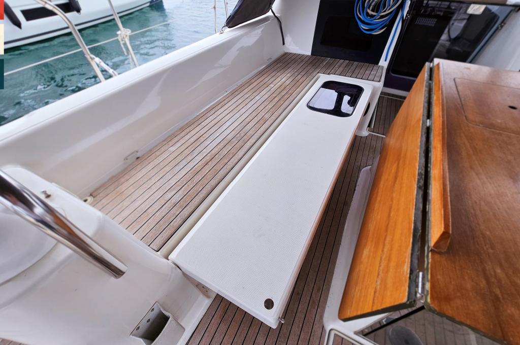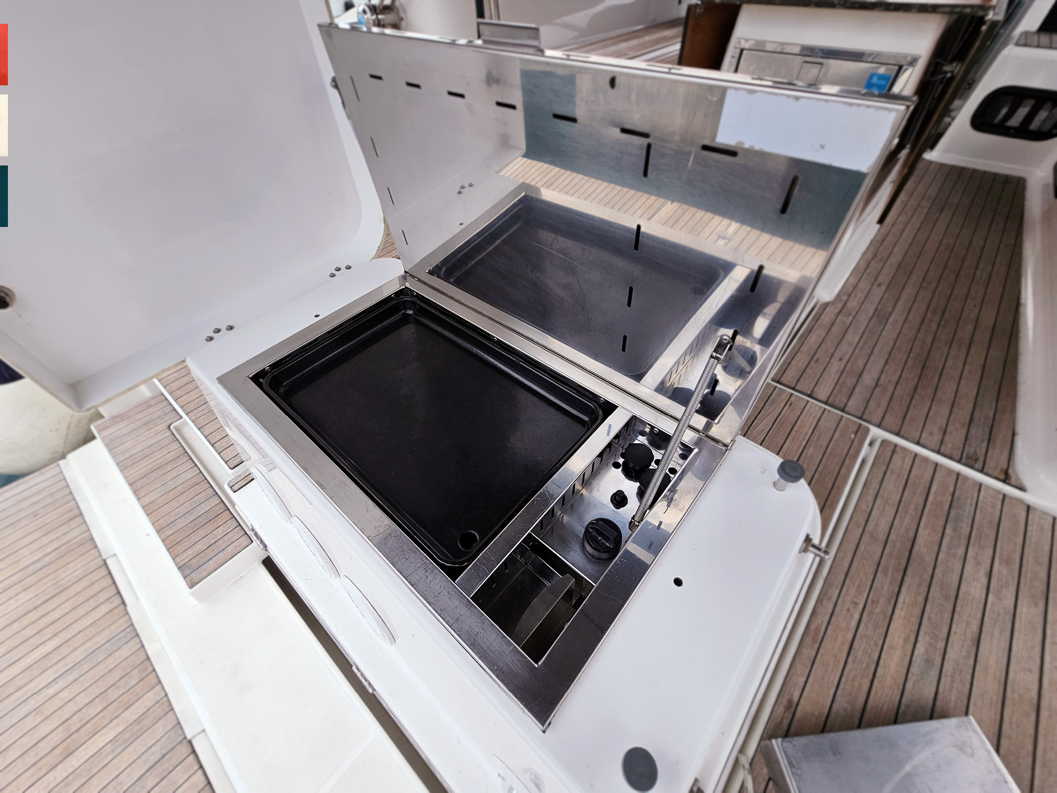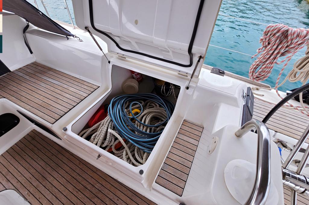 Outside 220 V-Landanschluss, Anker mit Kette, Badeplattform, Benzinkanister, Biminitop, Bootshaken, Cockpitdusche, Cockpitkühlschrank, Cockpitlautsprecher, Cockpitpolster, Cockpittisch, Deckbürste, Dieselkanister , elektr. Ankerwinsch, elektr. Winsch, Fender, Festmacherleinen, Gangway, Grill, Kugelfender, Sprayhood, Spülbecken im Cockpit, Teak auf Badeplattform, Teak im Cockpit, Wasserkanister , Wasserschlauch, Winschen
