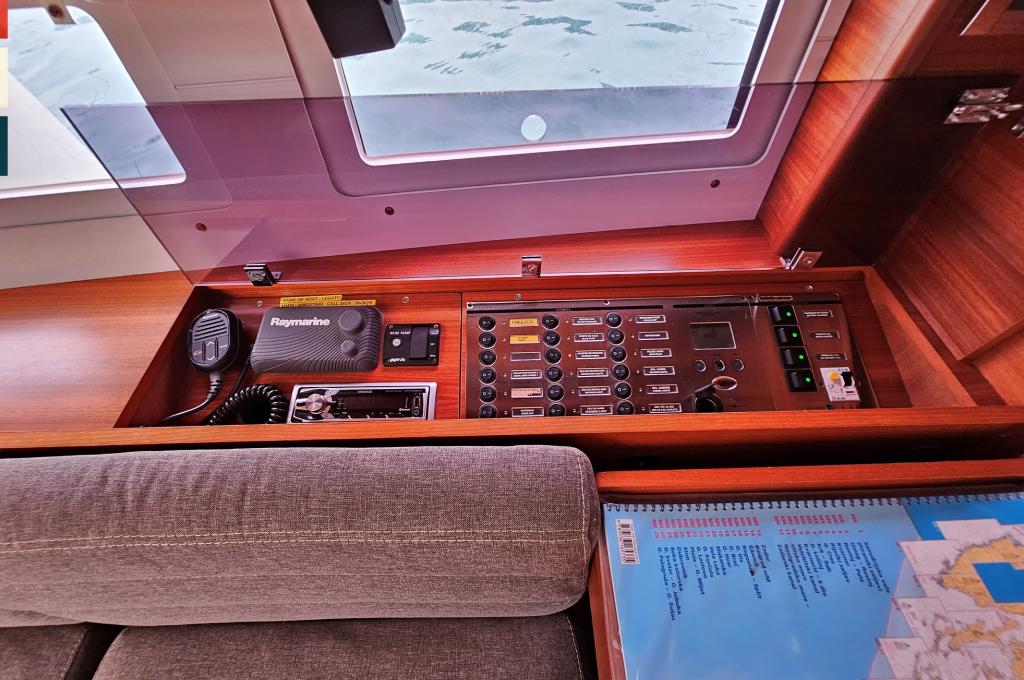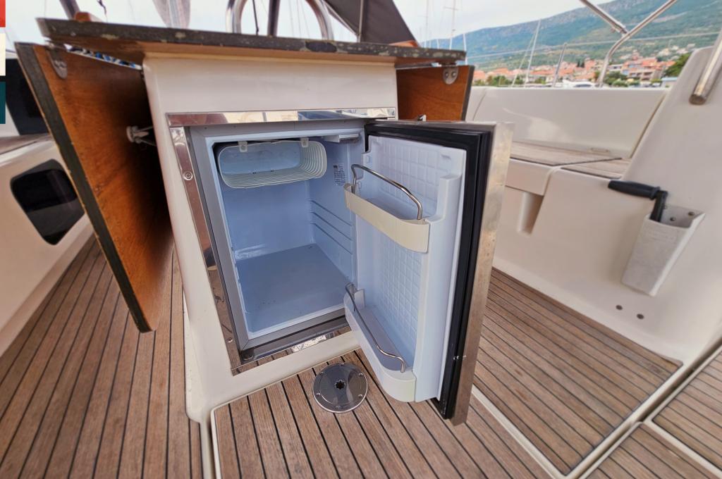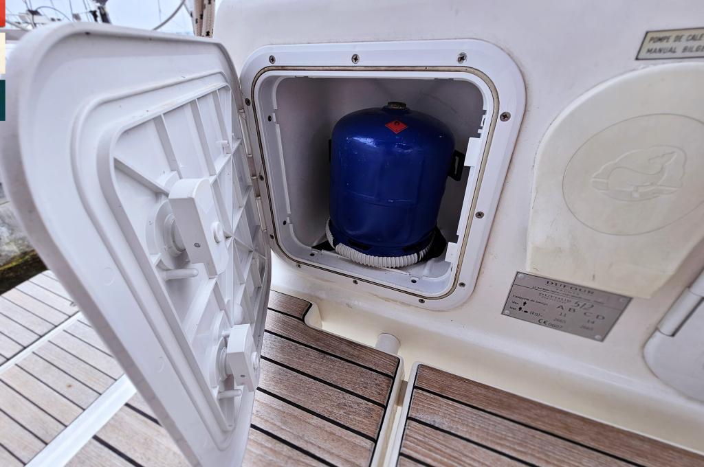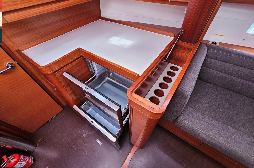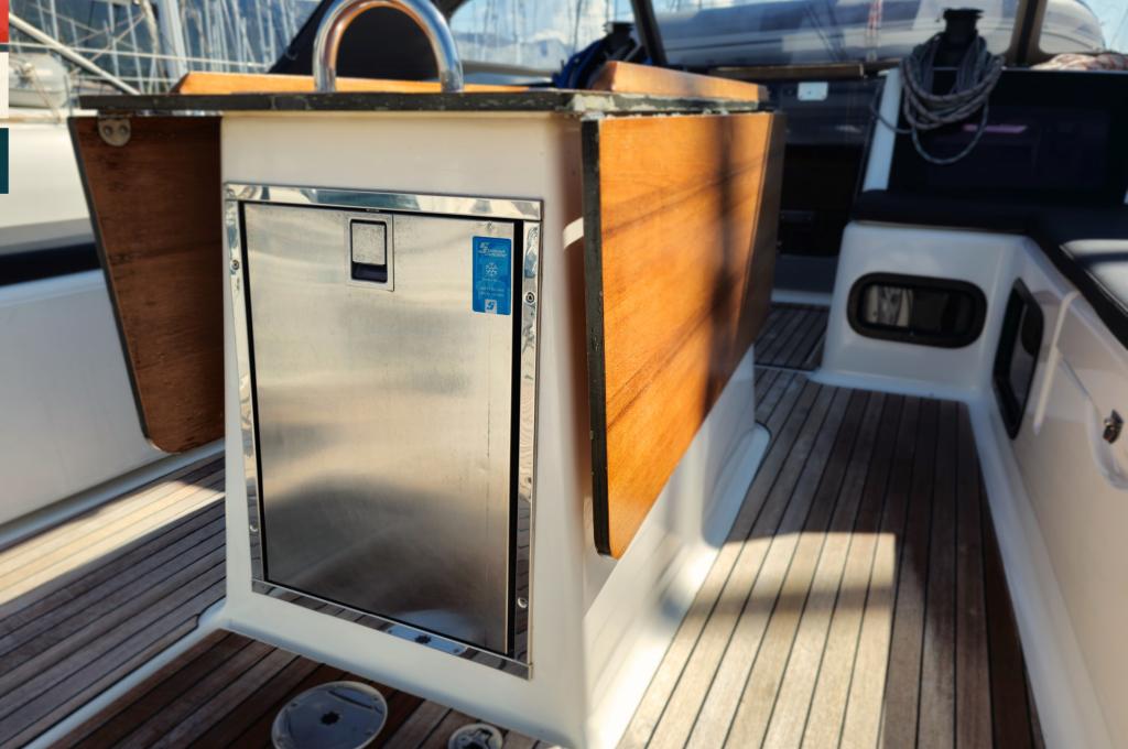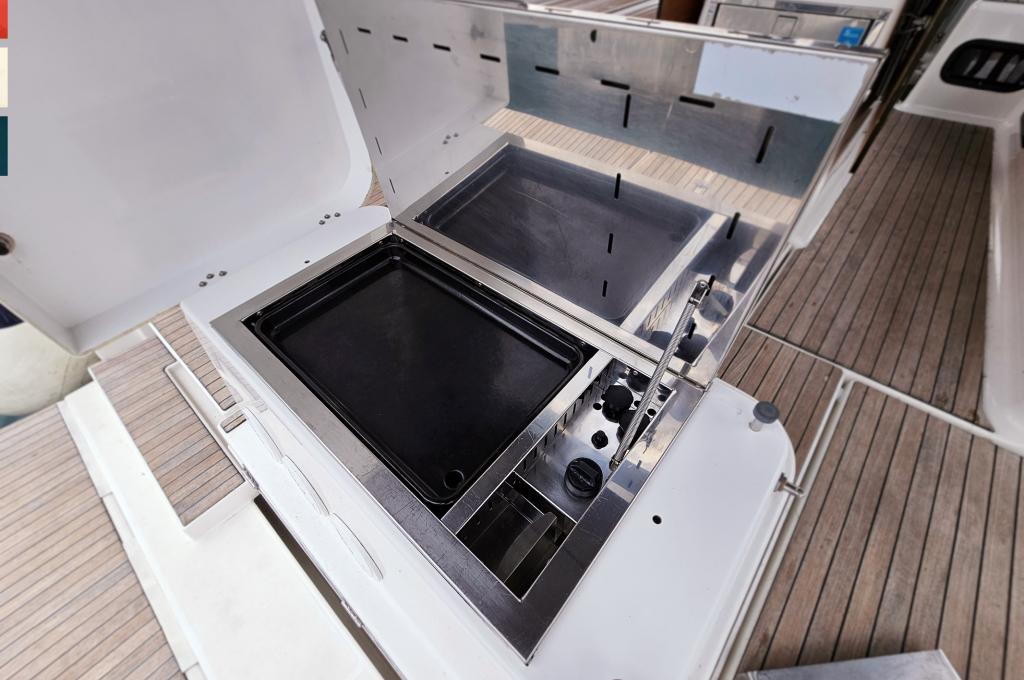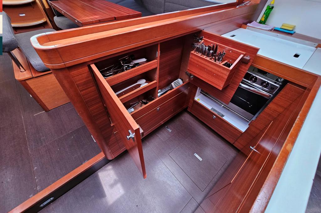 Inside 3-flammiger Gasherd, Fäkalientank, Inverter 12V/220V, Kleiderbügel, Kühlschrank, Landstromkabel, Lautsprecher im Salon, Luftpumpe für Beiboot, Pantryausstattung, Radio mit USB und Bluetooth, Weinkühlschrank