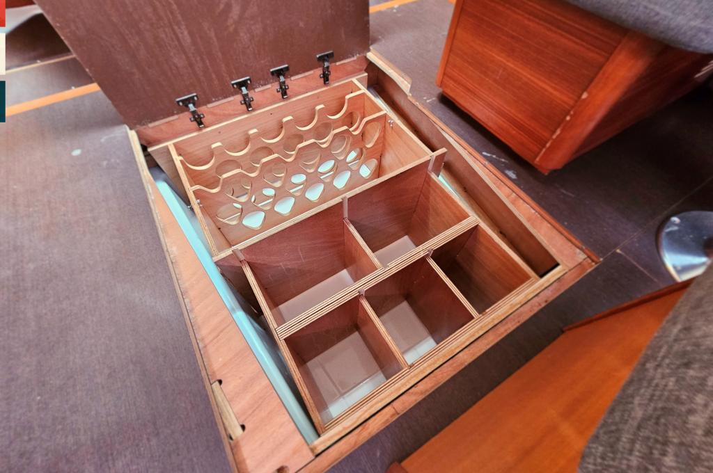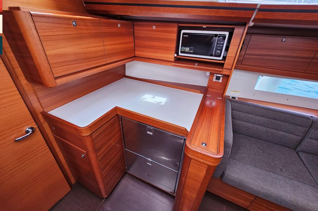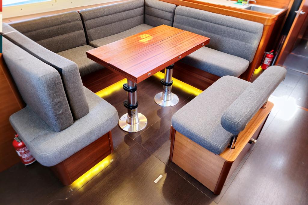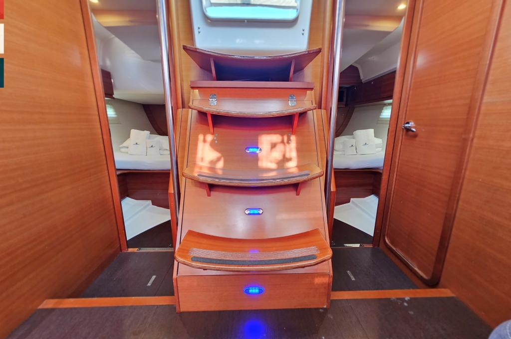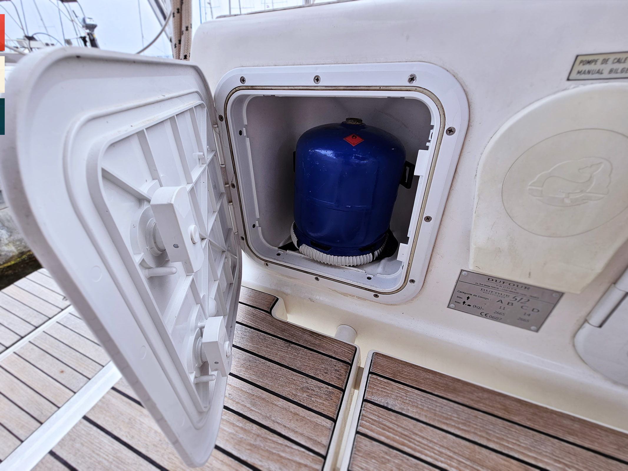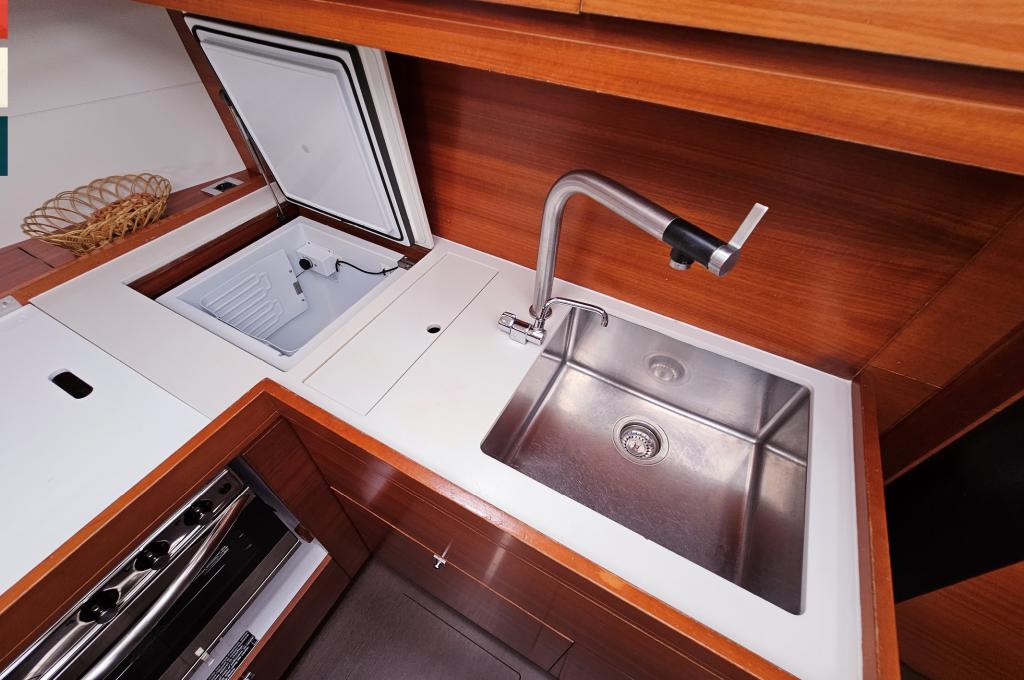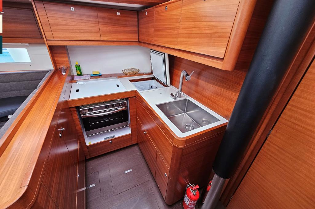 Inside 3-flammiger Gasherd, Fäkalientank, Inverter 12V/220V, Kleiderbügel, Kühlschrank, Landstromkabel, Lautsprecher im Salon, Luftpumpe für Beiboot, Pantryausstattung, Radio mit USB und Bluetooth, Weinkühlschrank