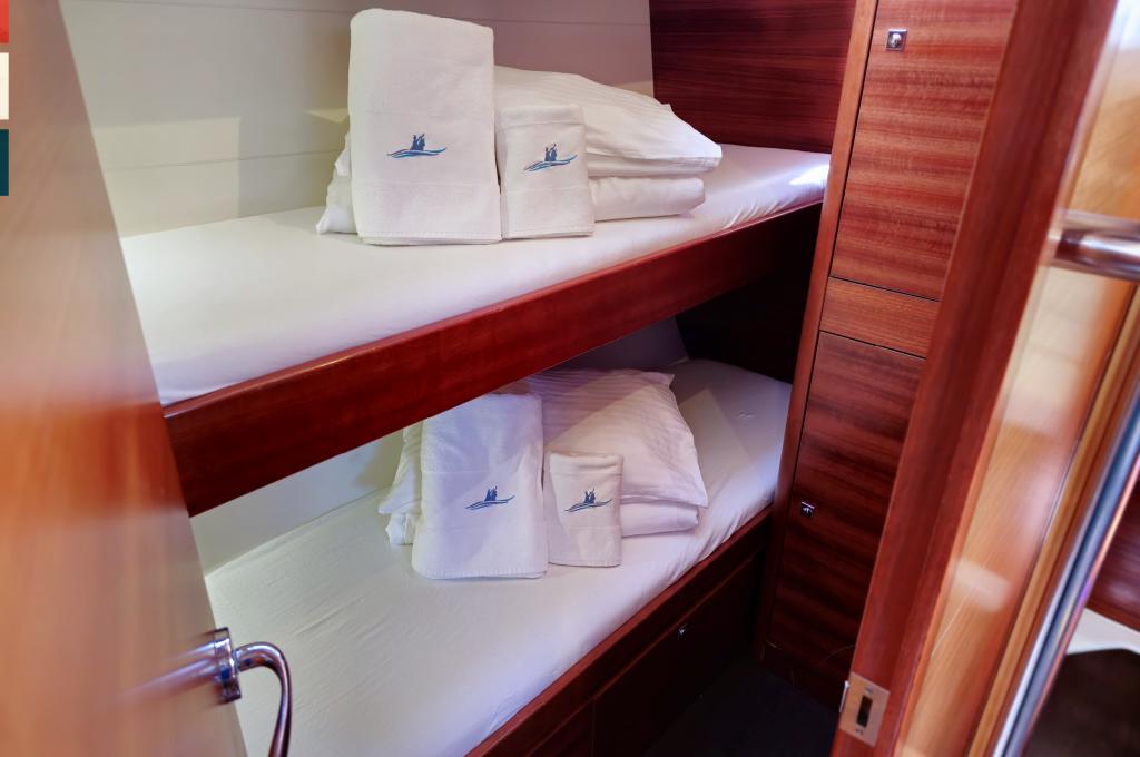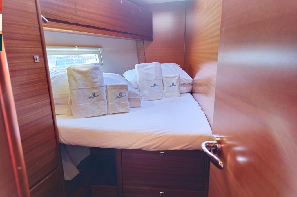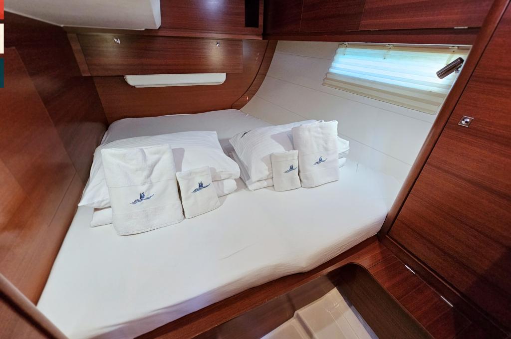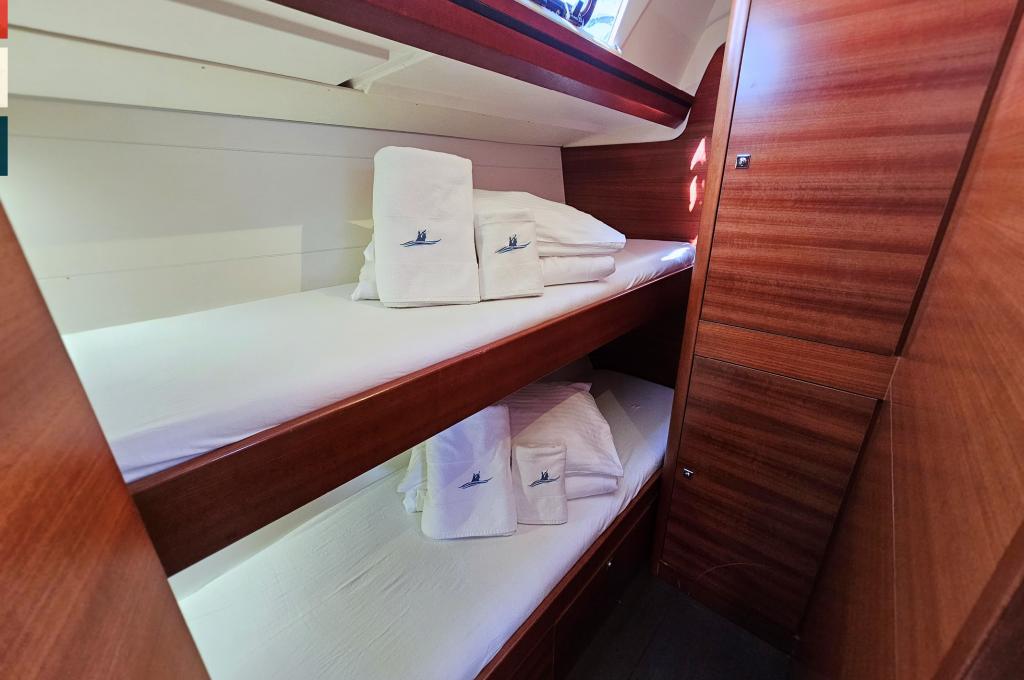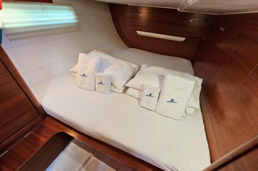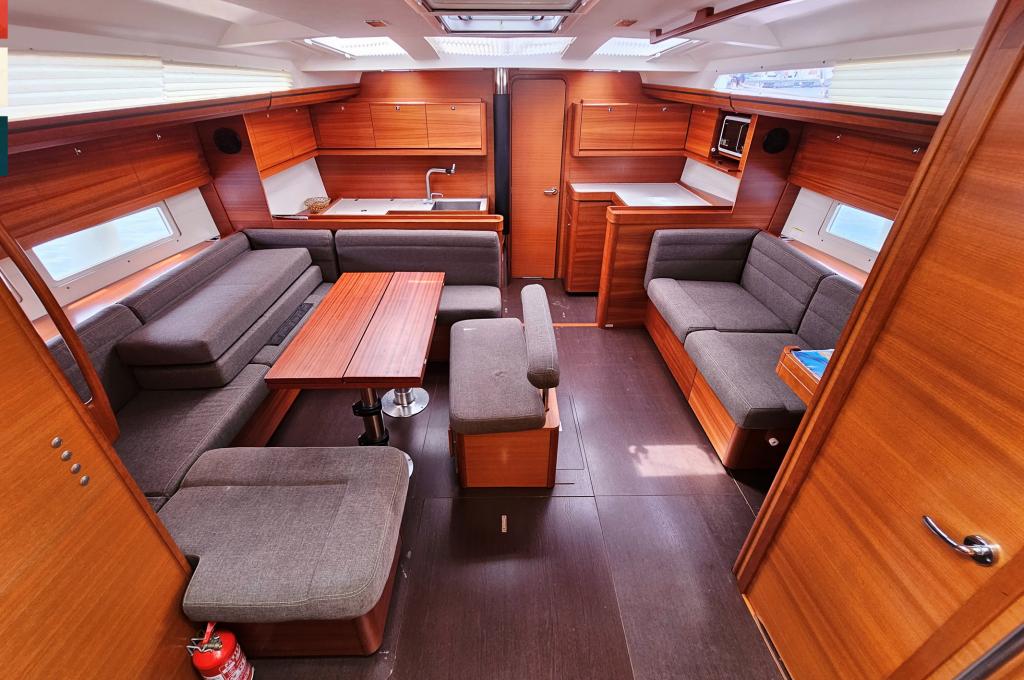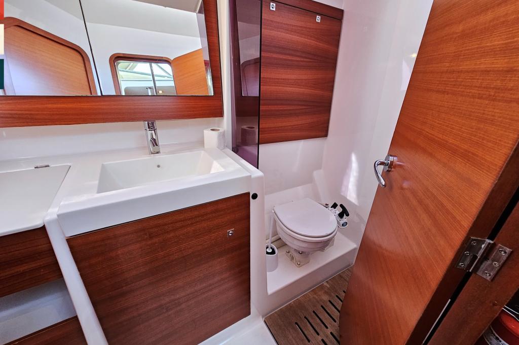 Inside 3-flammiger Gasherd, Fäkalientank, Inverter 12V/220V, Kleiderbügel, Kühlschrank, Landstromkabel, Lautsprecher im Salon, Luftpumpe für Beiboot, Pantryausstattung, Radio mit USB und Bluetooth, Weinkühlschrank