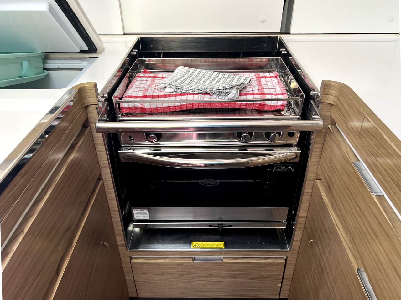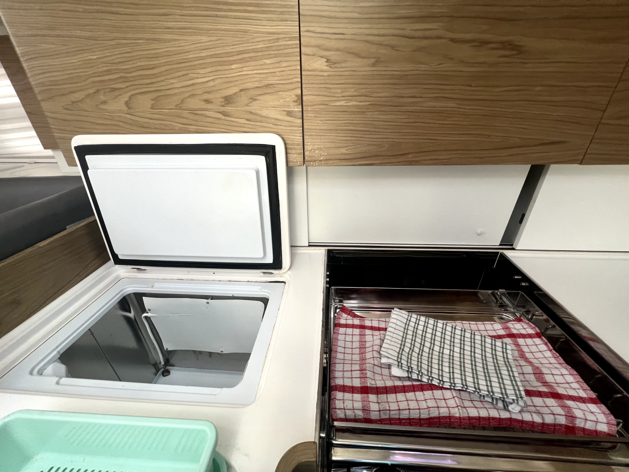 | Inside | Backofen, Fäkalientank, Inverter 12V/220V, Kaffeemaschine, Klimaanlage (Landstrom), Kühlschrank, Ladegerät, Lautsprecher im Salon, Pantryausstattung, Radio mit USB und Bluetooth, Salontisch absenkbar, Warmwasser |