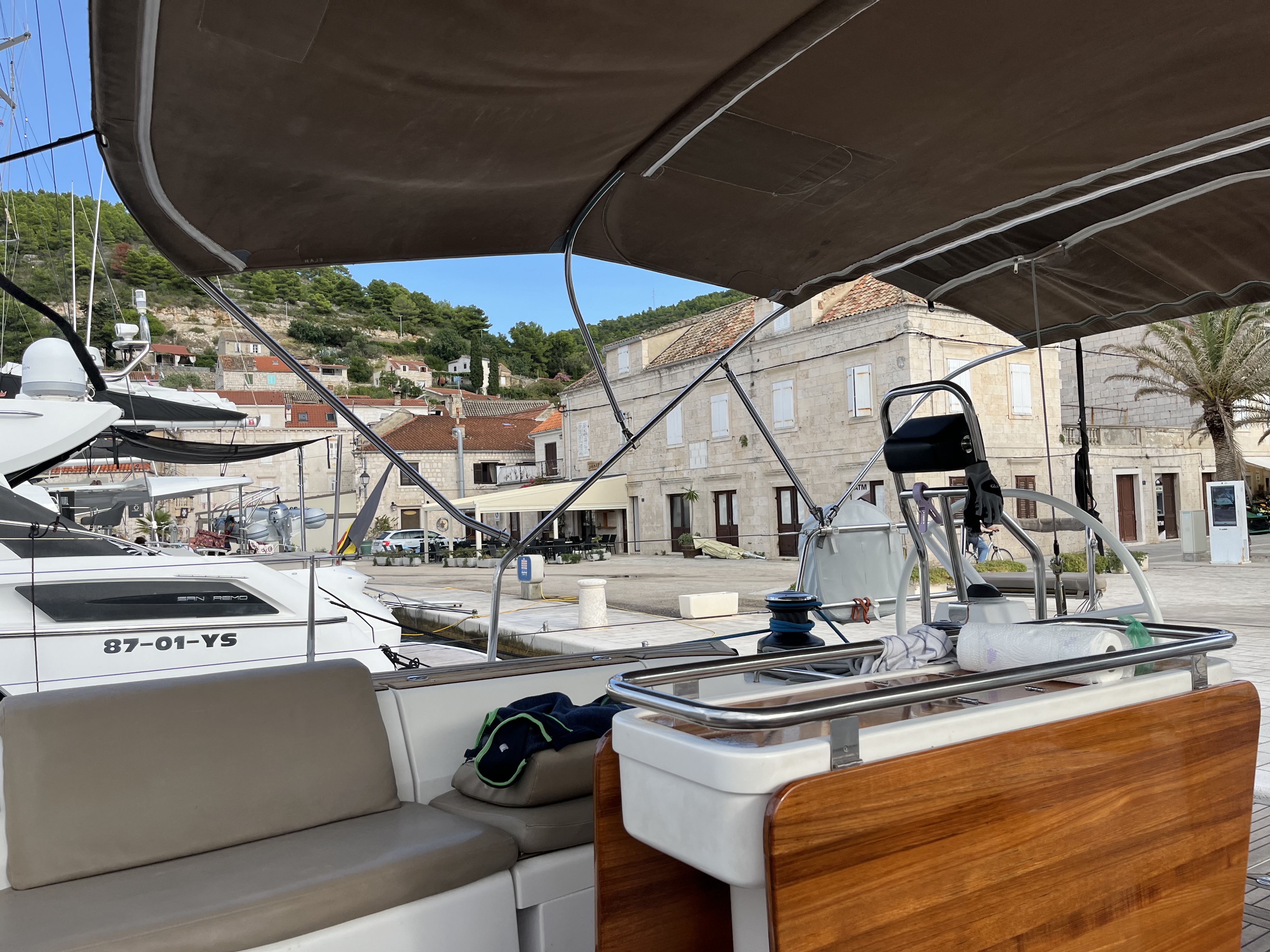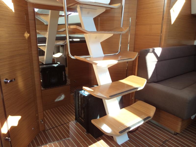 | Outside | 220 V-Landanschluss, Anker mit Kette, Badeplattform, Biminitop, Cockpitdusche, Cockpitkühlschrank, Cockpitpolster, Cockpittisch, Deckbeleuchtung, Deckpolster, elektr. Ankerwinsch, Sprayhood, Unterwasserbeleuchtung |