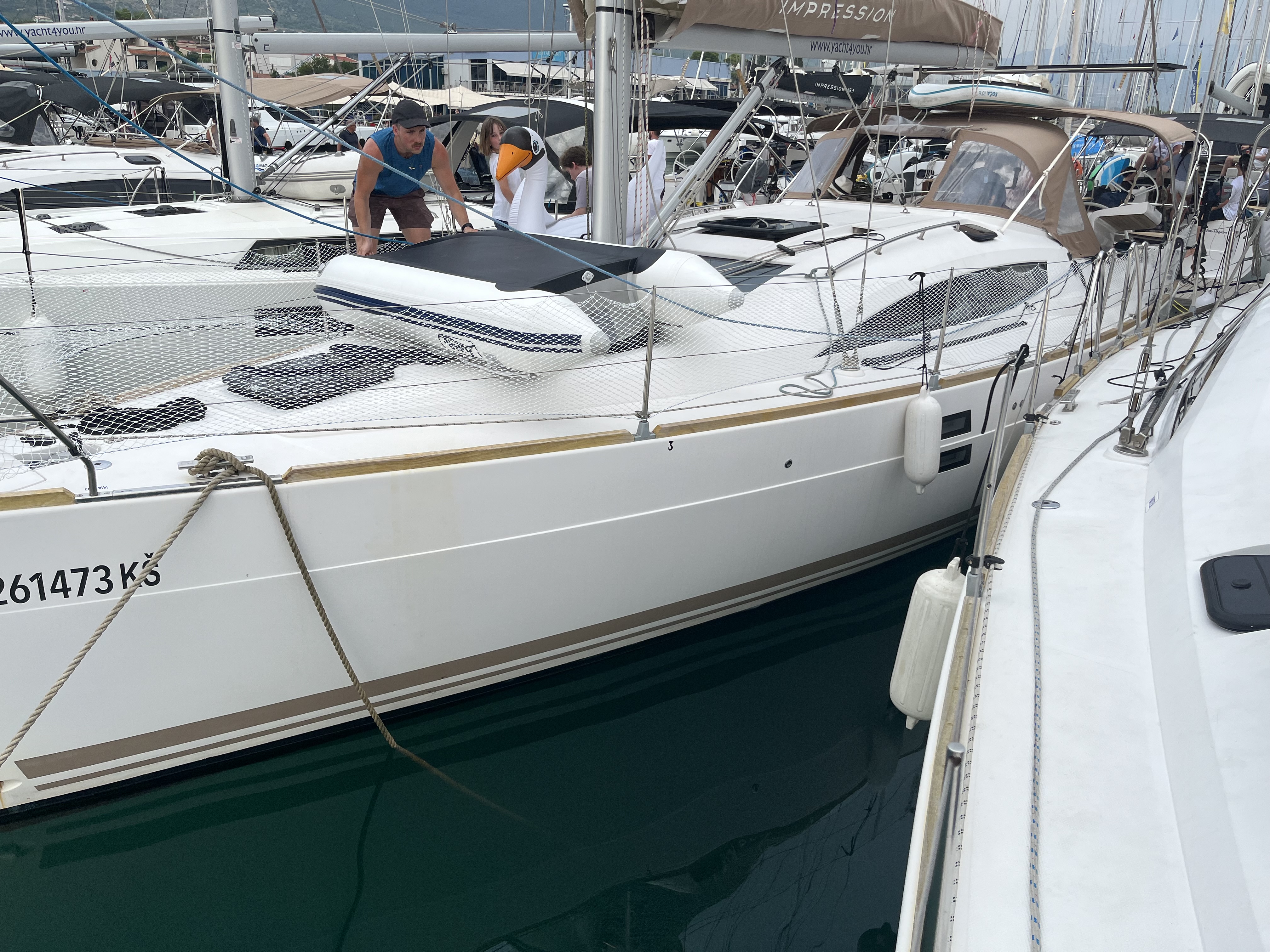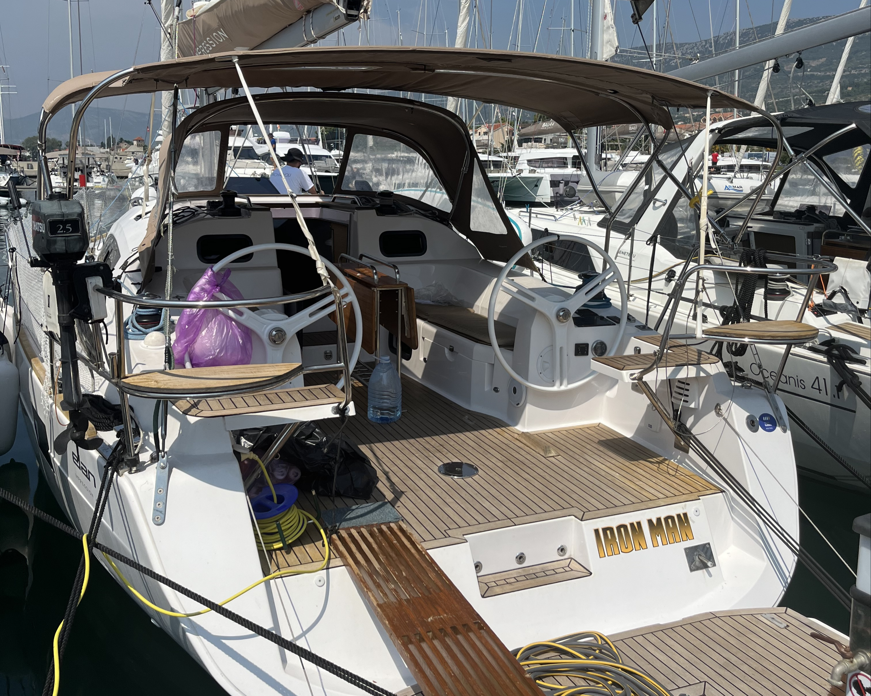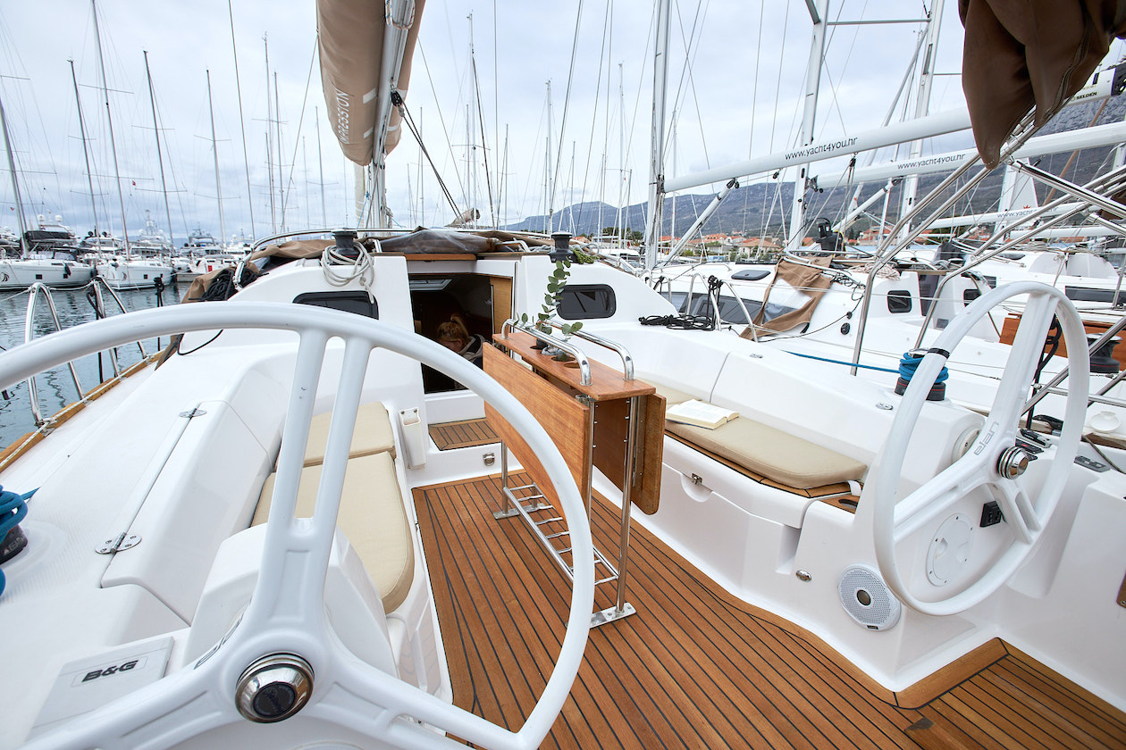 | Outside | 220 V-Landanschluss, Anker mit Kette, Badeplattform, Biminitop, Cockpitdusche, Cockpitpolster, Cockpittisch, elektr. Ankerwinsch, Faltpropeller, Solaranlage, Sprayhood, Teak im Cockpit |