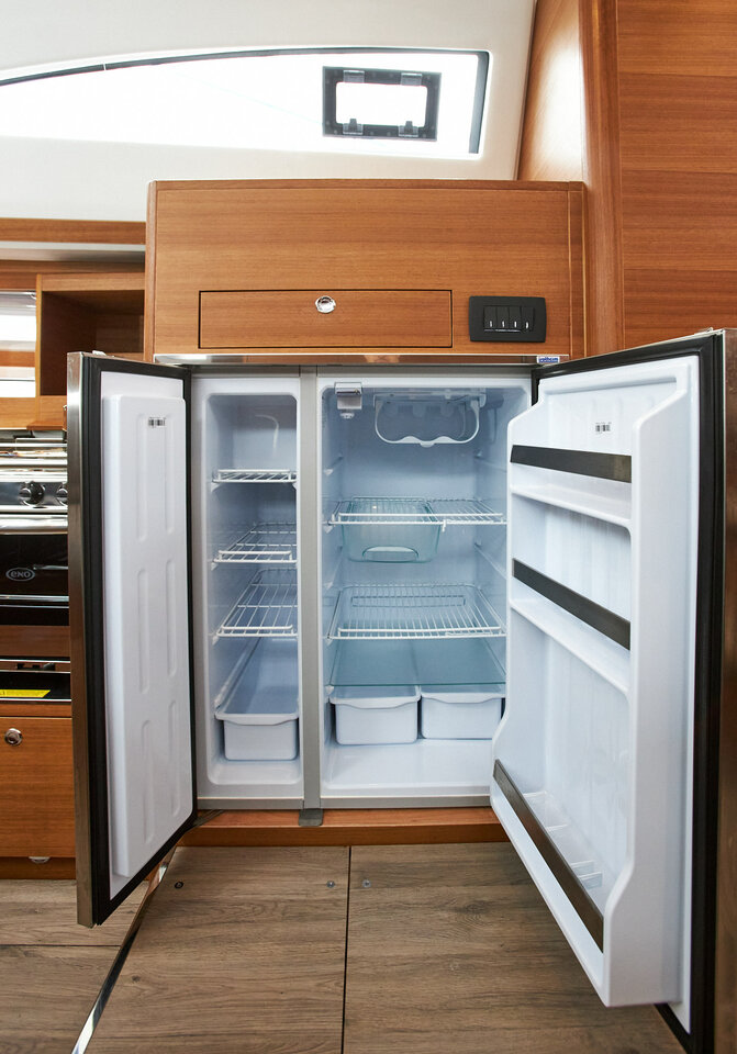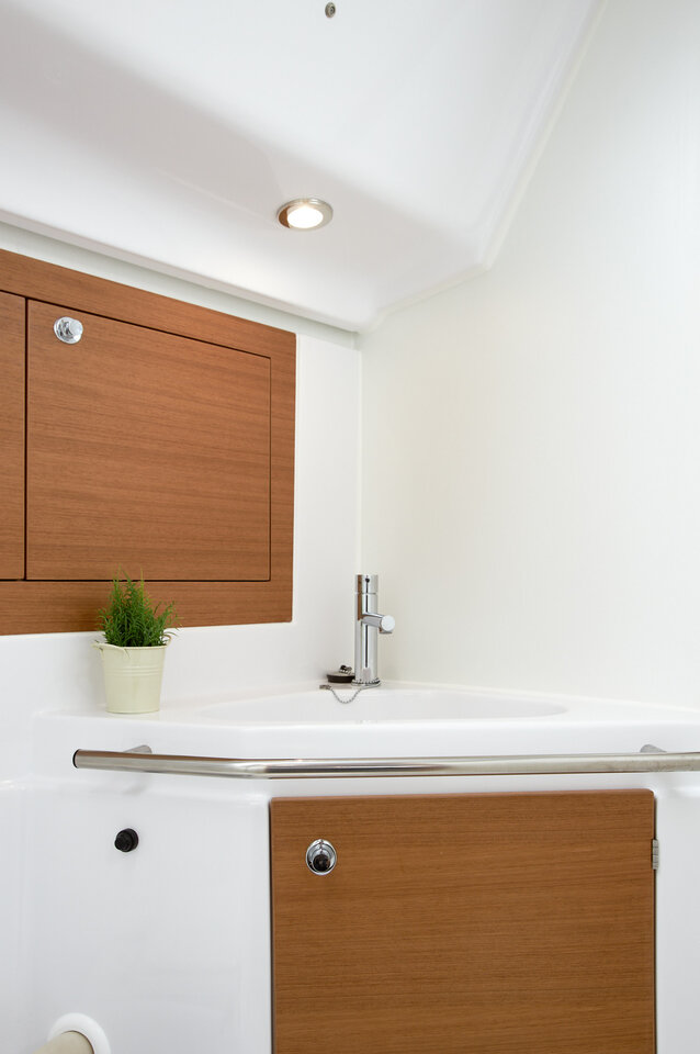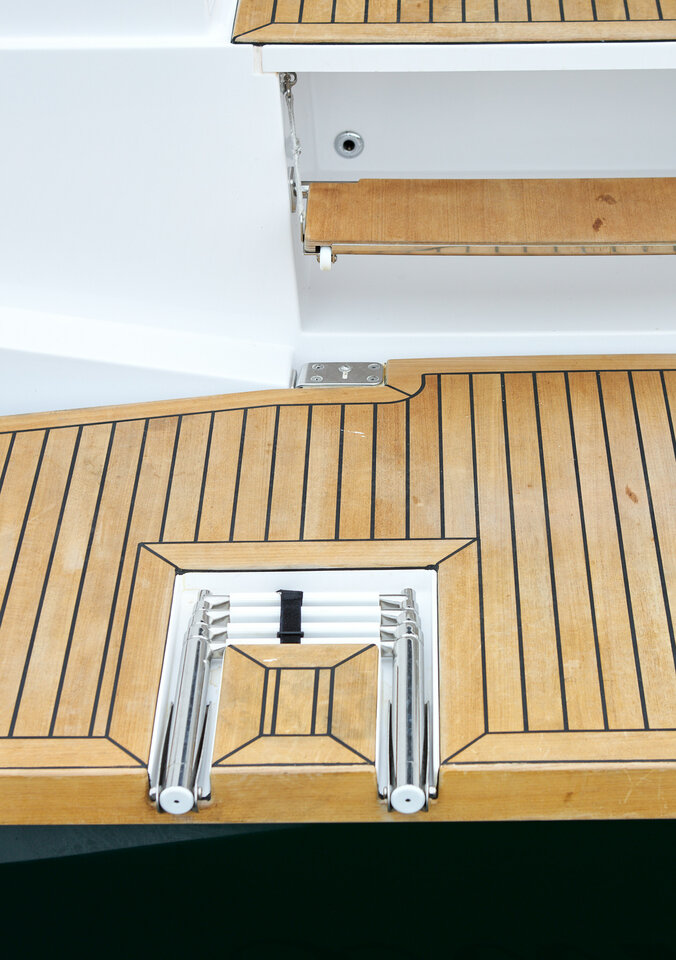 | Outside | 220 V-Landanschluss, Anker mit Kette, Badeplattform, Biminitop, Cockpitdusche, Cockpitkühlschrank, Cockpitpolster, Cockpittisch, elektr. Ankerwinsch, Grill, Sprayhood, Teak im Cockpit |