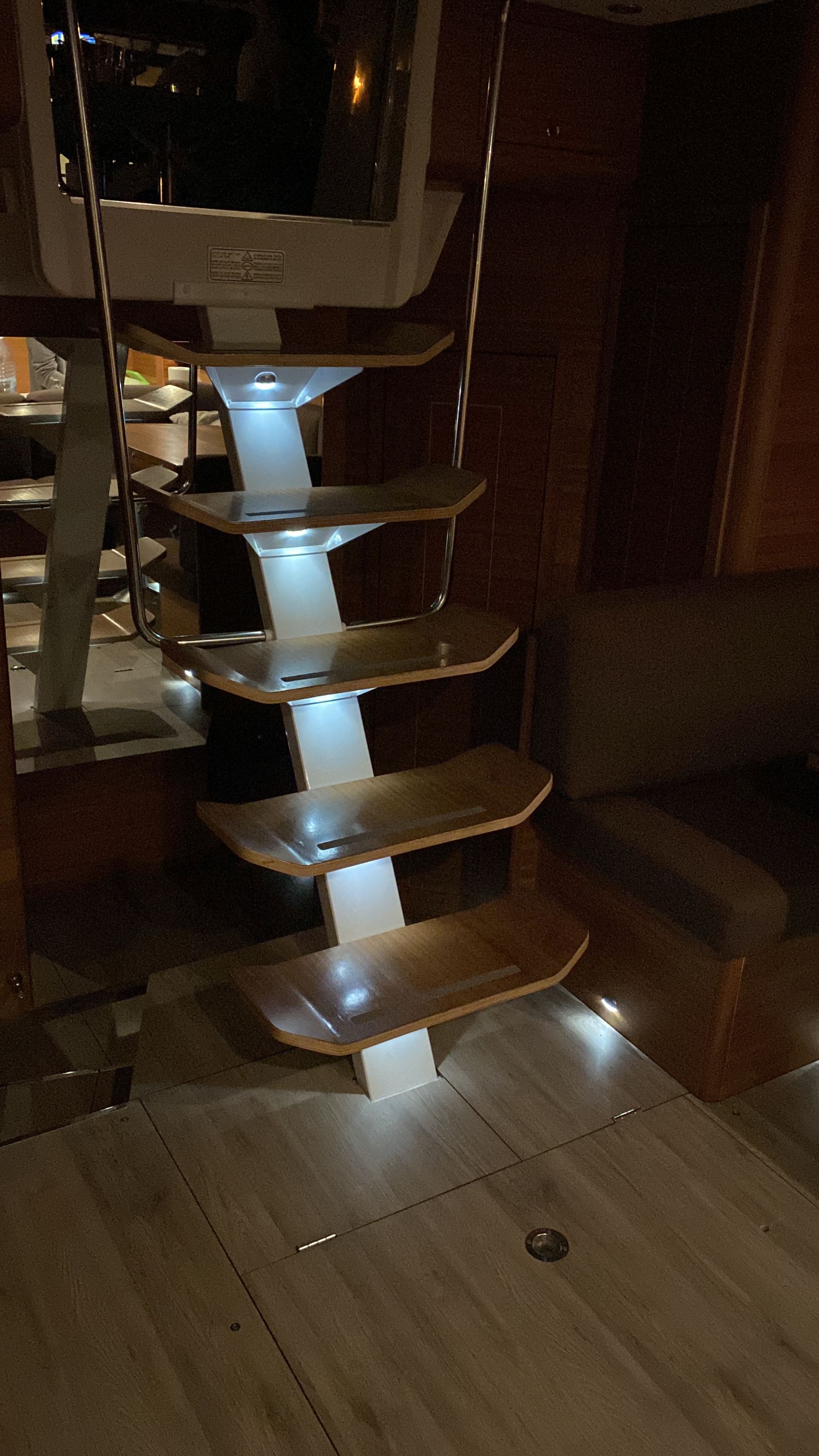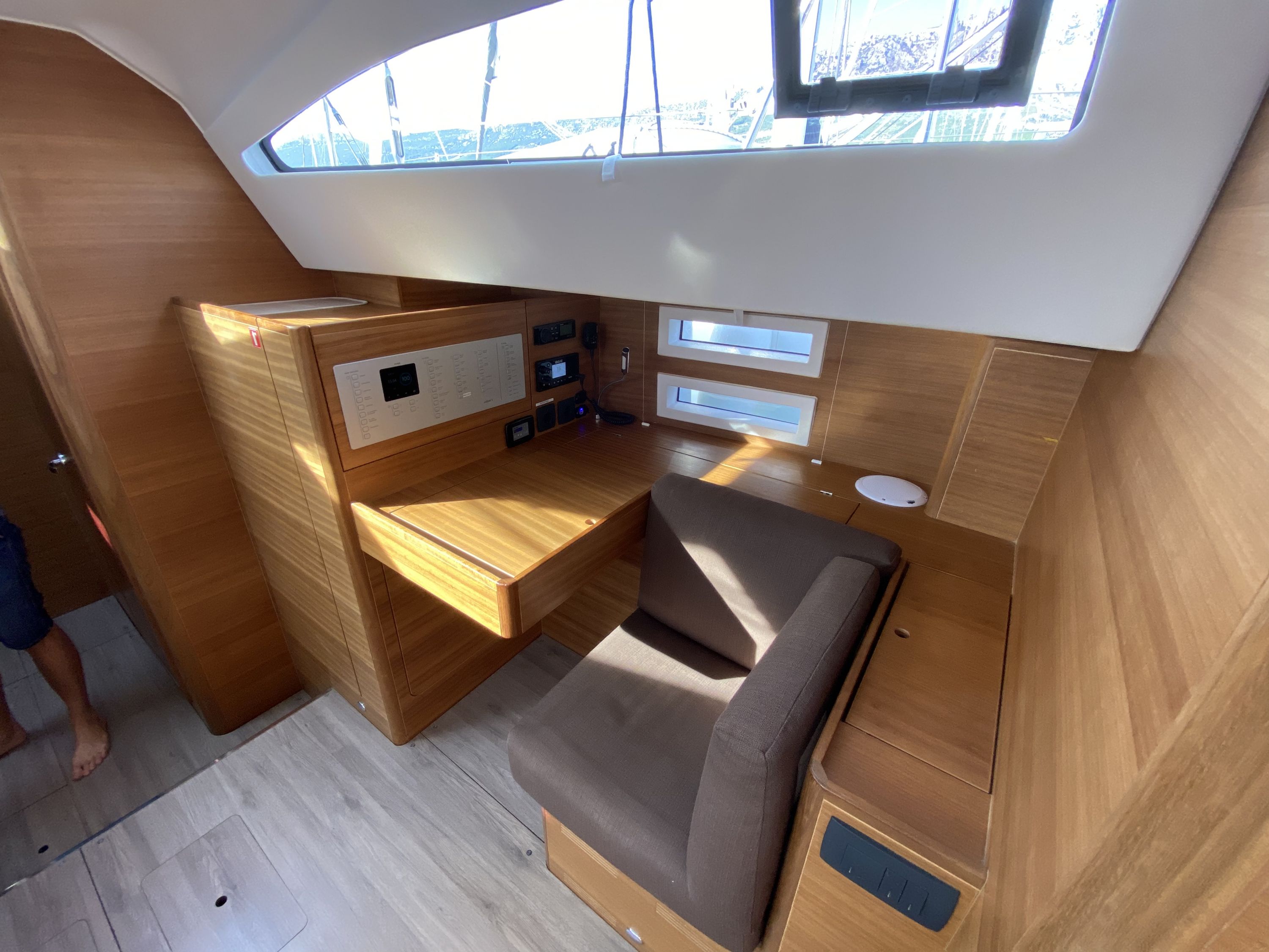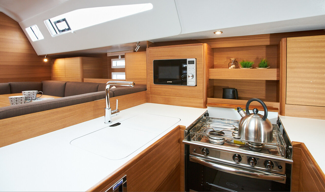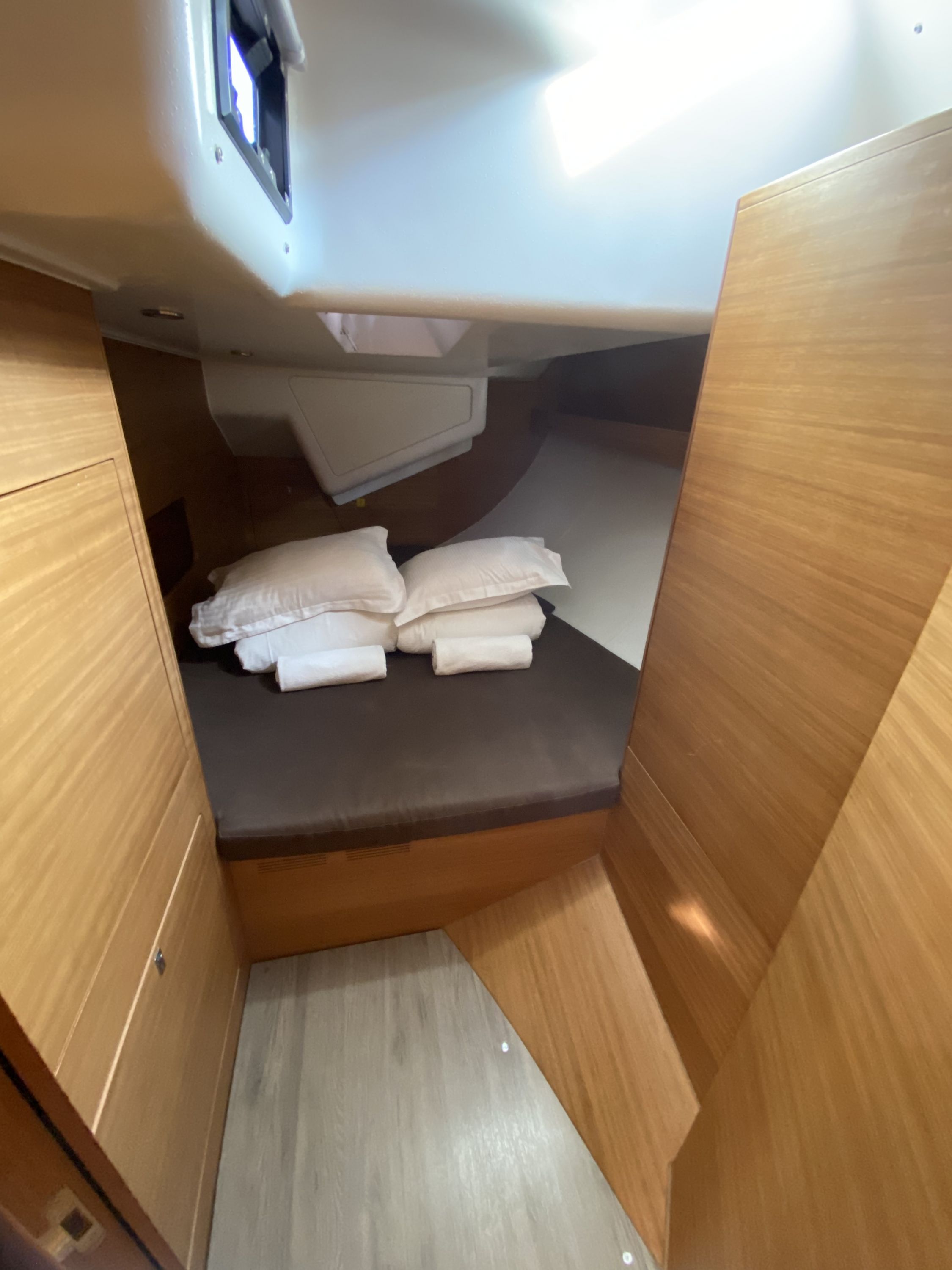 | Outside | 220 V-Landanschluss, Anker mit Kette, Badeplattform, Biminitop, Cockpitdusche, Cockpitkühlschrank, Cockpitpolster, Cockpittisch, elektr. Ankerwinsch, Faltpropeller, Grill, Sprayhood, Teak im Cockpit |