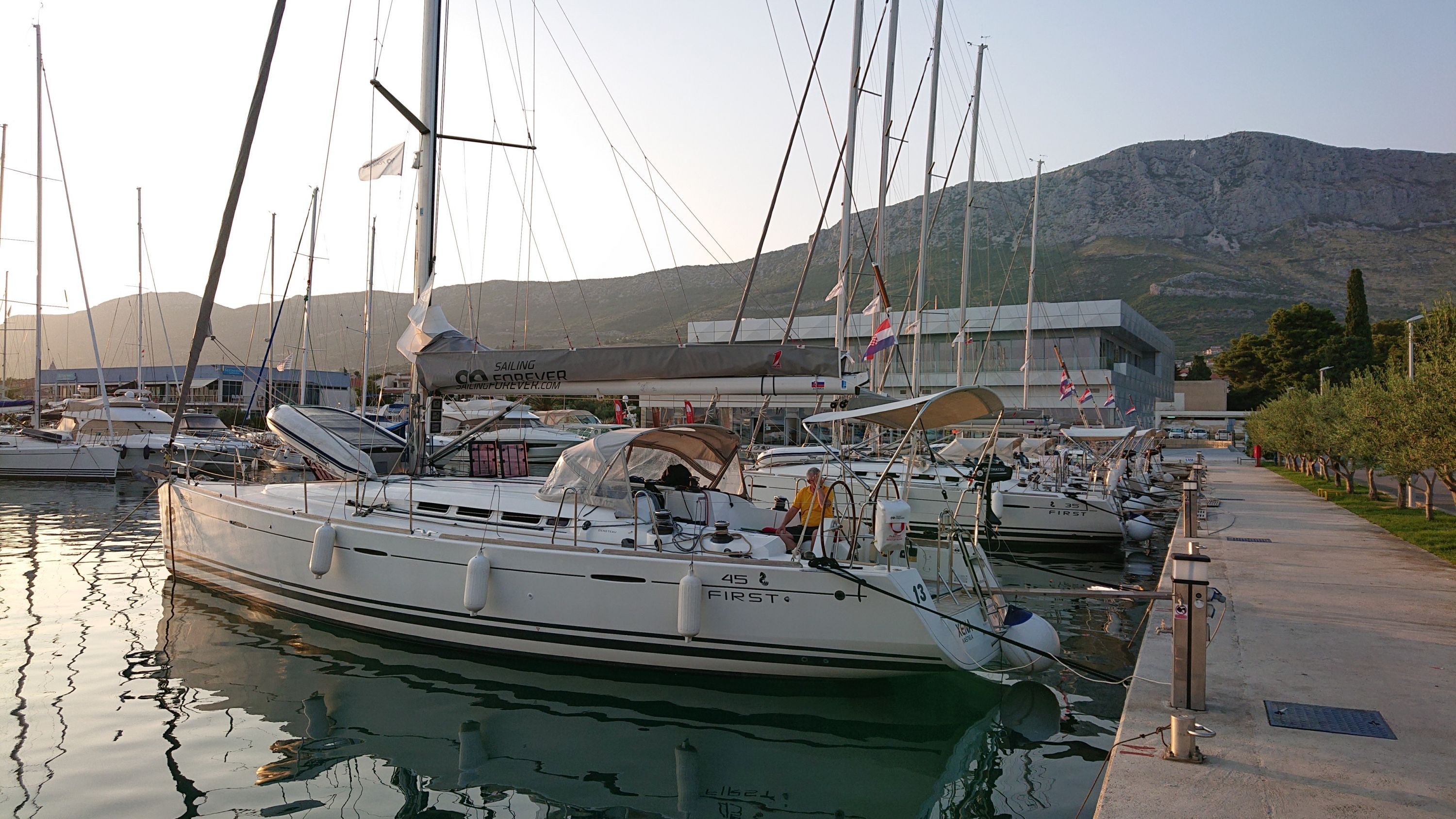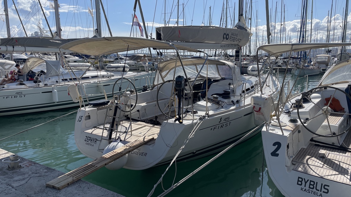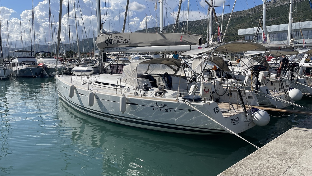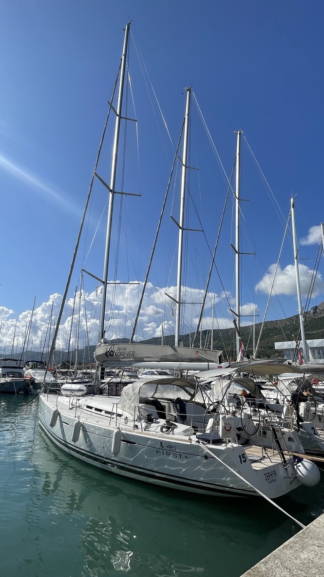 Ein sehr schnelles Schiff im altersgemäß gutem Zustand. Die Segelgarderobe war fast neu und funktioniert tadellos.