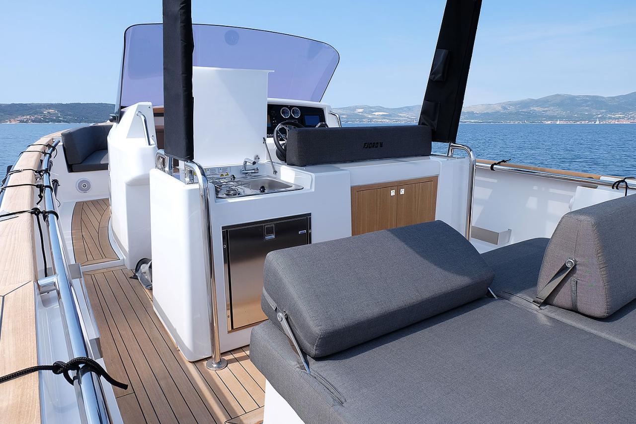 | Outside | Badeleiter, Badeplattform, Deckpolster, elektr. Ankerwinsch, Pantry im Cockpit, Sonnensegel, Teak im Cockpit, Teakdeck |