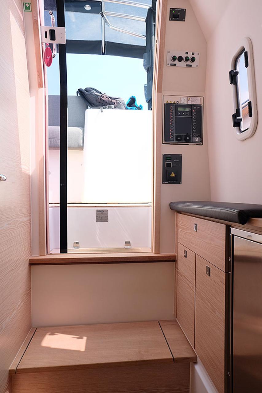 | Inside | FUSION Sound System, Gasherd, Inverter 12V/220V, Kühlschrank, Radio mit USB und Bluetooth, Spülbecken, Warmwasser, WC (elektr.) |