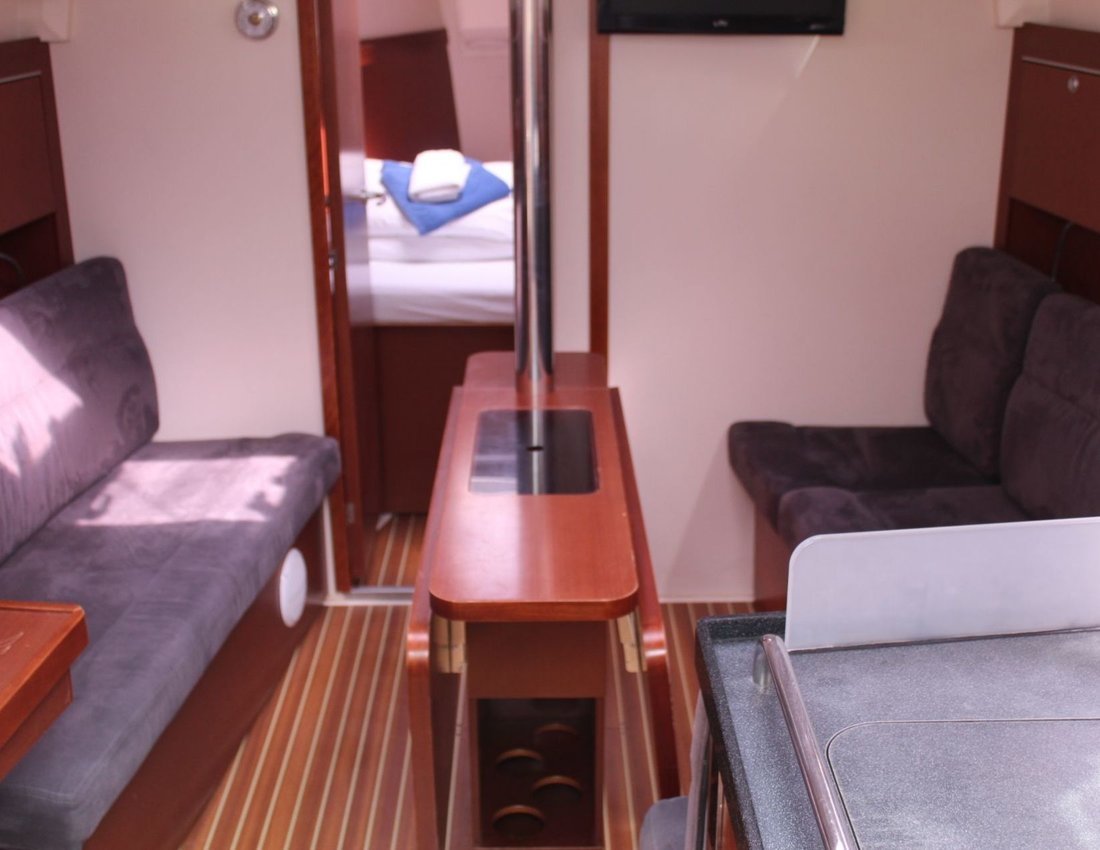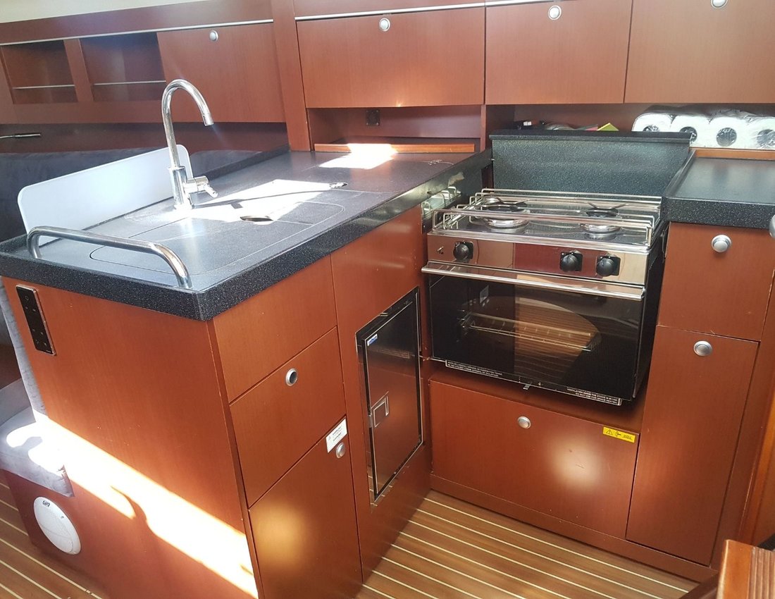 | Outside | 12 V-Anschluss, 220 V-Landanschluss, Anker mit Kette, Badeleiter, Badeplattform, Biminitop, Cockpitdusche, Cockpitlautsprecher, Cockpittisch, elektr. Ankerwinsch, Fender, Festmacherleinen, Sprayhood, Unterwasserbeleuchtung, Windex |