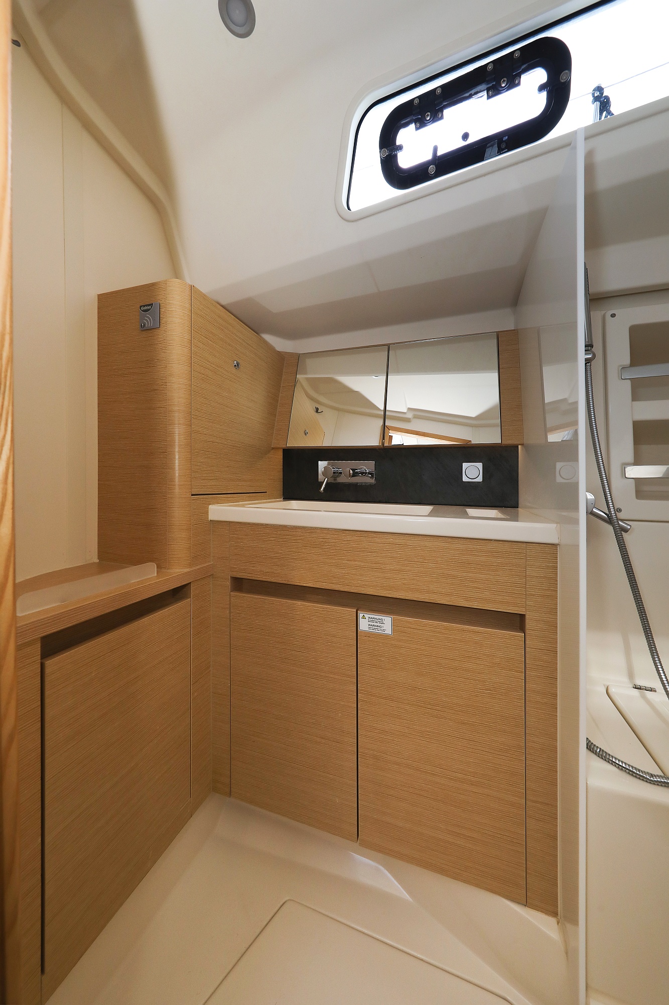 | Outside | Badeplattform, Biminitop, Cockpitdusche, Cockpitlautsprecher, Cockpittisch, elektr. Ankerwinsch, Sprayhood, Teak im Cockpit |