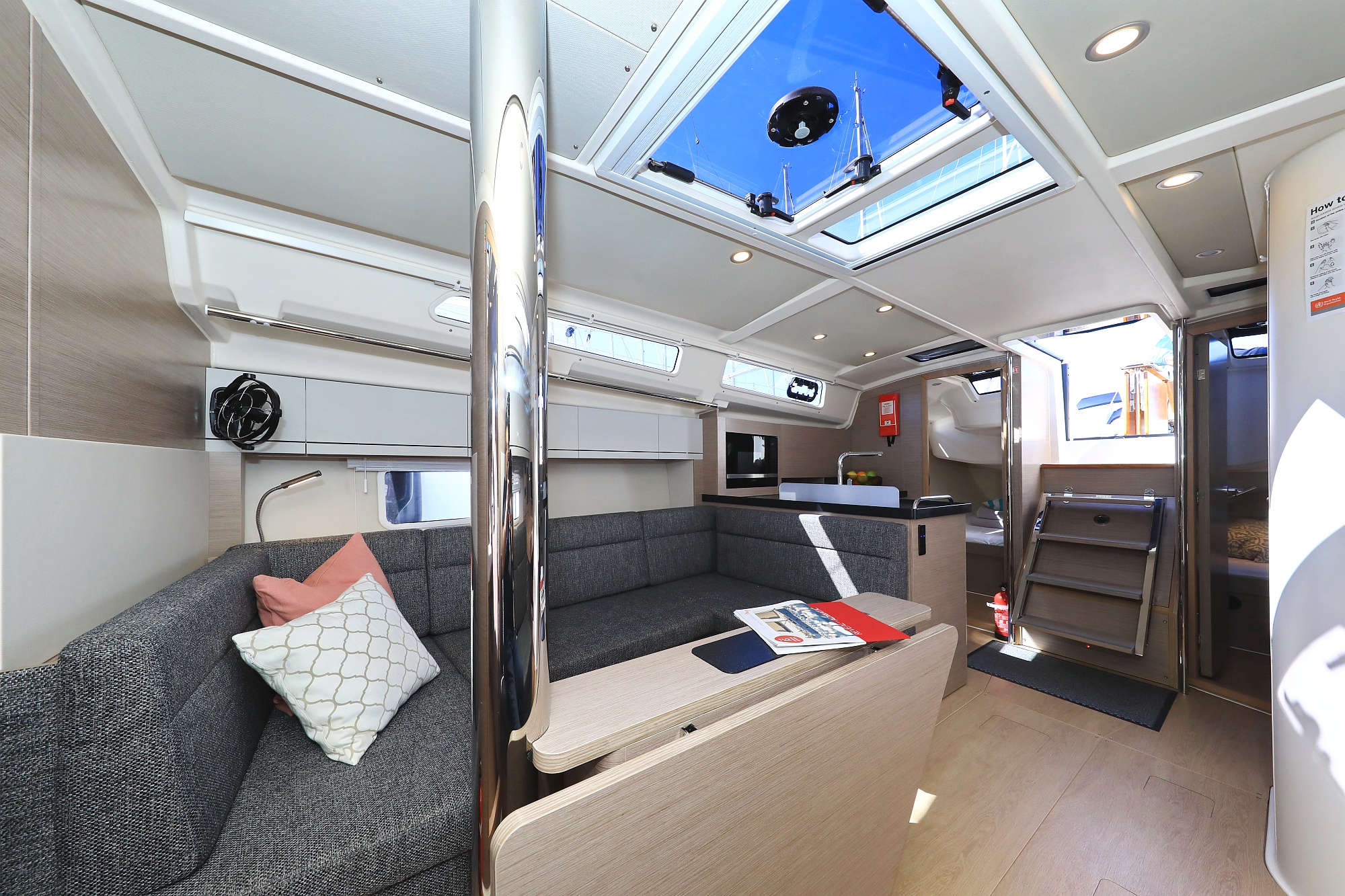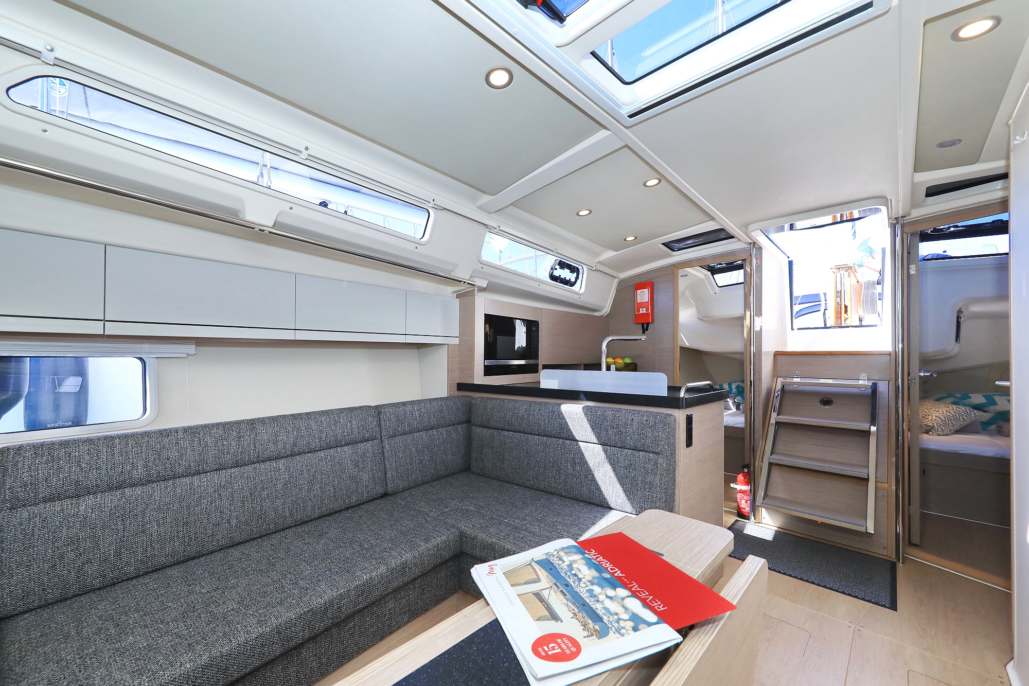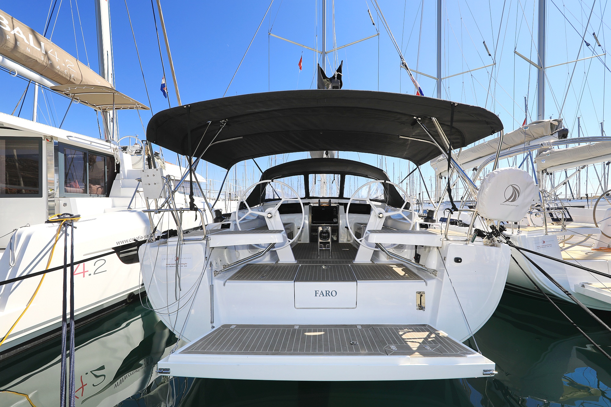 | Outside | Badeplattform, Biminitop, Cockpitdusche, Cockpitlautsprecher, Cockpittisch, elektr. Ankerwinsch, Sprayhood, Teak im Cockpit |