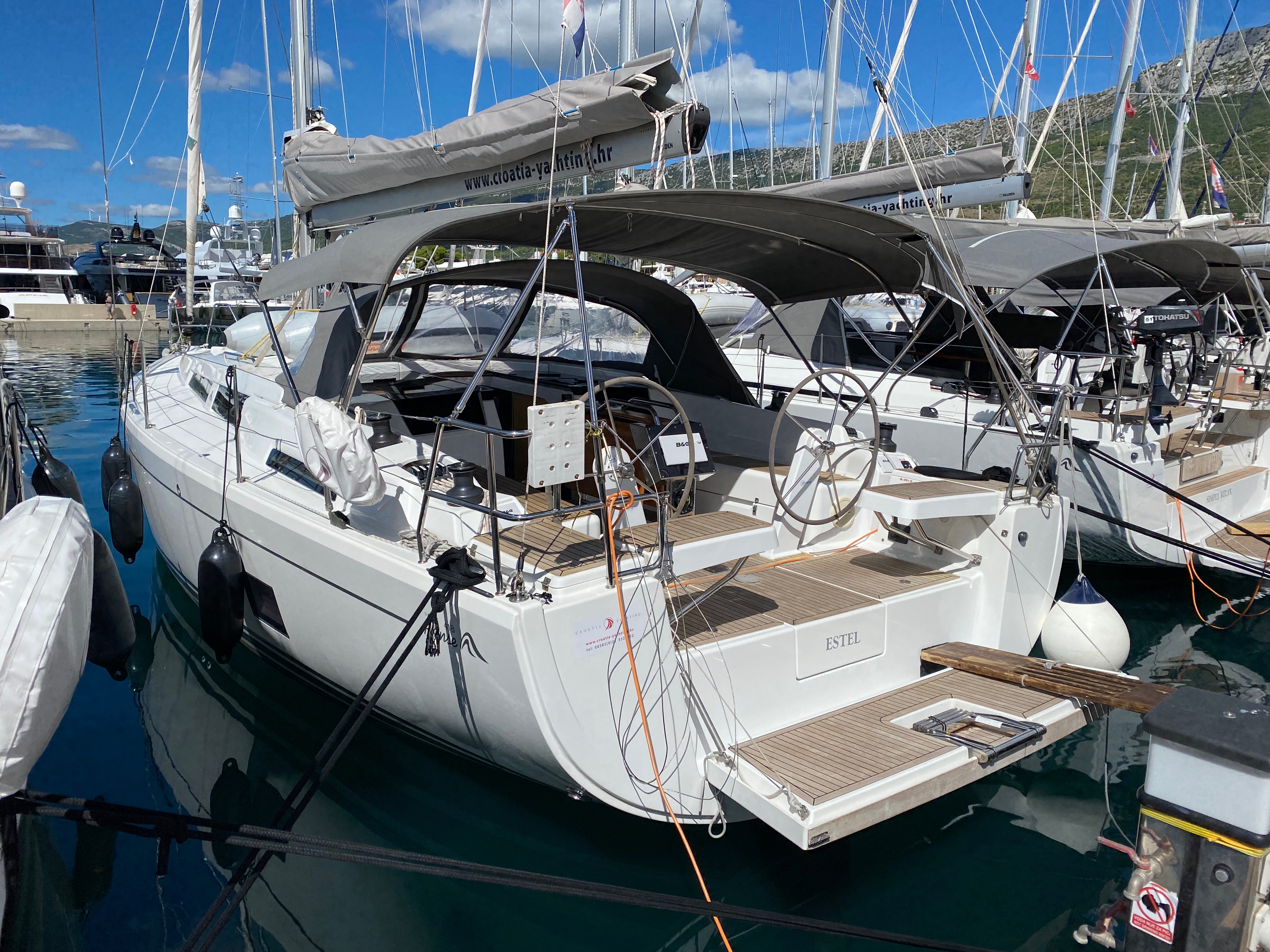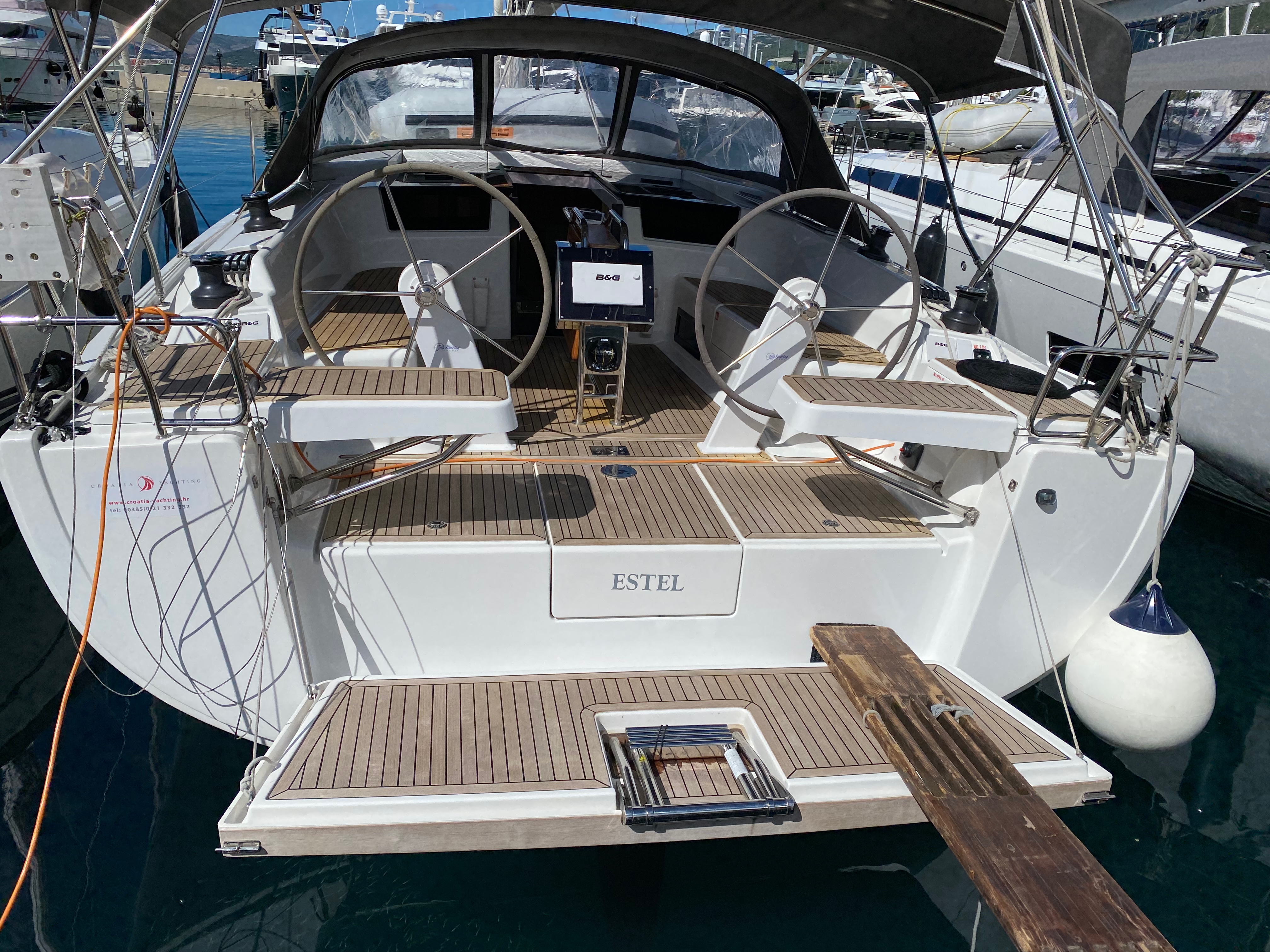 | Outside | Badeleiter, Badeplattform, Biminitop, Cockpitdusche, Cockpitlautsprecher, Cockpittisch, Sprayhood, Teak im Cockpit |