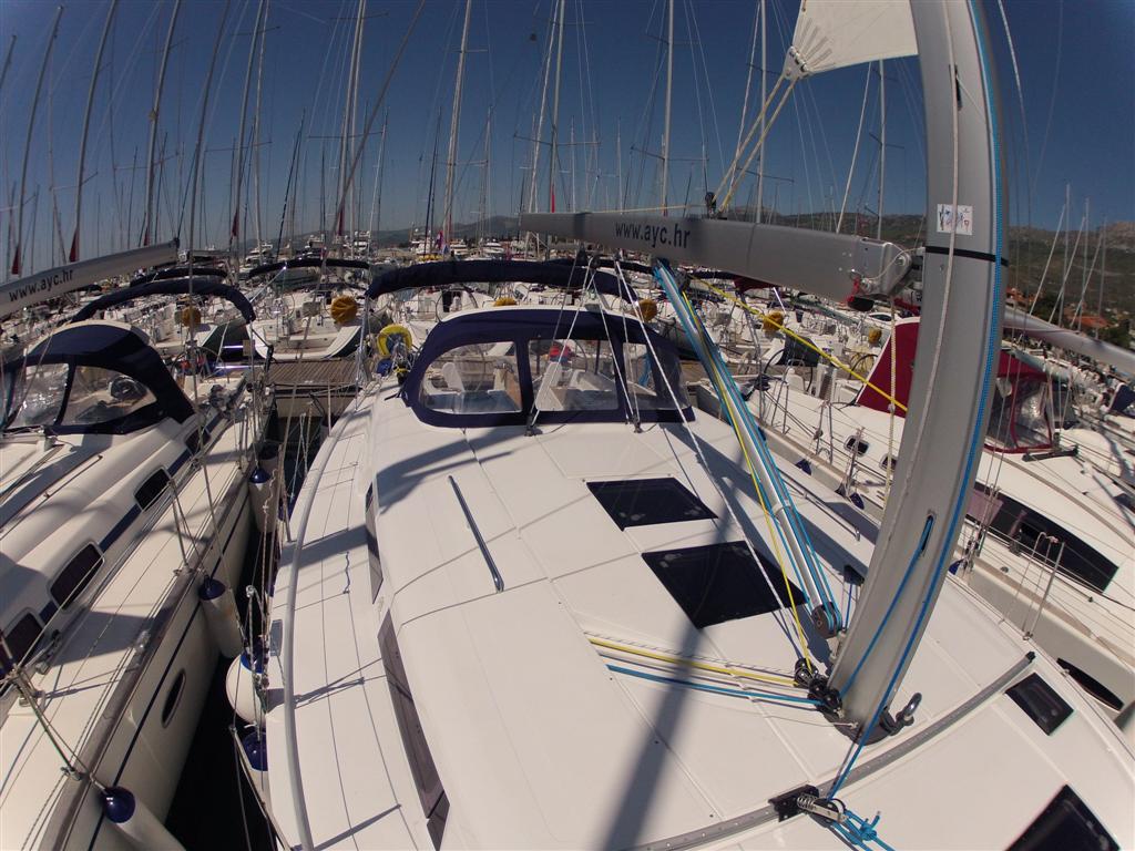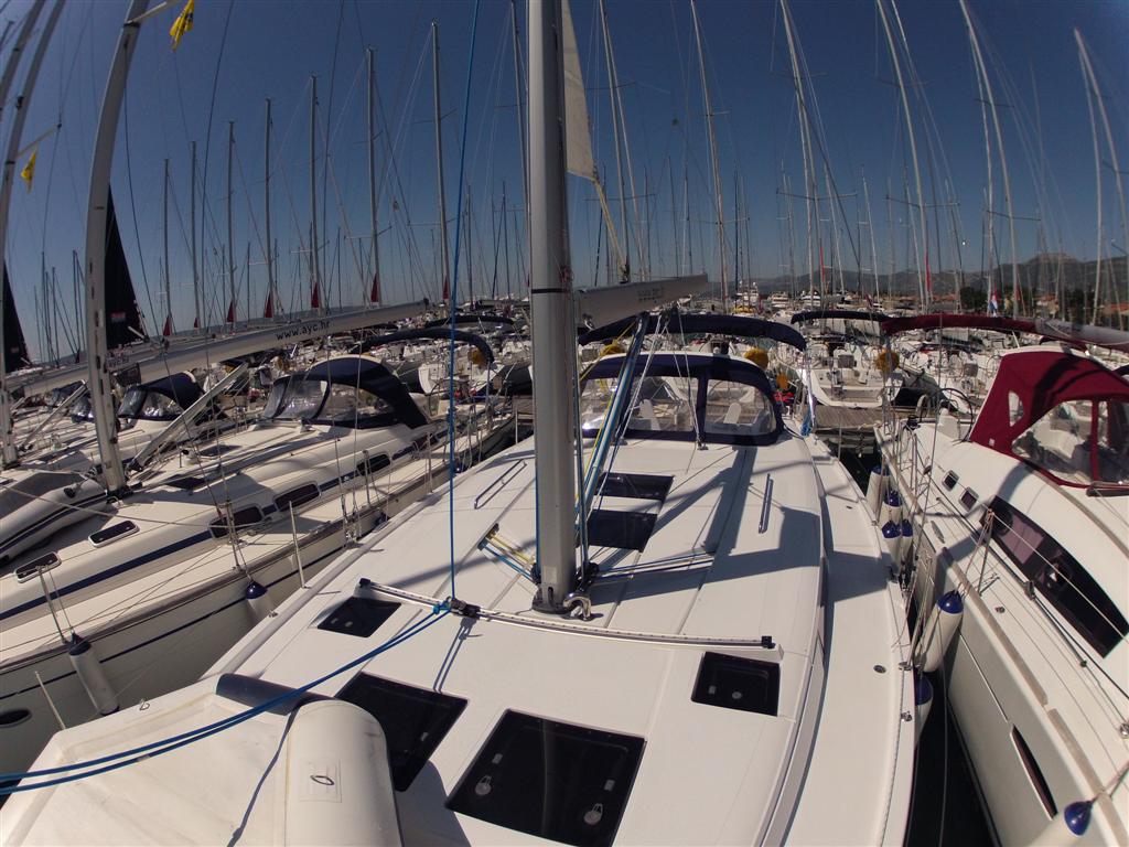 | Outside | Anker mit Kette, Ankerwinsch, Badeplattform, Biminitop, Bootshaken, Cockpitdusche, Cockpitlautsprecher, Deckbürste, Dieselkanister , elektr. Ankerwinsch, Fender, Fernsteuerung für elektr. Ankerwinsch, Gangway, Kunststoff-Eimer (Pütz), Sprayhood, Wasserkanister , Wasserschlauch, Windex |