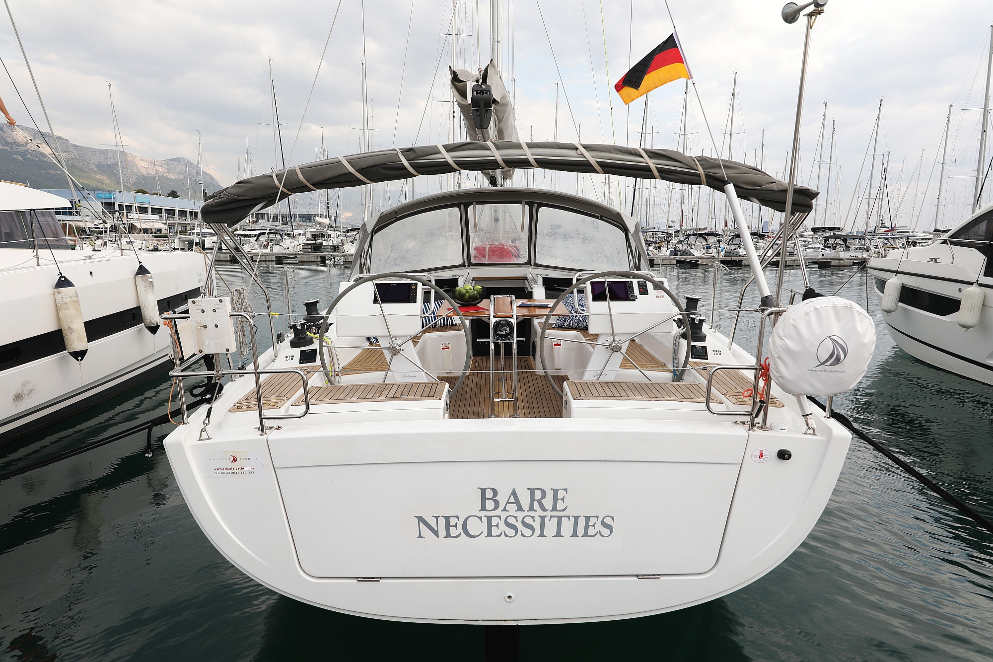 | Outside | Badeplattform, Biminitop, Cockpitdusche, Cockpitlautsprecher, Cockpittisch, elektr. Ankerwinsch, Sprayhood, Teak im Cockpit |