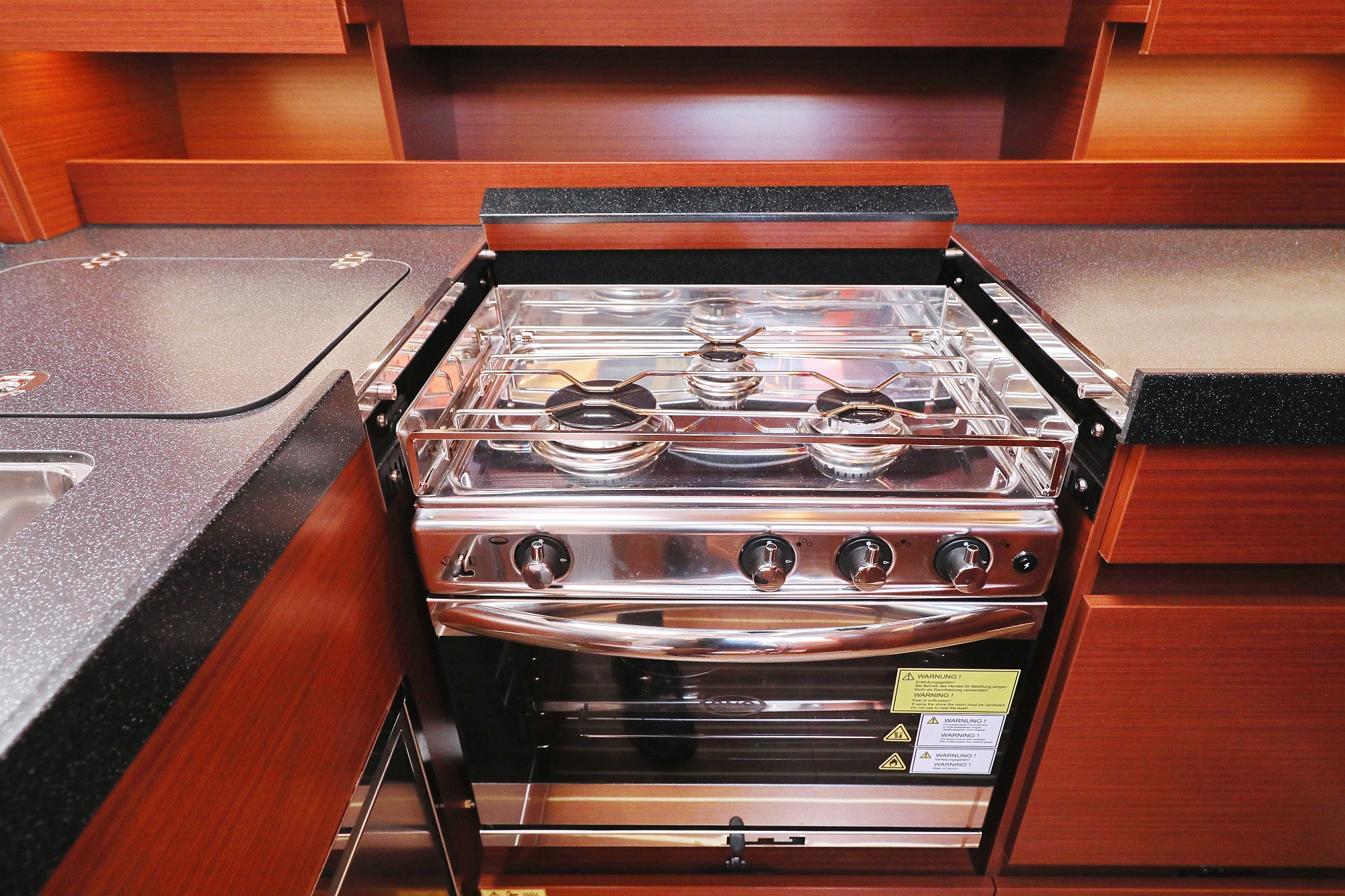 | Inside | Gasherd mit Backofen, Heizung, Inverter 12V/220V, Kühlschrank, Ladegerät, Pantryausstattung, Radio mit CD, Warmwasser |