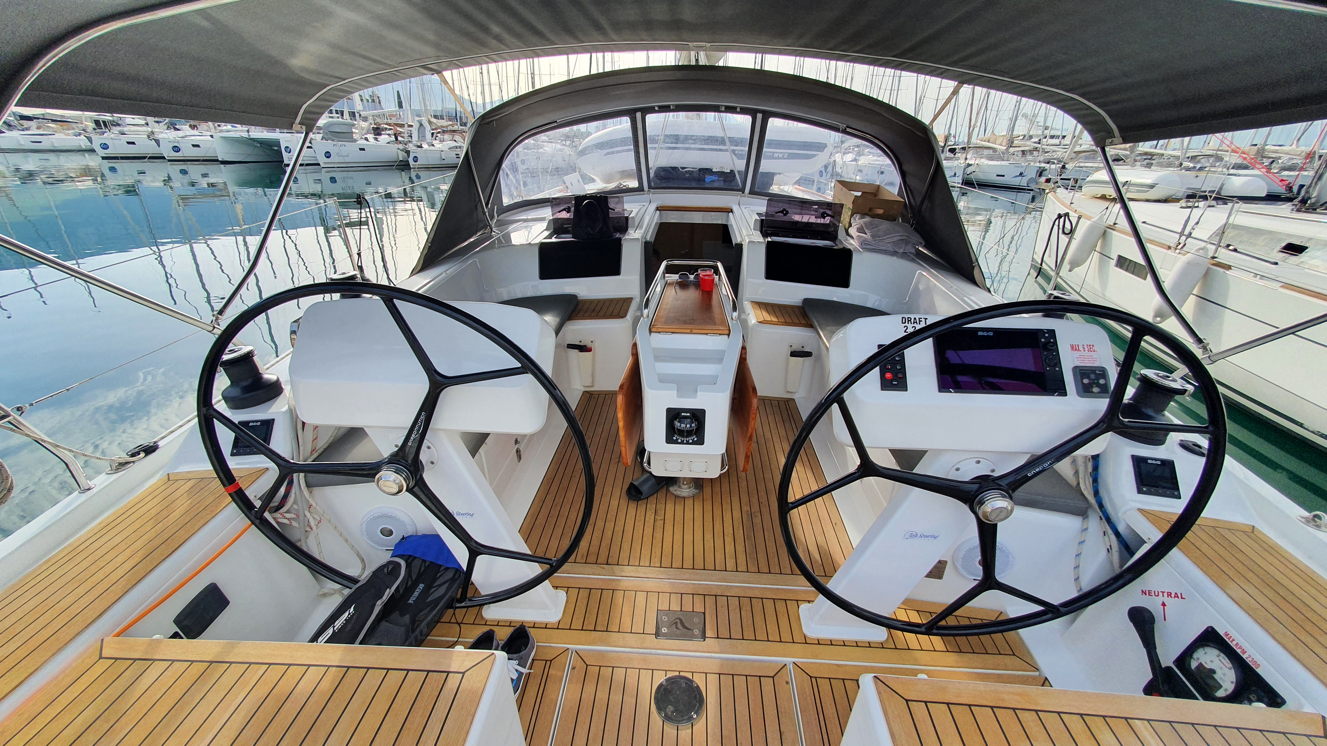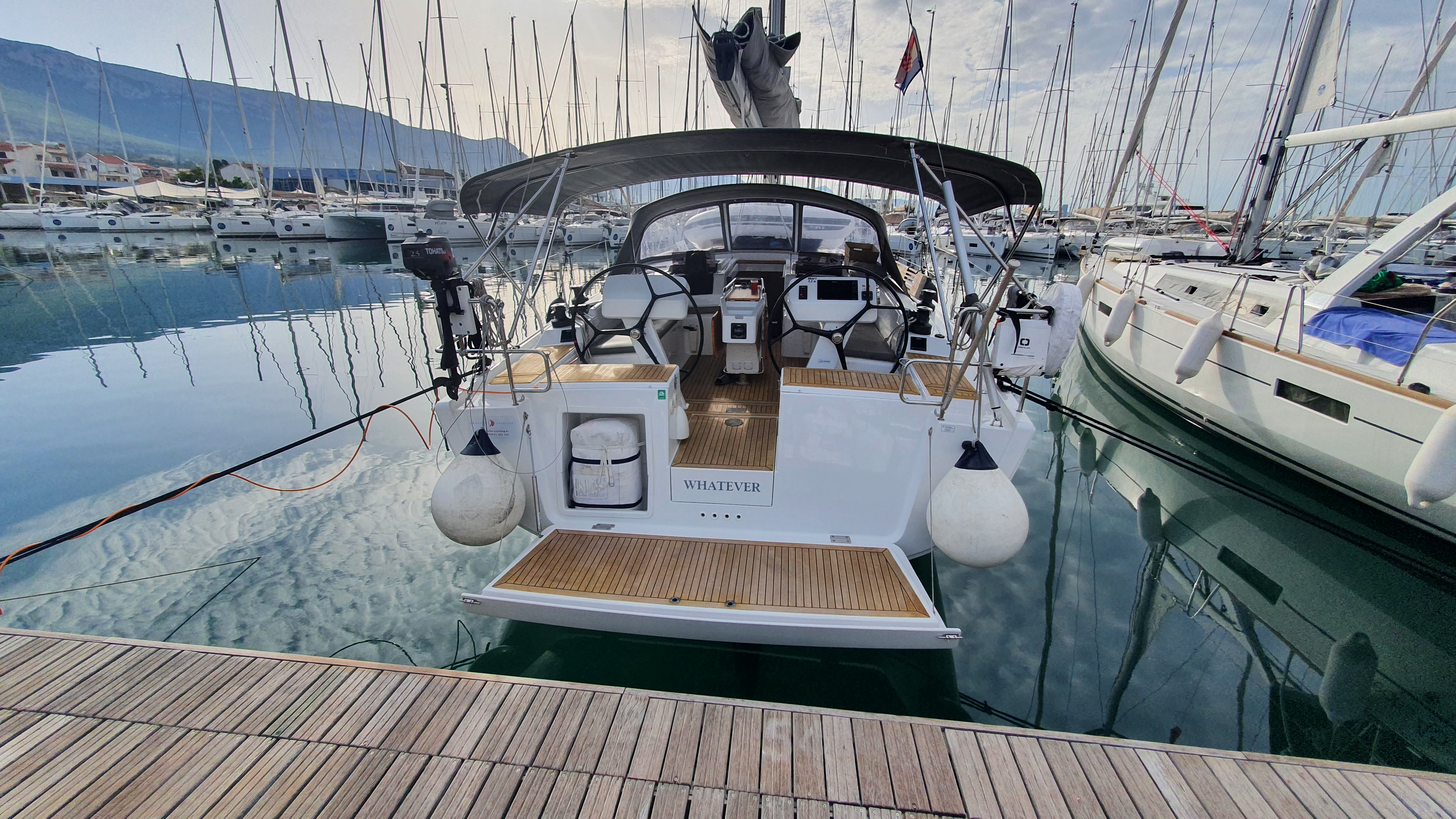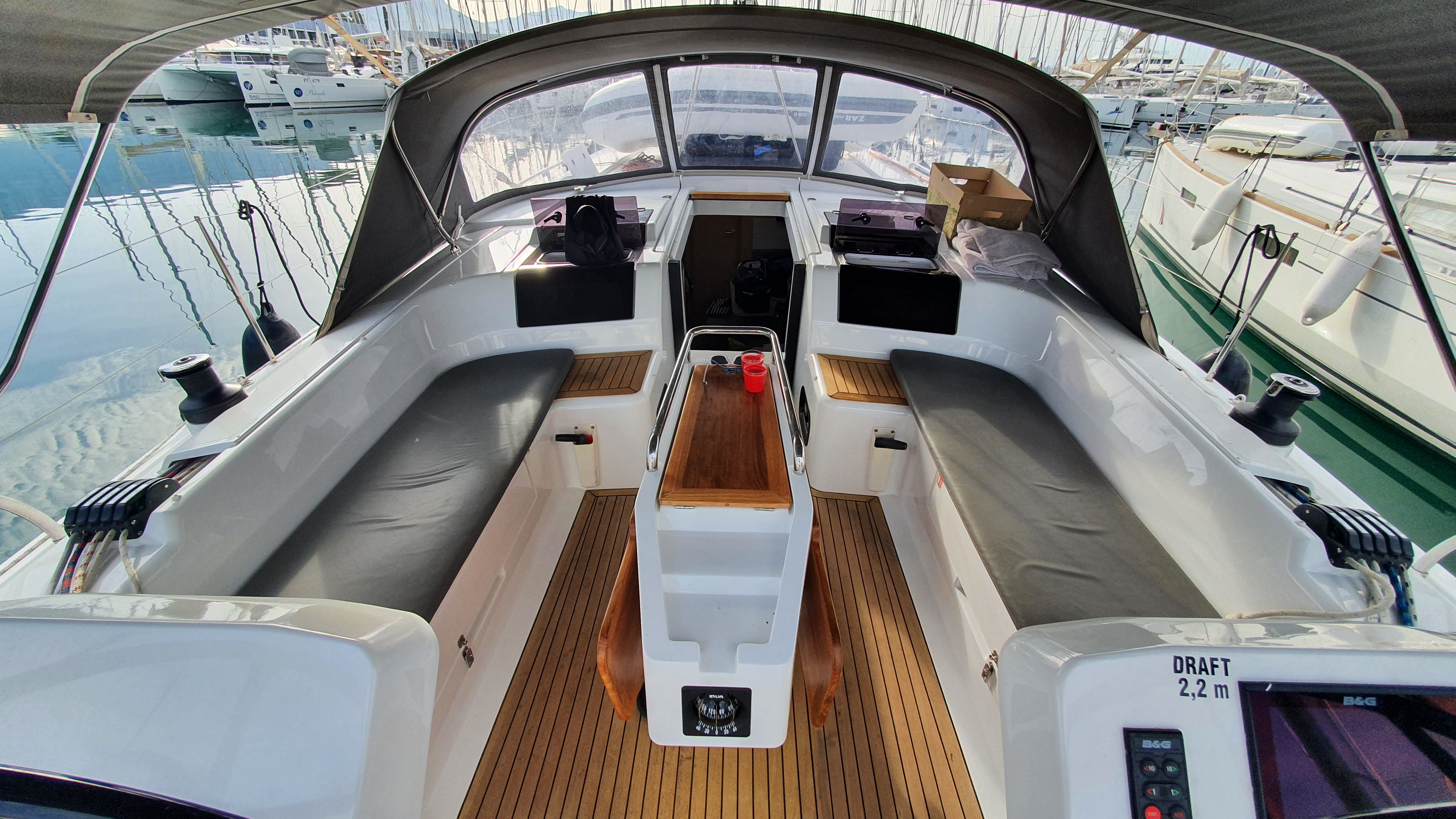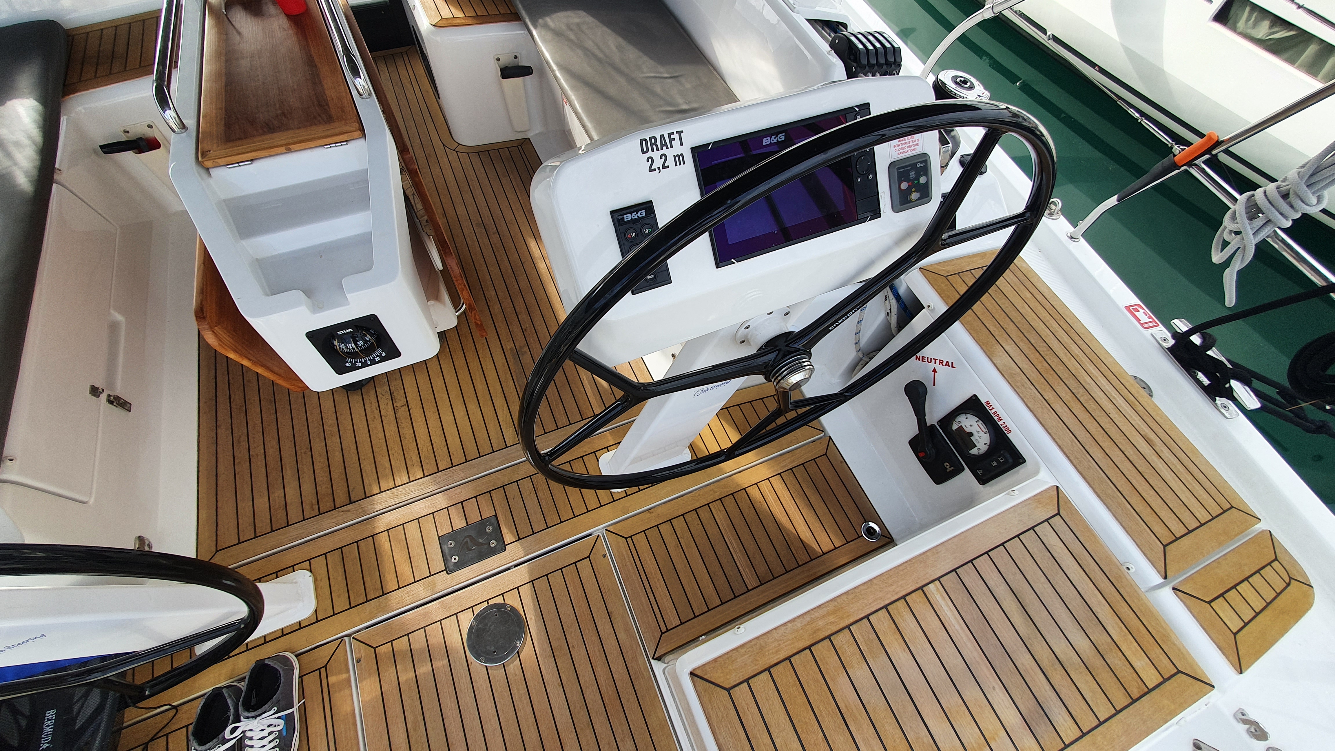 | Outside | Badeplattform, Biminitop, Cockpitdusche, Cockpitlautsprecher, Cockpittisch, Sprayhood, Teak im Cockpit |