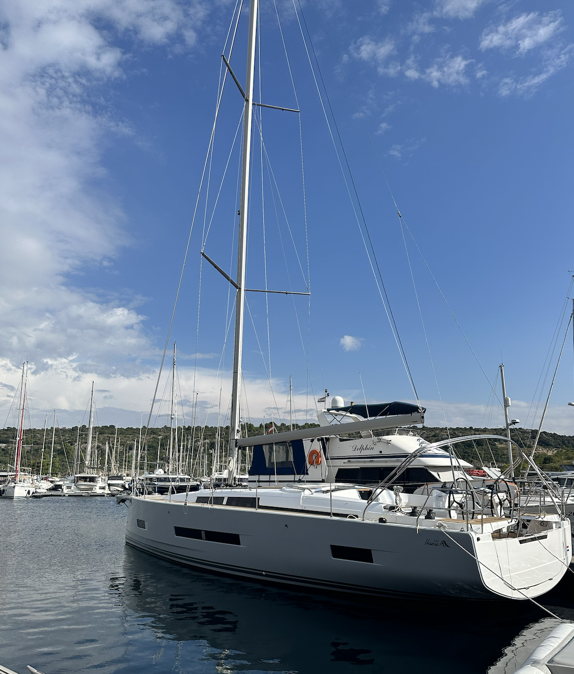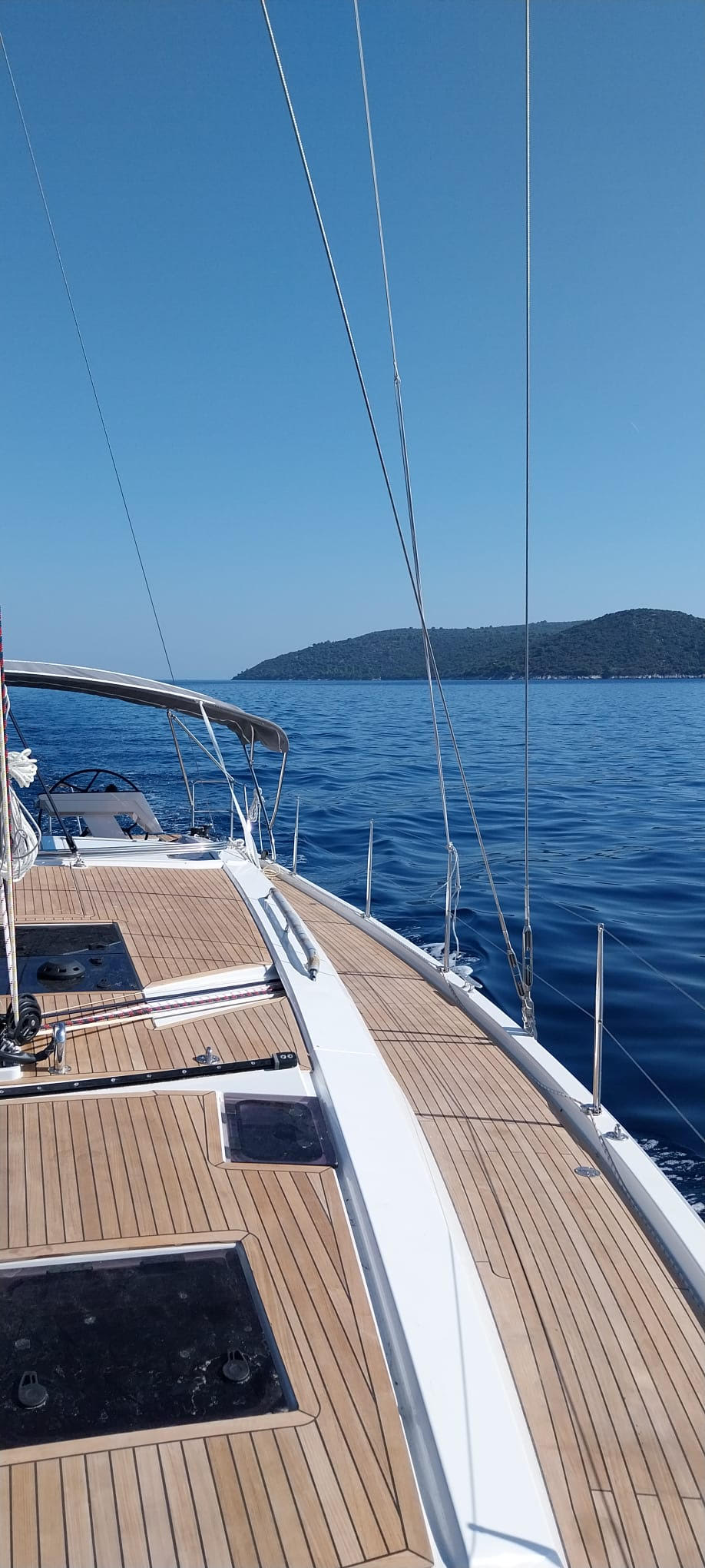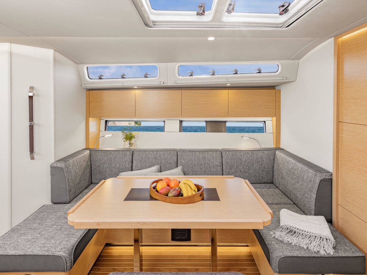 | Outside | Badeplattform, Biminitop, Cockpitdusche, Cockpitlautsprecher, Cockpitpolster, Deckbeleuchtung, Deckpolster, Delta-Anker, elektr. Ankerwinsch, elektr. Winsch, Fallwinschen, Fender, Festmacherleinen, Gangway, Sprayhood, Windex |
