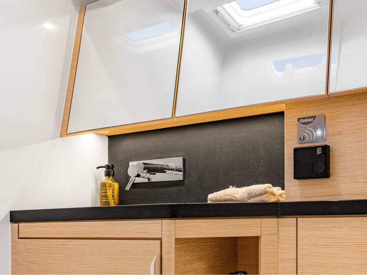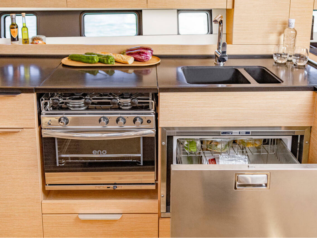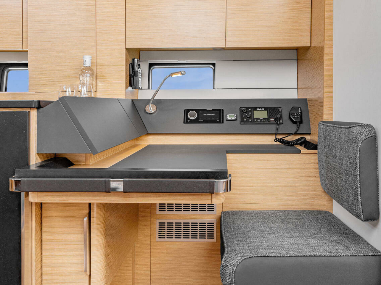 | Inside | FUSION Sound System, Gefrierschrank, Inverter 12V/220V, Kaffeemaschine, Lautsprecher im Salon, Radio |